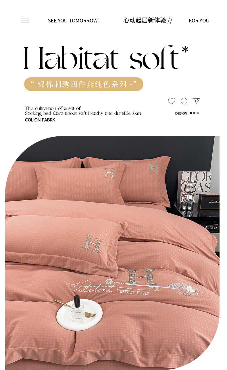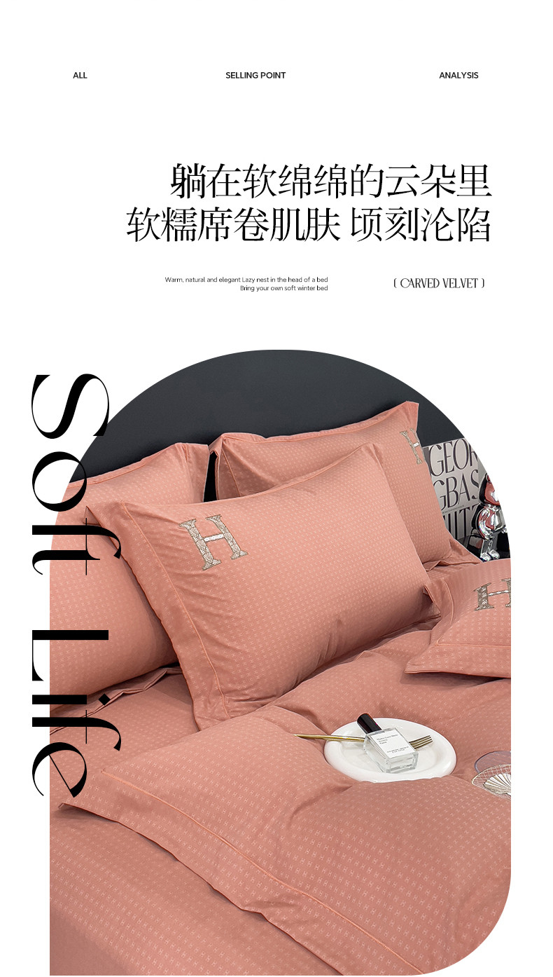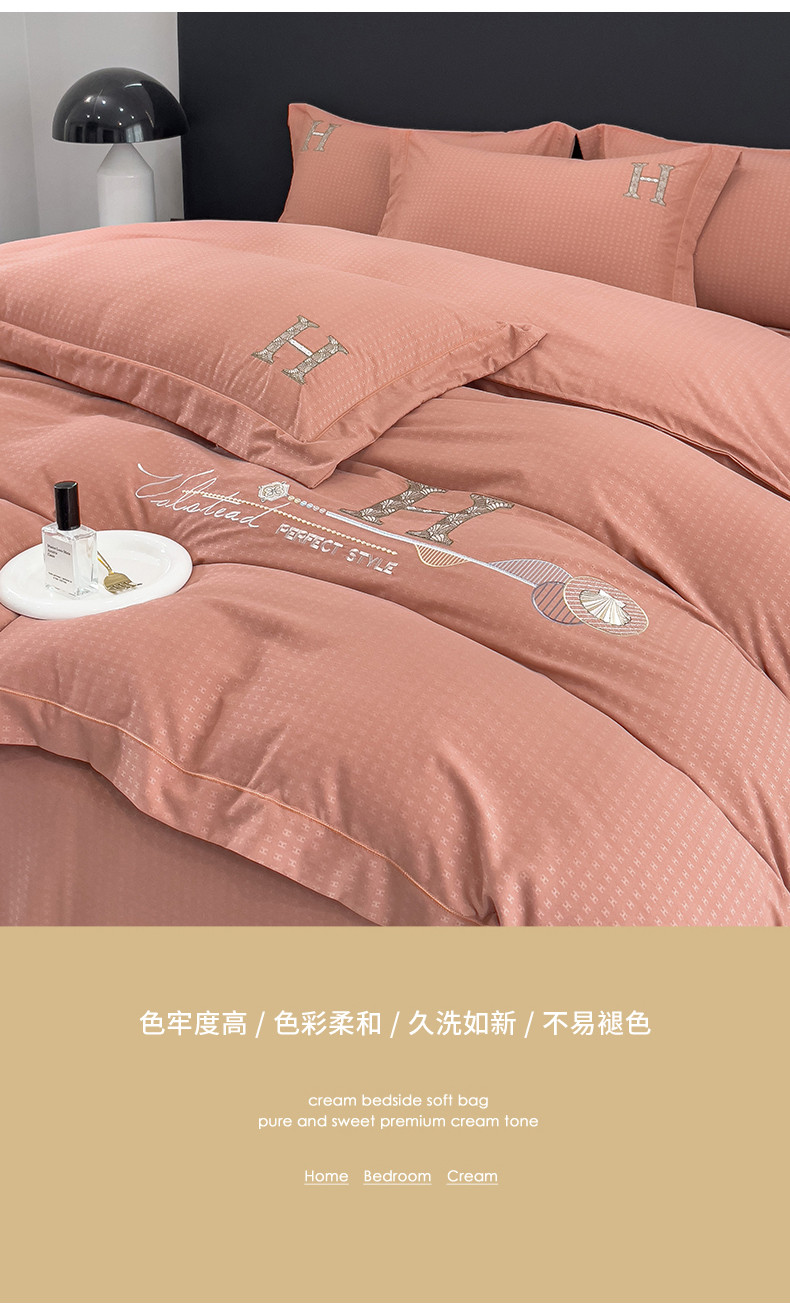 (总)靓生活 2023新款爱丽丝系列锦棉提花刺绣四件套,爱丽丝-豆沙,爱丽丝-景泰蓝,爱丽丝-桔色,爱丽丝-清水绿,爱丽丝-香槟蓝,爱丽丝-香芋紫,爱丽丝-玉色