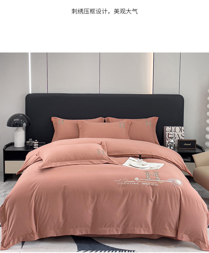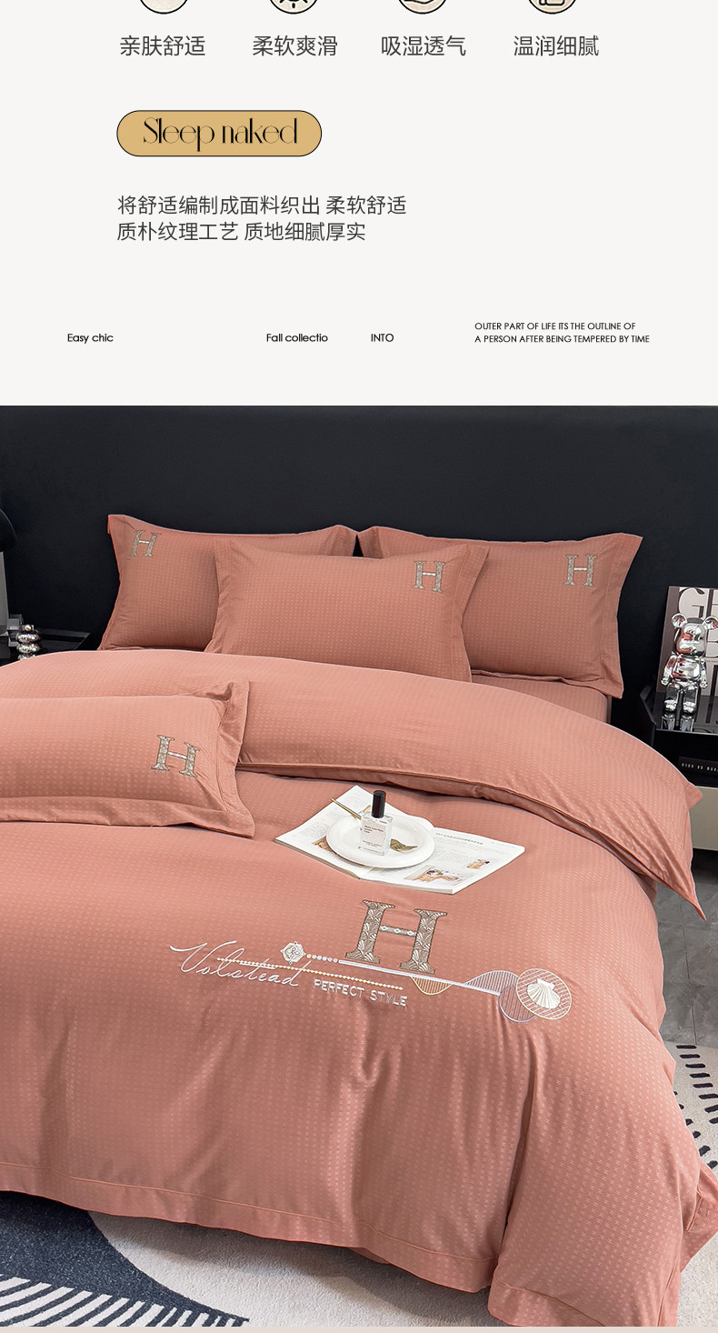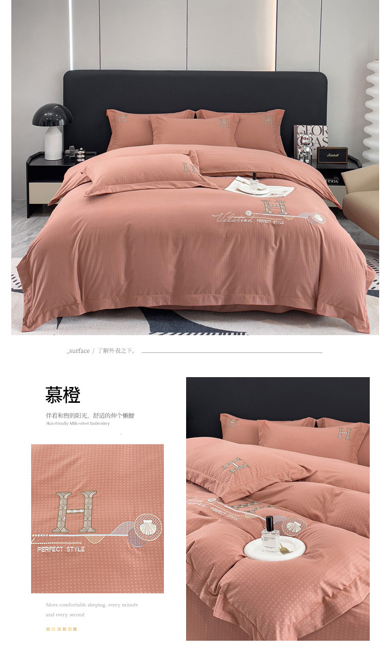 商品名称:靓生活 2023新款欧曼系列锦棉提花刺绣四件套 欧曼-慕橙