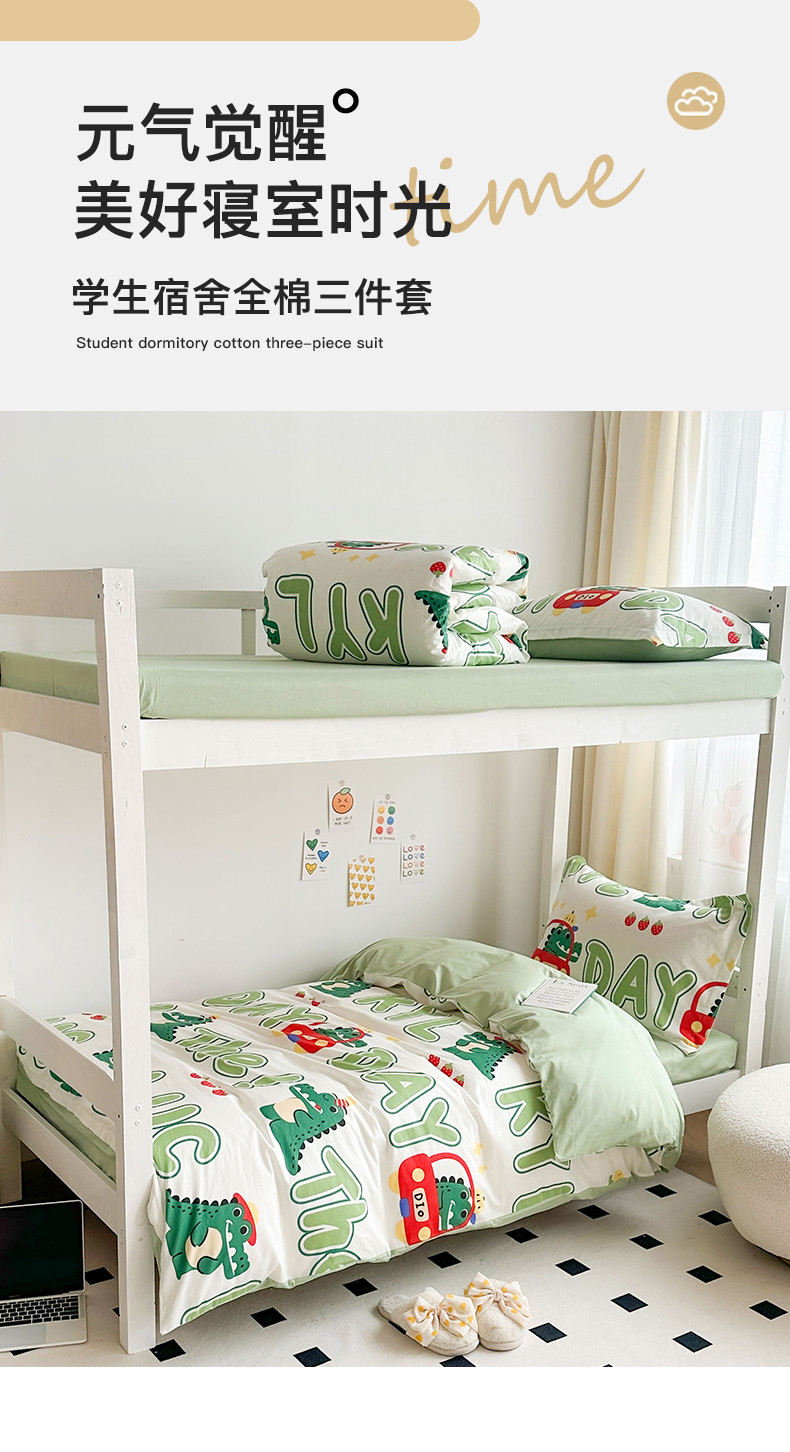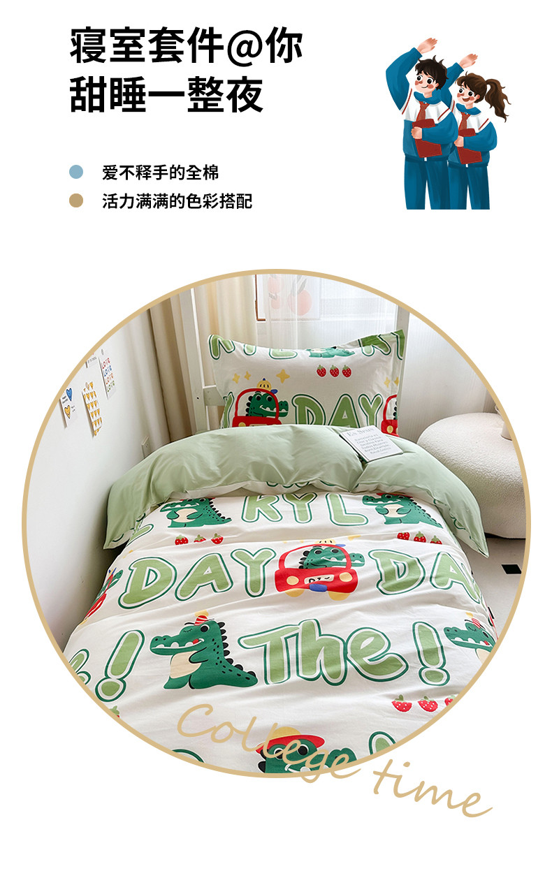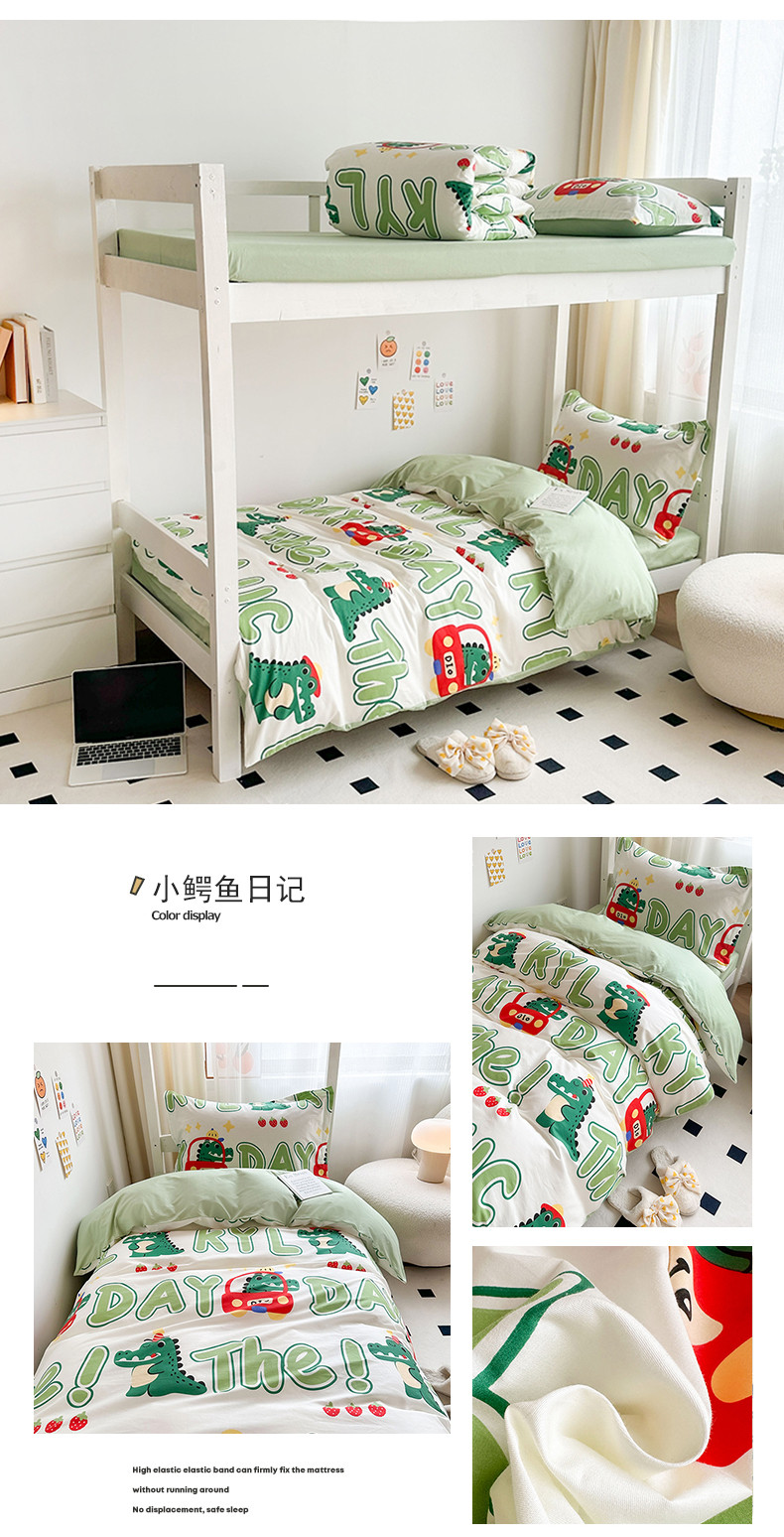 金鑫汇 2023新款全棉宿舍印花三件套 小鳄鱼日记