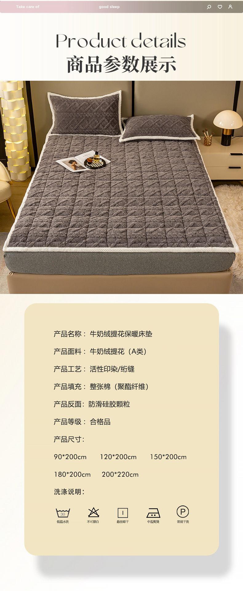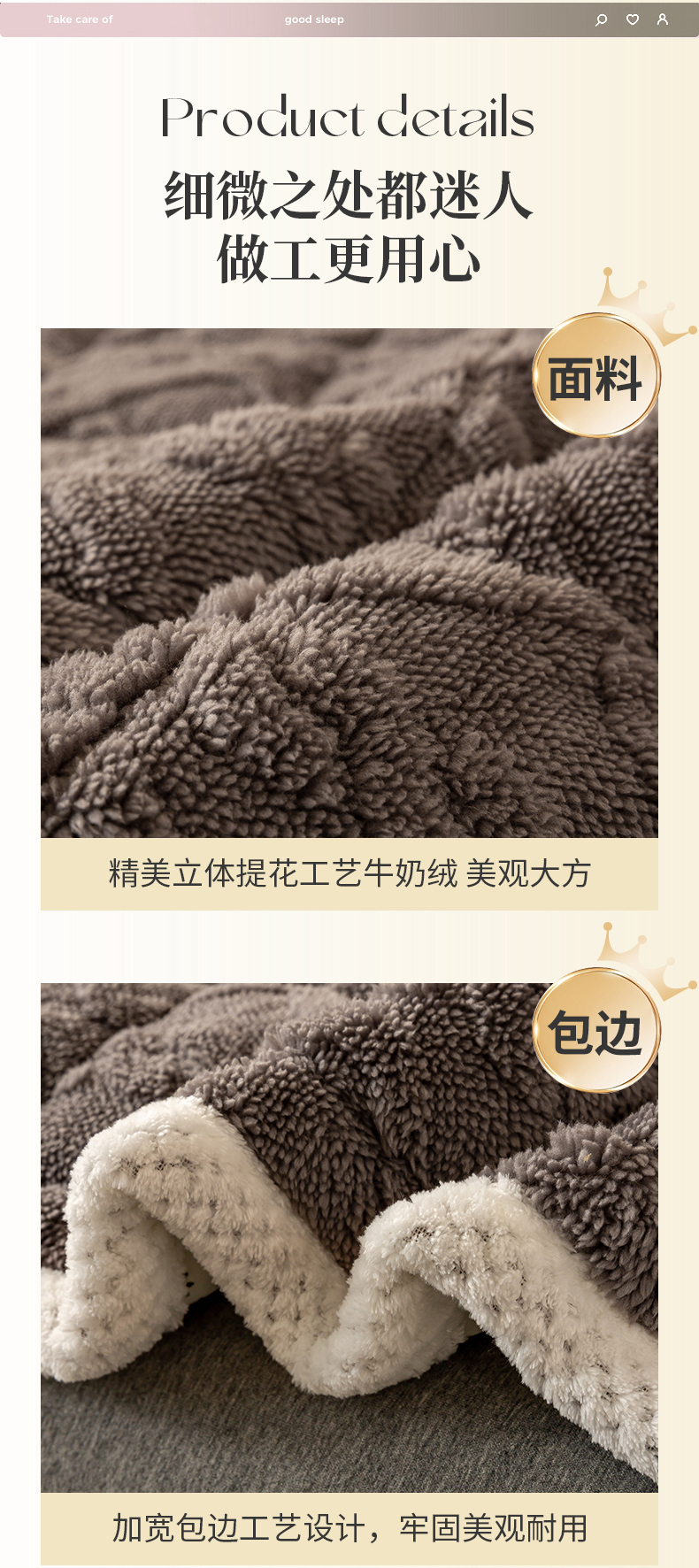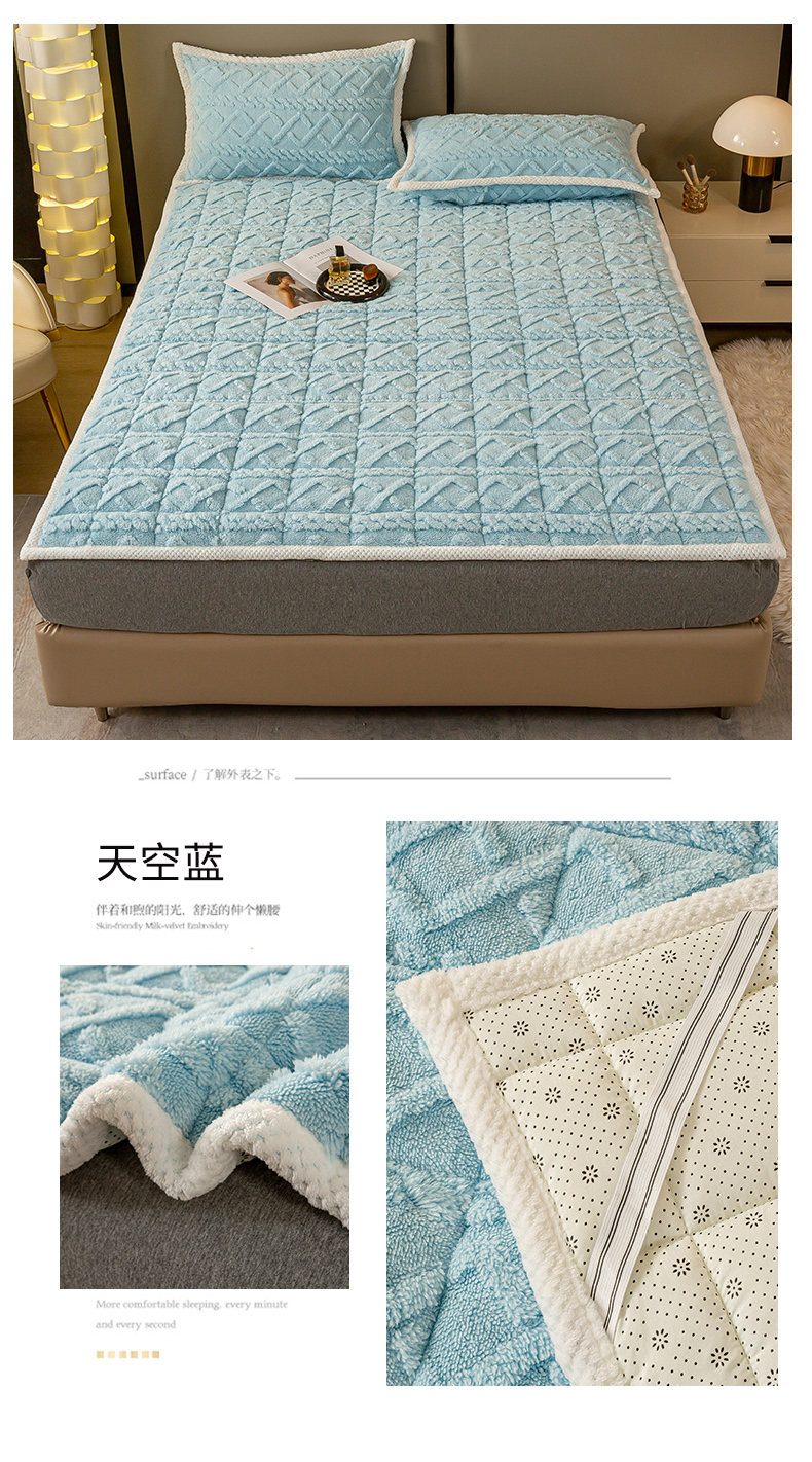 商品名称:正邦家纺 2024新款牛奶绒提花保暖塔芙蓉床垫 天空蓝