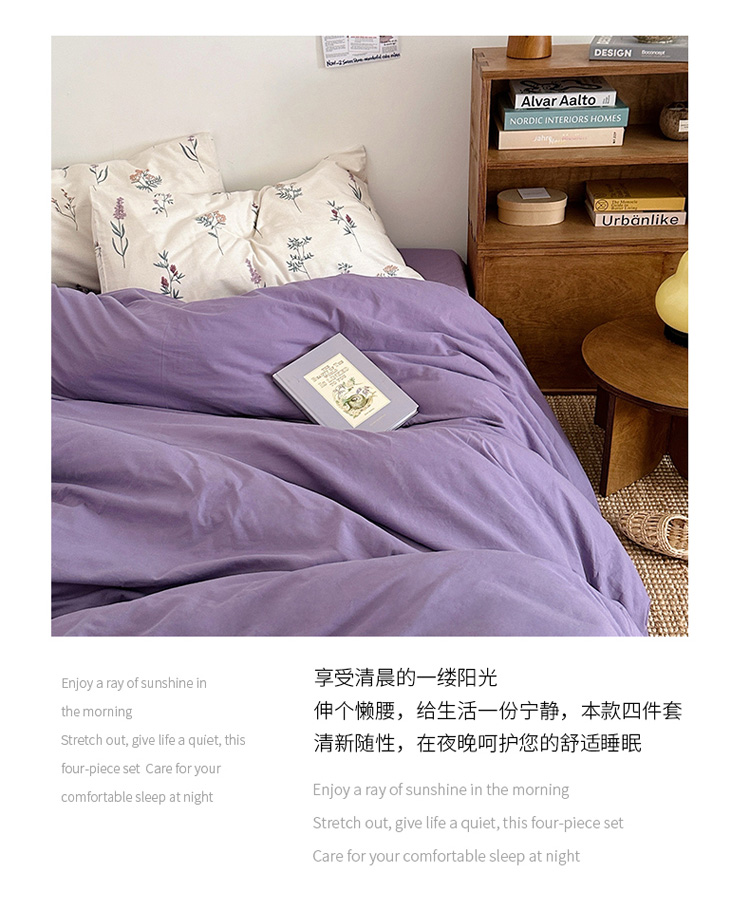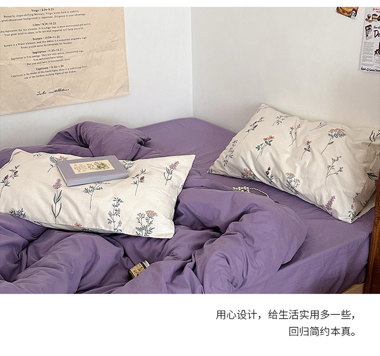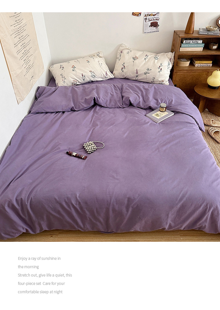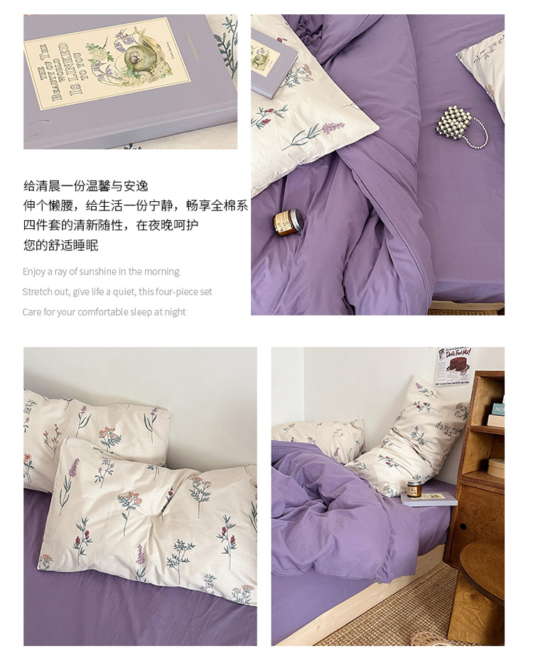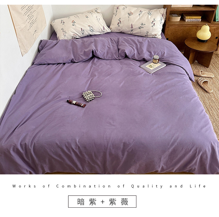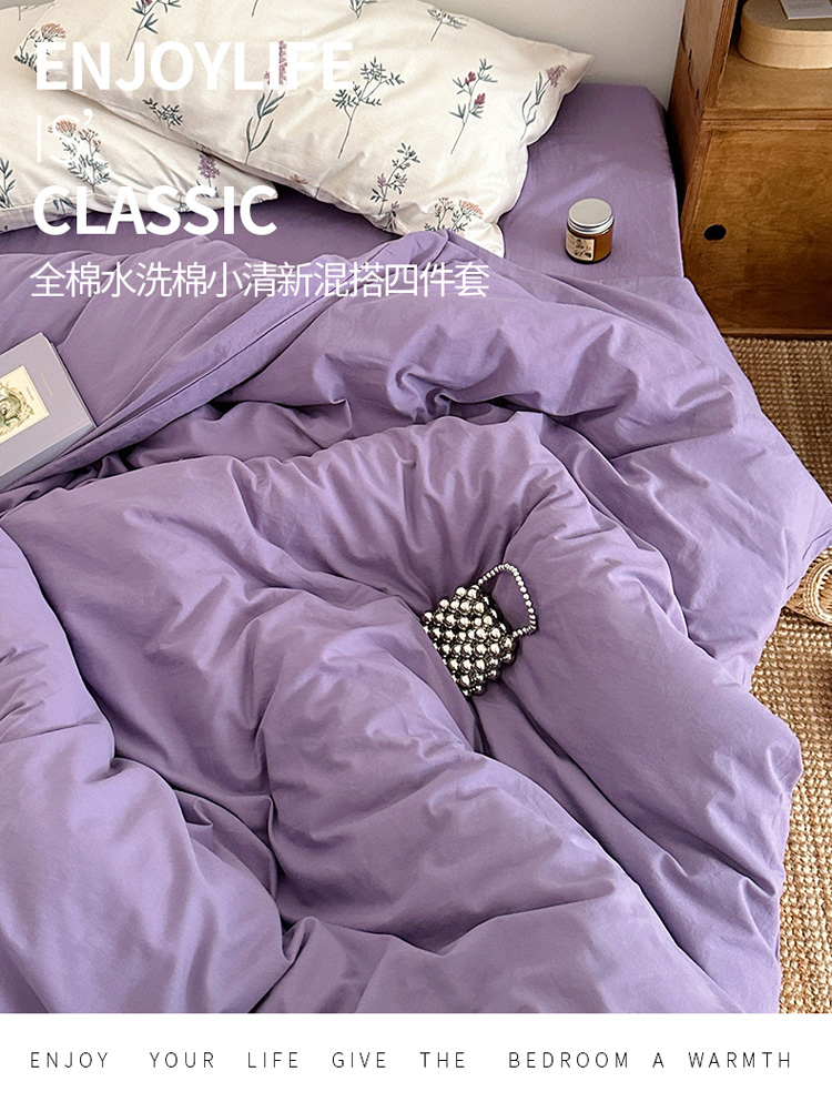 商品名称:艾沁 2024新款全棉水洗棉小清新混搭四件套 暗紫+紫薇