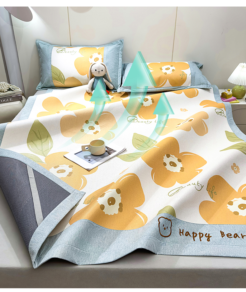 (总)兄弟坊 2025冰藤印花刺绣凉席冰藤席风格二