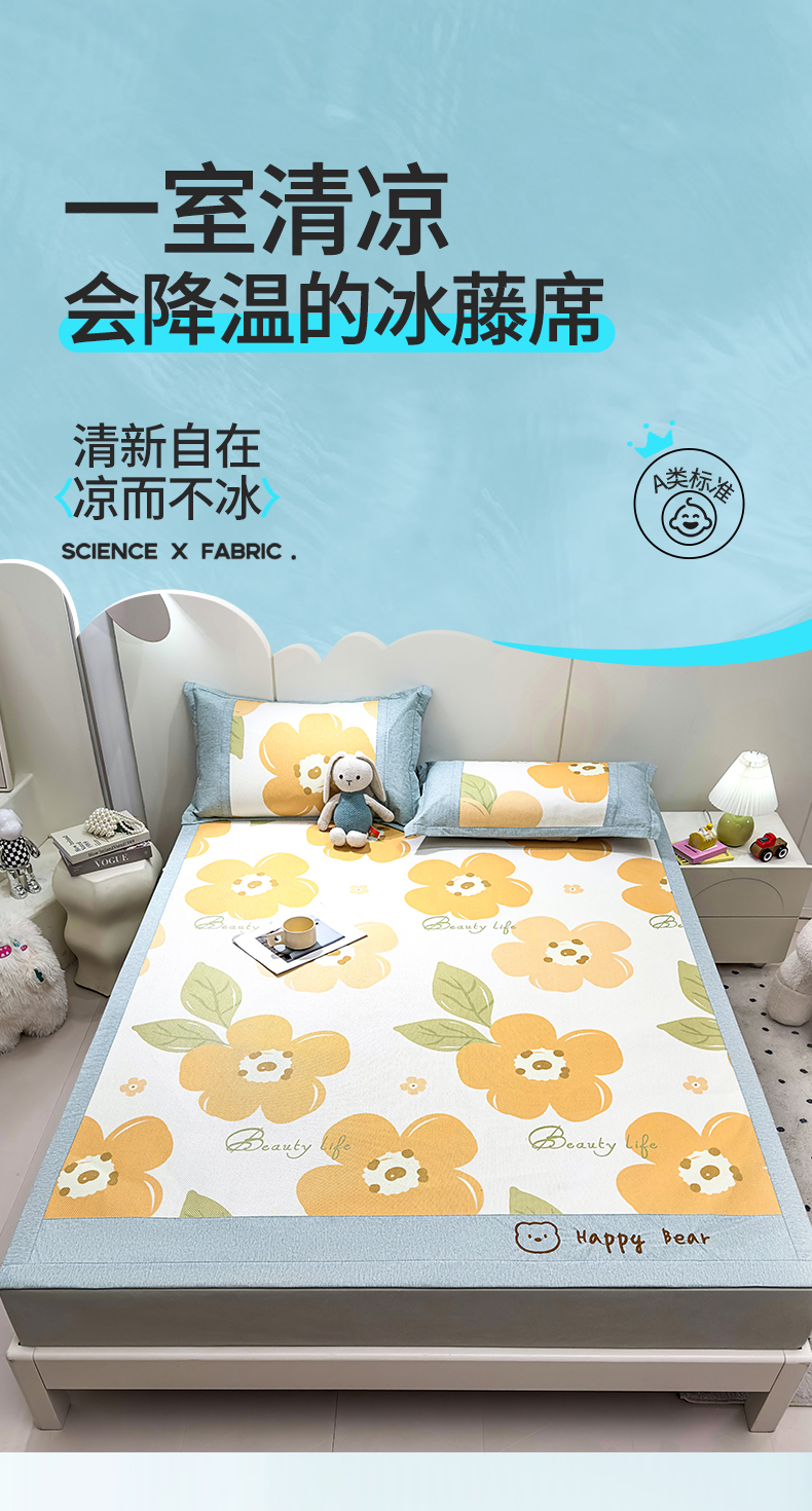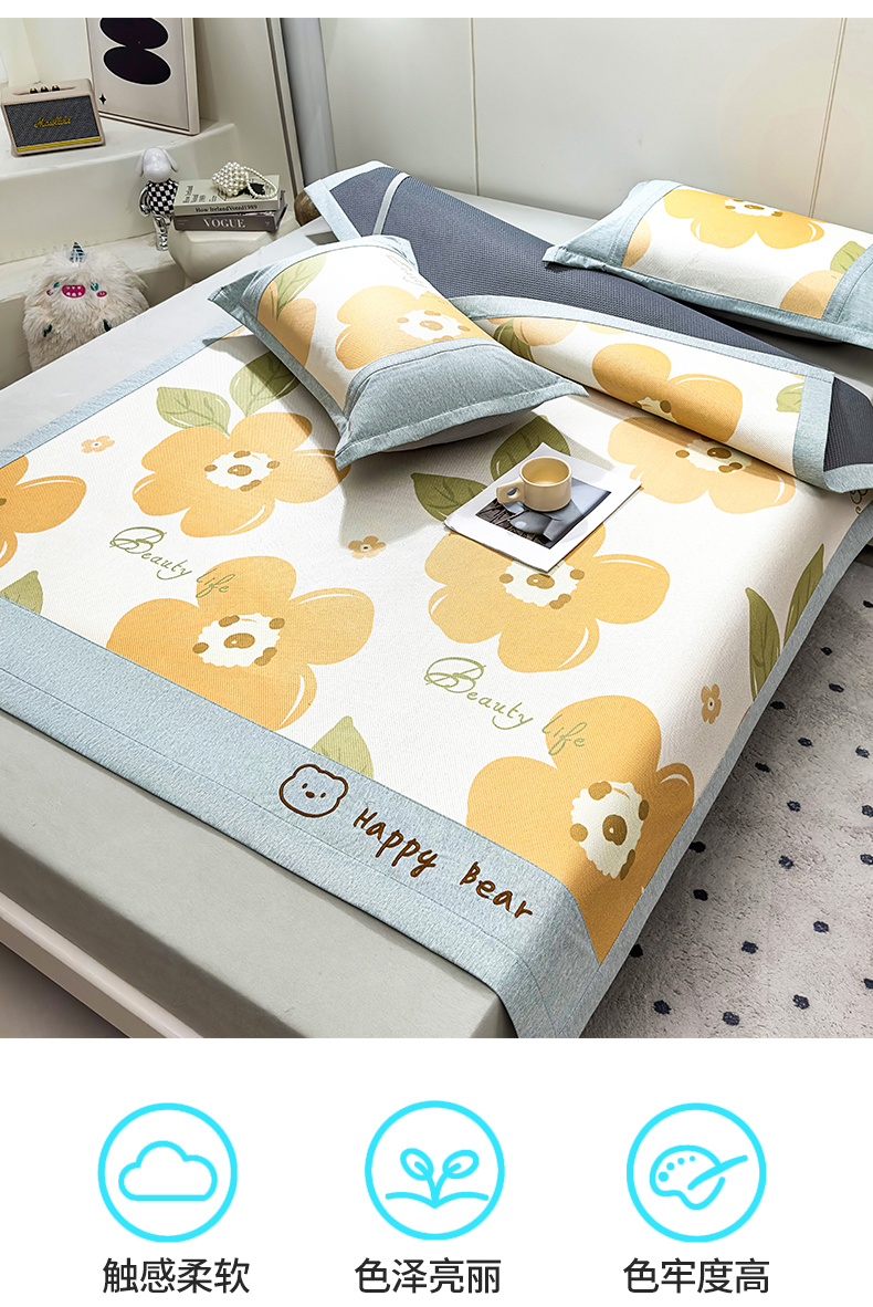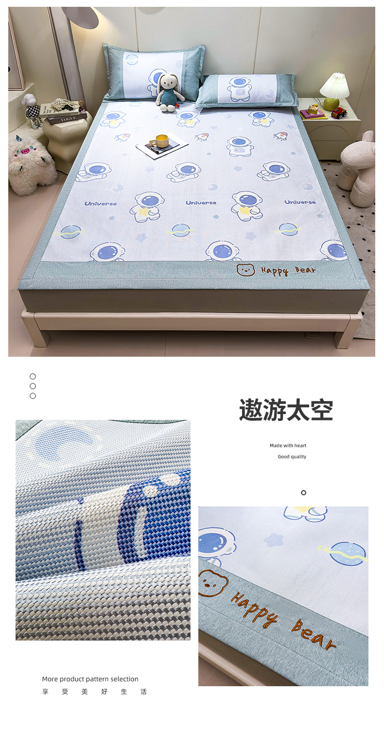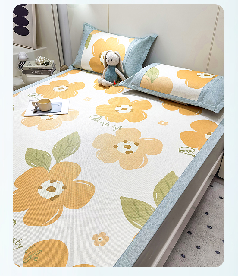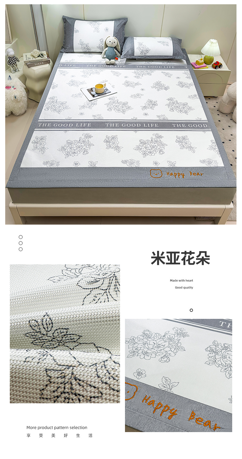 商品名称:(总)兄弟坊 2025冰藤印花刺绣凉席冰藤席风格二
