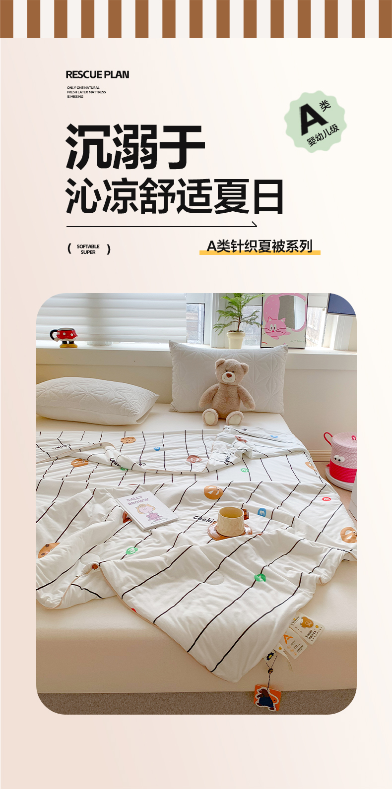 澳萝拉 2024新款A类针织印花夏被 趣多多