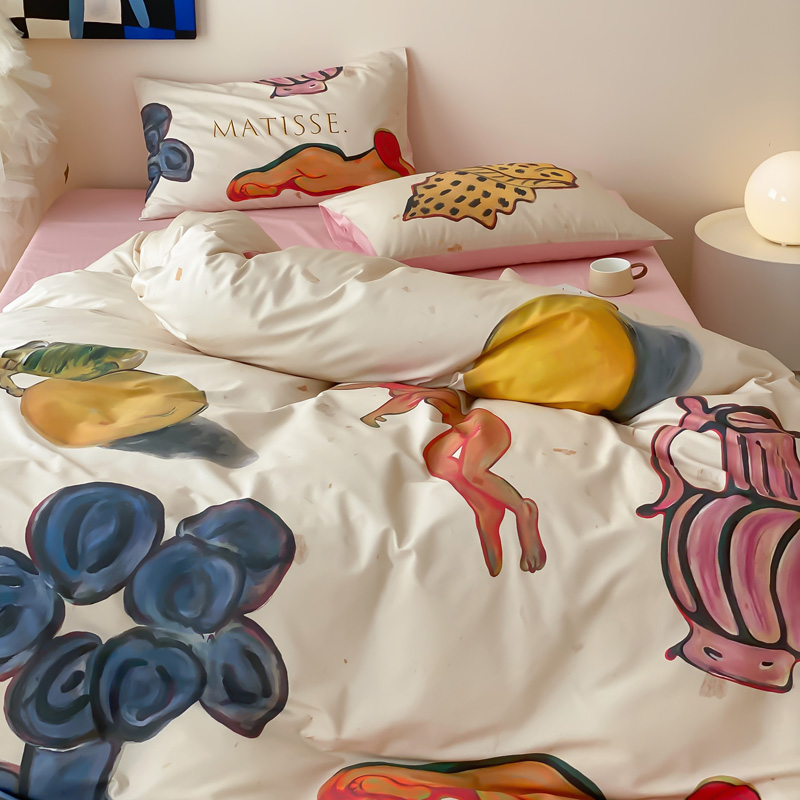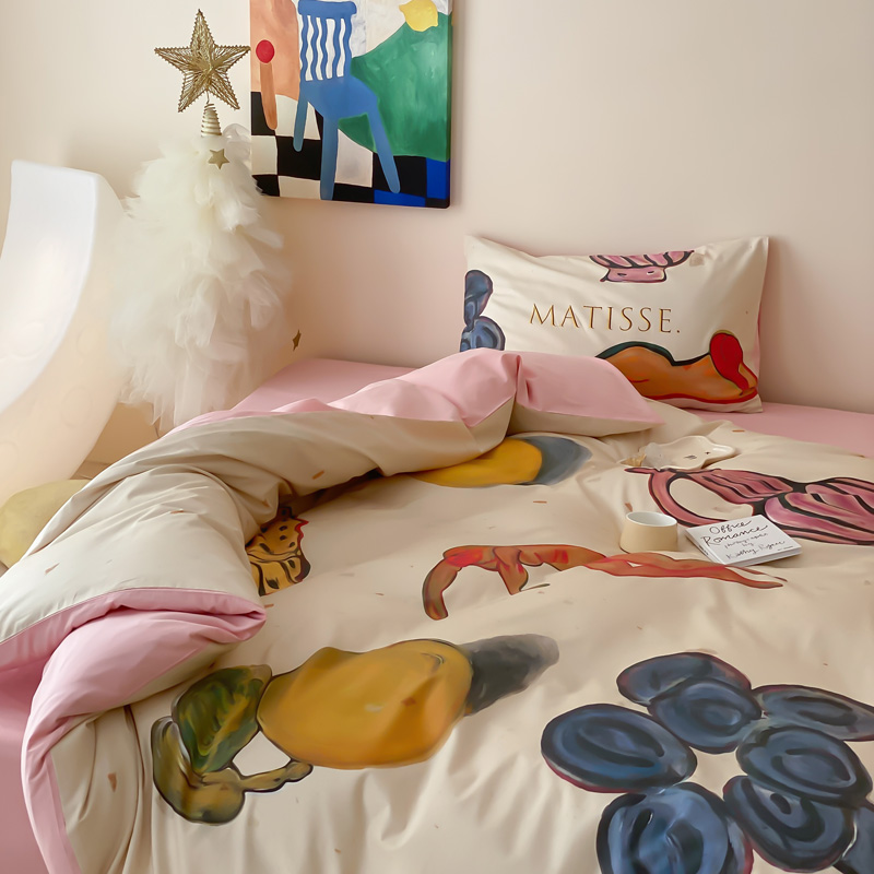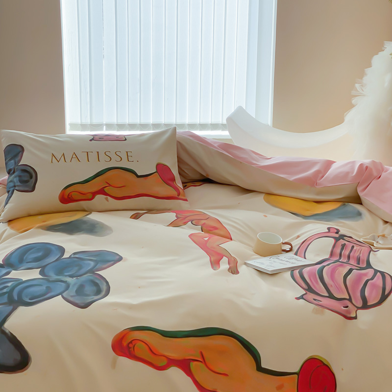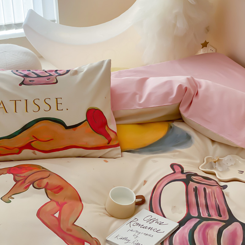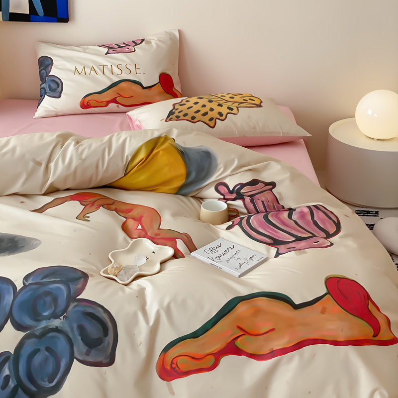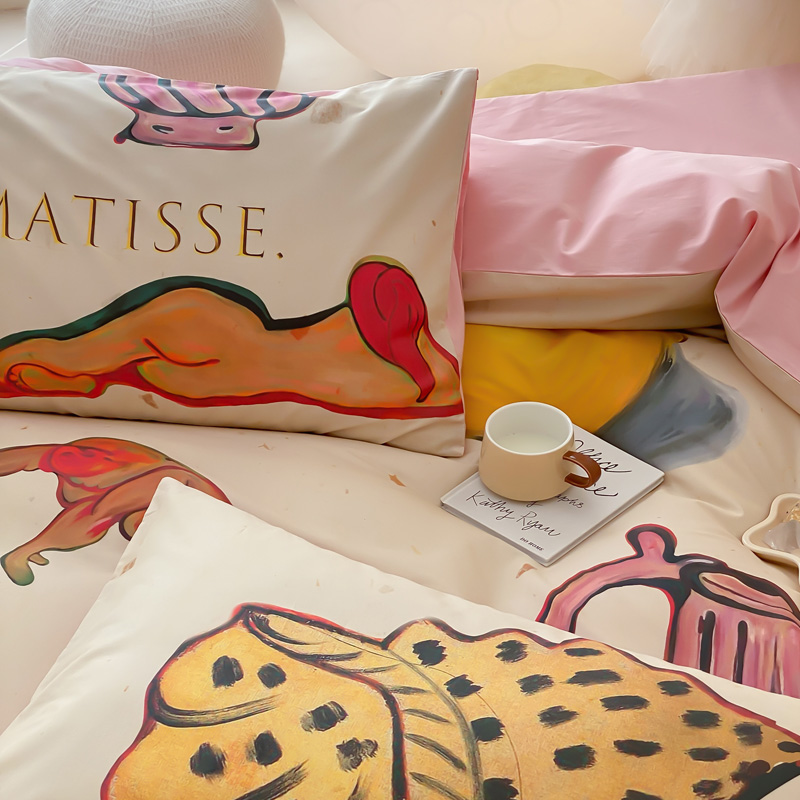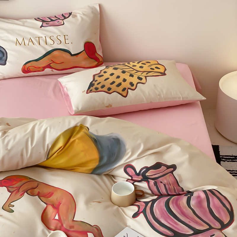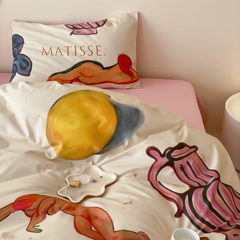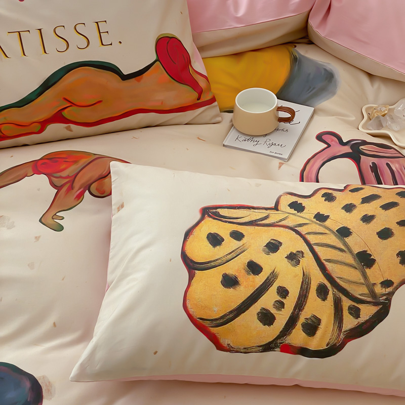艾沁家纺 2024新款a版40贡缎数码印花b版40水洗棉四件套-沉睡的马蒂斯场景二