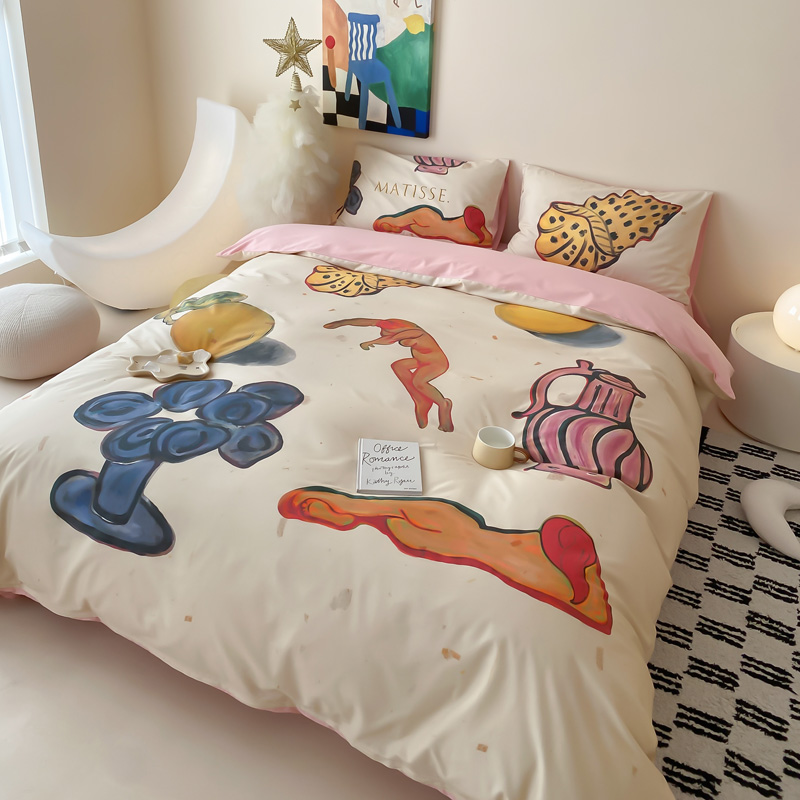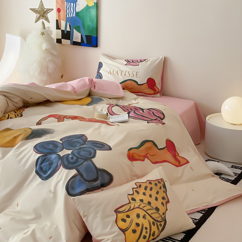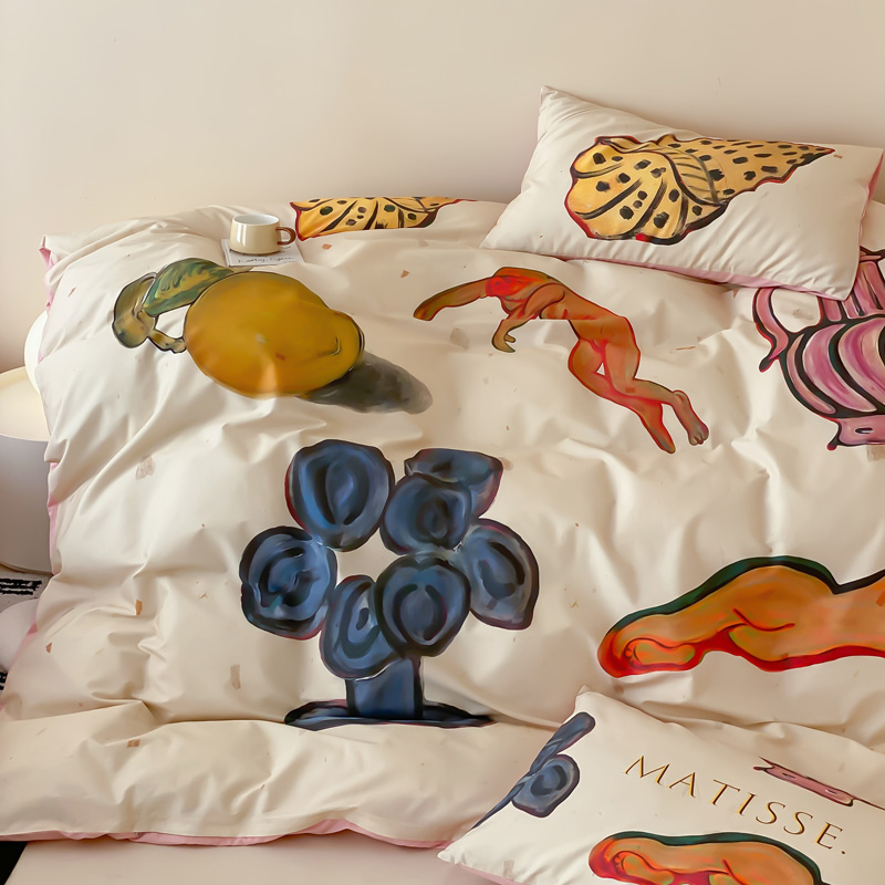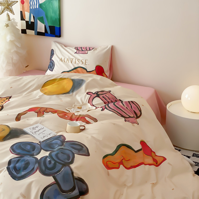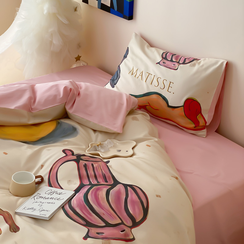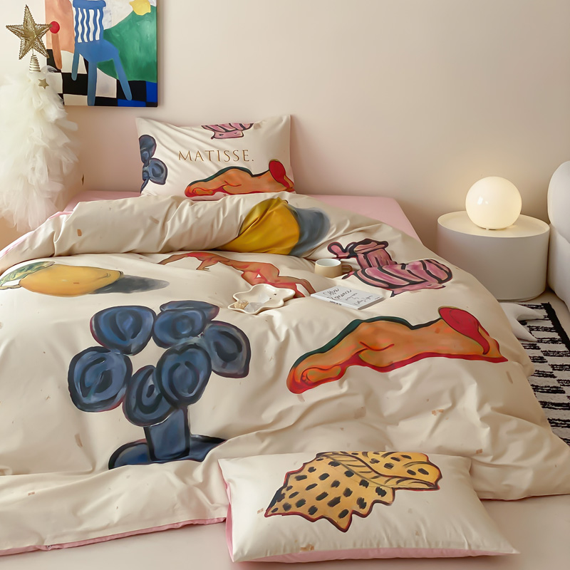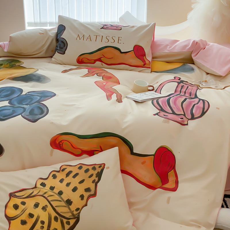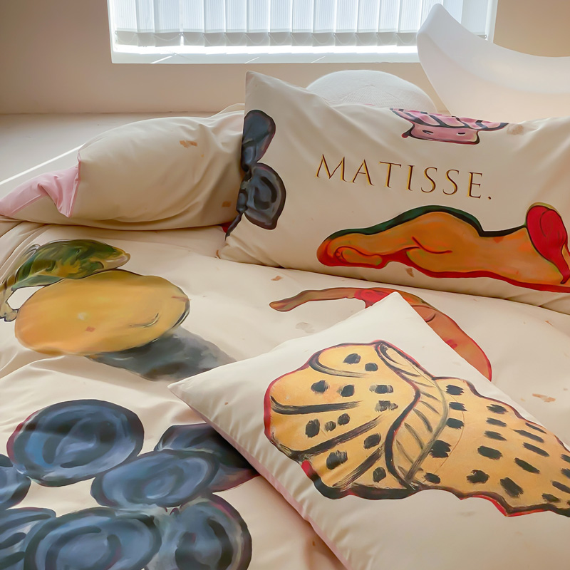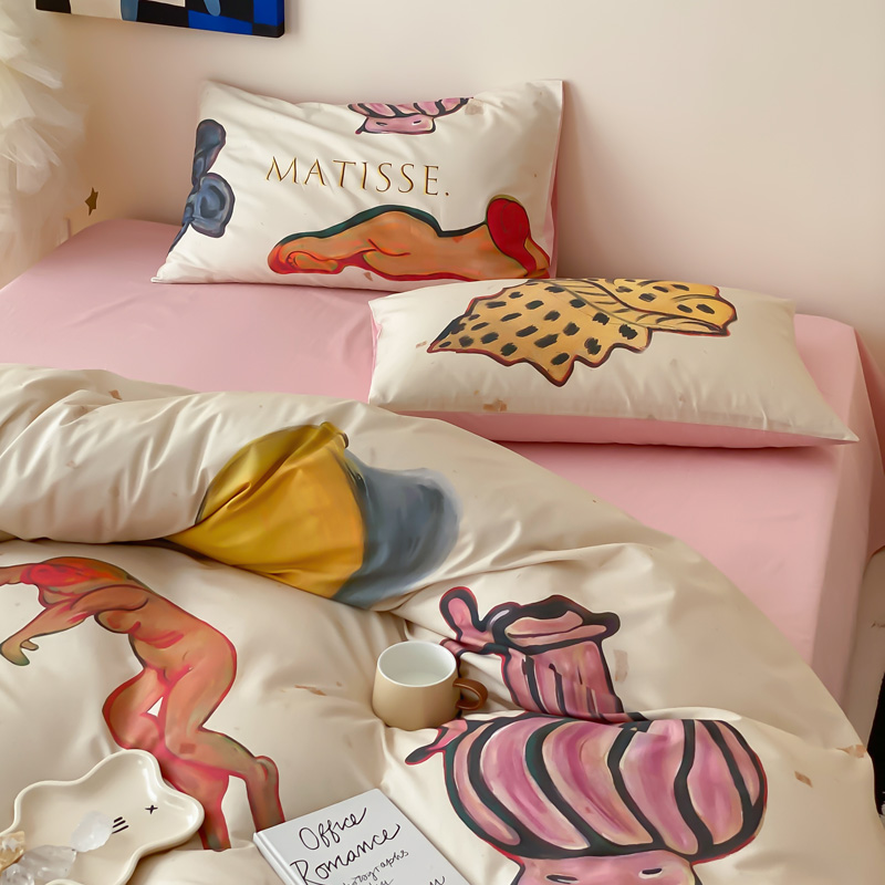 艾沁家纺 2024新款a版40贡缎数码印花b版40水洗棉四件套-沉睡的马蒂斯场景二