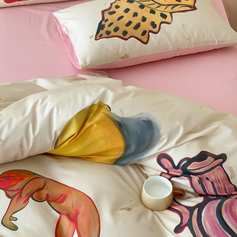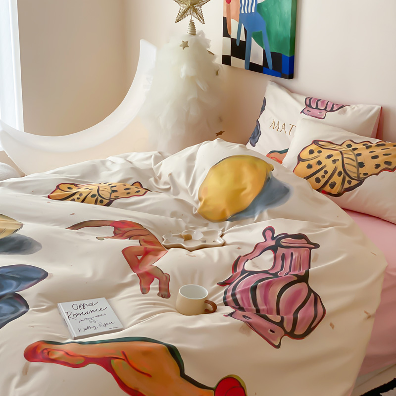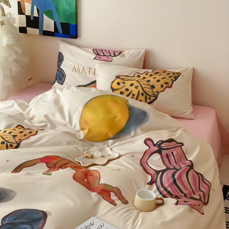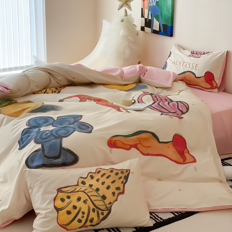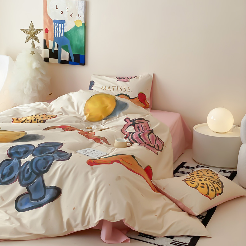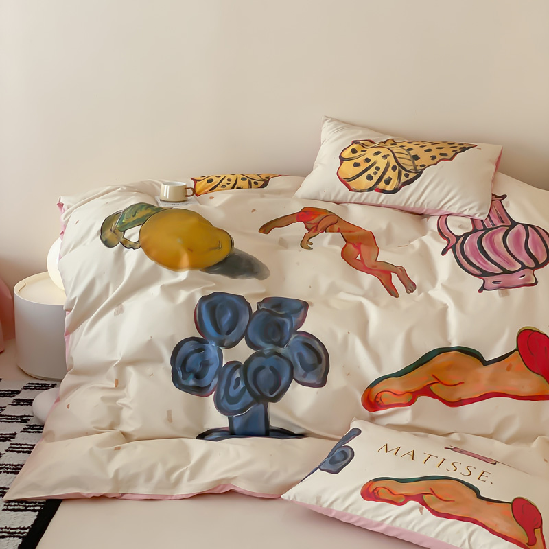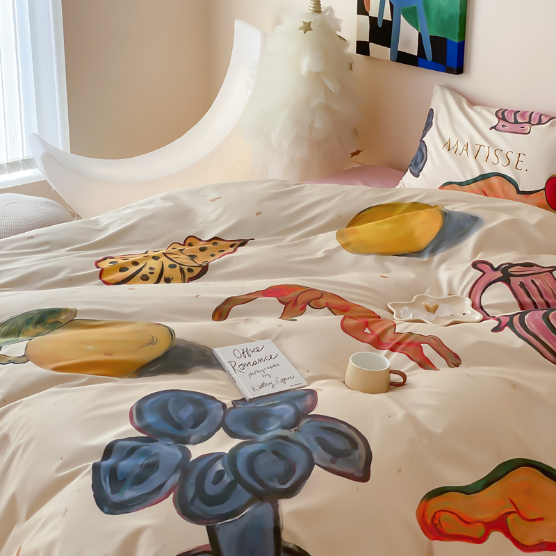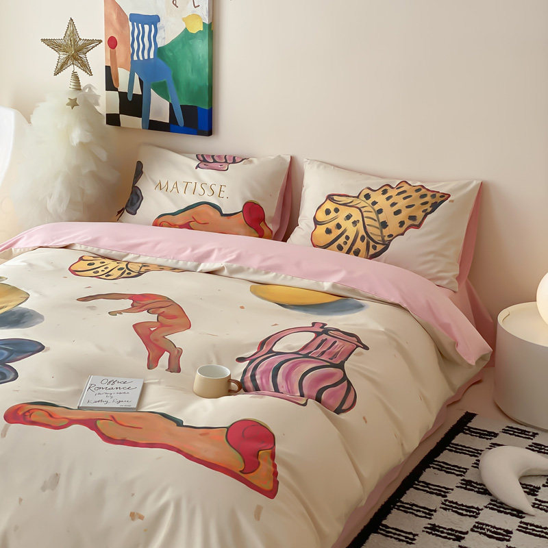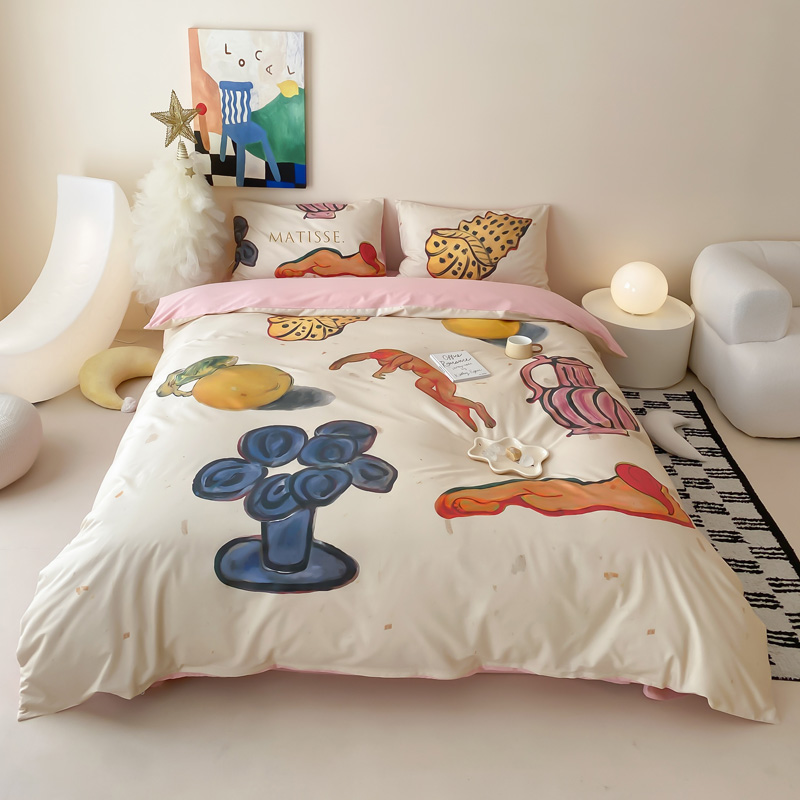 艾沁家纺 2024新款a版40贡缎数码印花b版40水洗棉四件套-沉睡的马蒂斯场景二