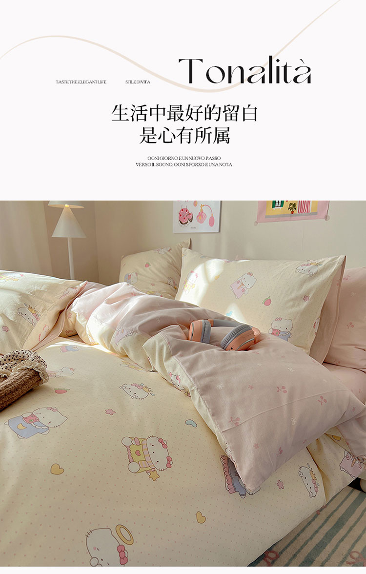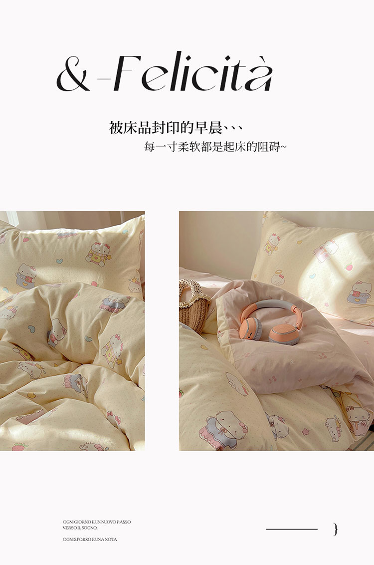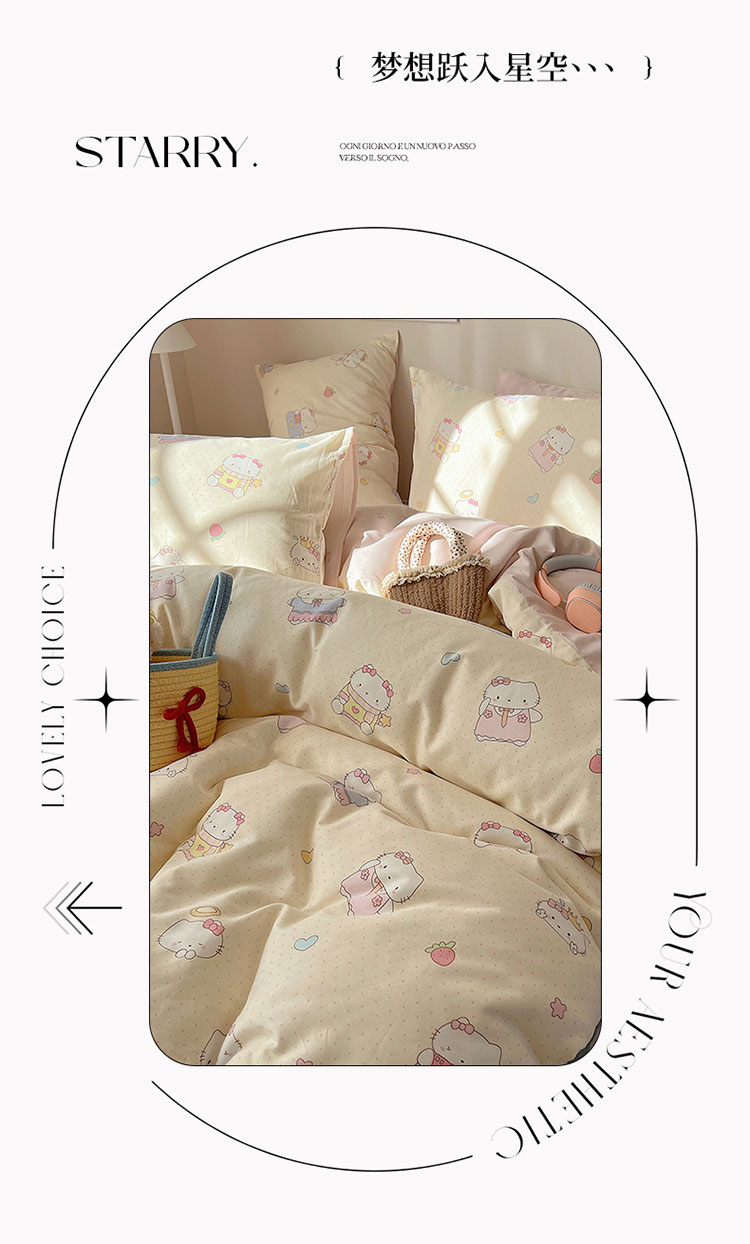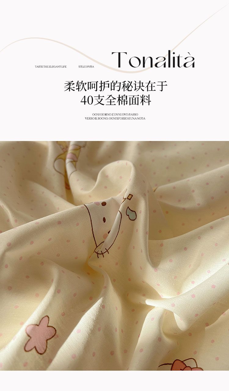 商品名称:六巷胡同 2025新款 INS减龄可爱风卡通全棉四件套第五系(森林音乐会系列) 波点嘟嘟猫