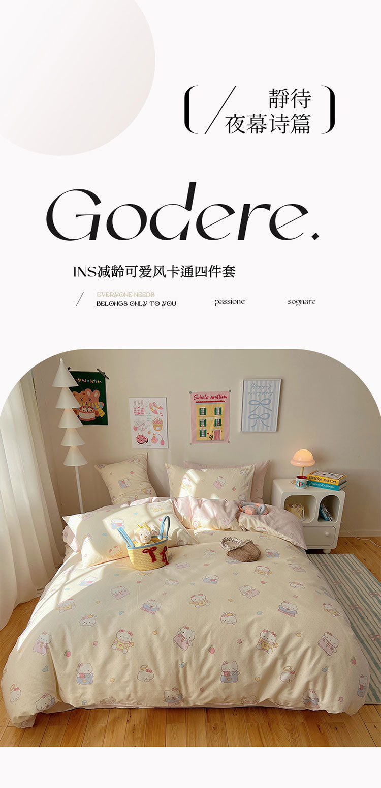 (总)六巷胡同 2026新款INS博主风卡通A类全棉双层纱四件套,双层纱-海盐樱桃熊,双层纱-贝雷腊肠狗,双层纱-达奇家政喵,双层纱-多乐背带熊,双层纱-花圃萝莉猫,双层纱-马卡龙蛋糕,双层纱-萌趣佩佩猪,双层纱-甜心童话猫,双层纱-元气蝴蝶结,双层纱-云朵苏萨犬