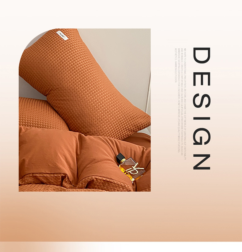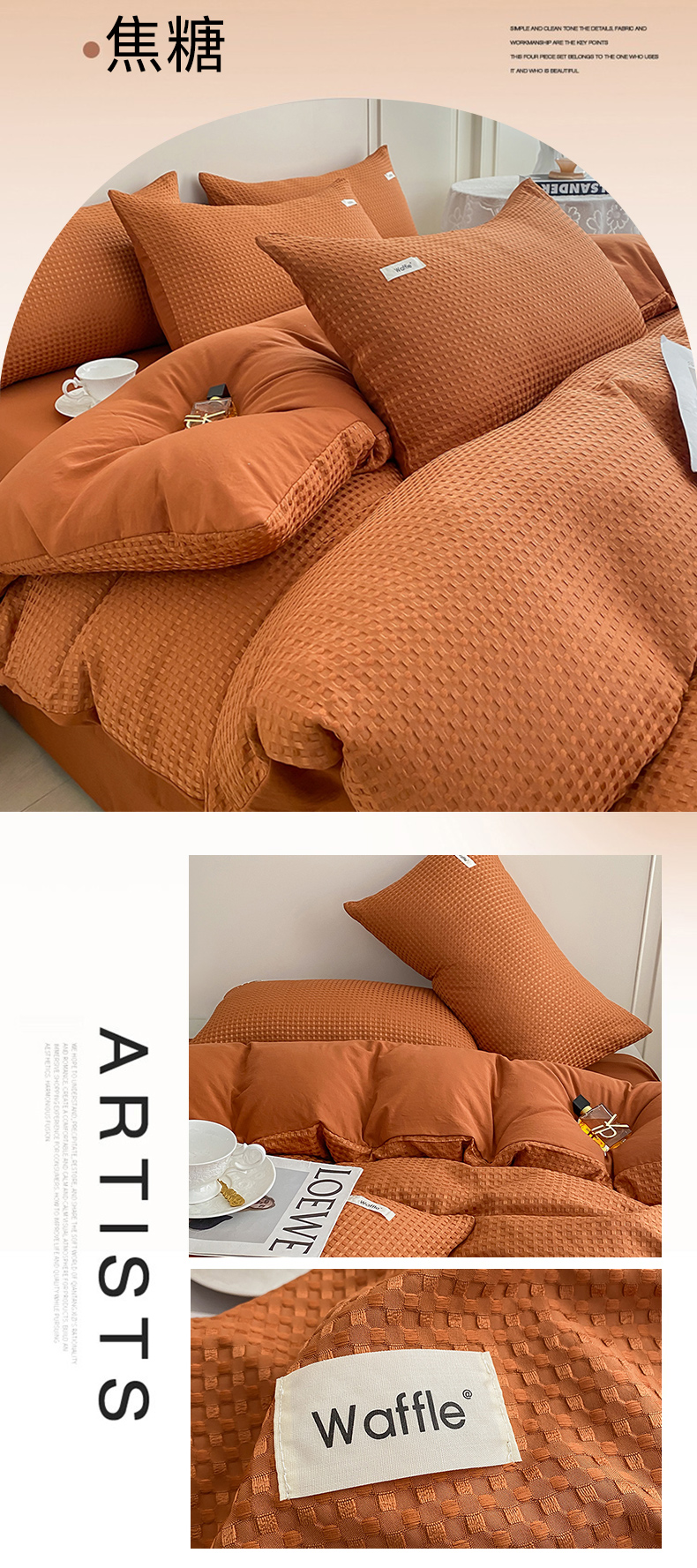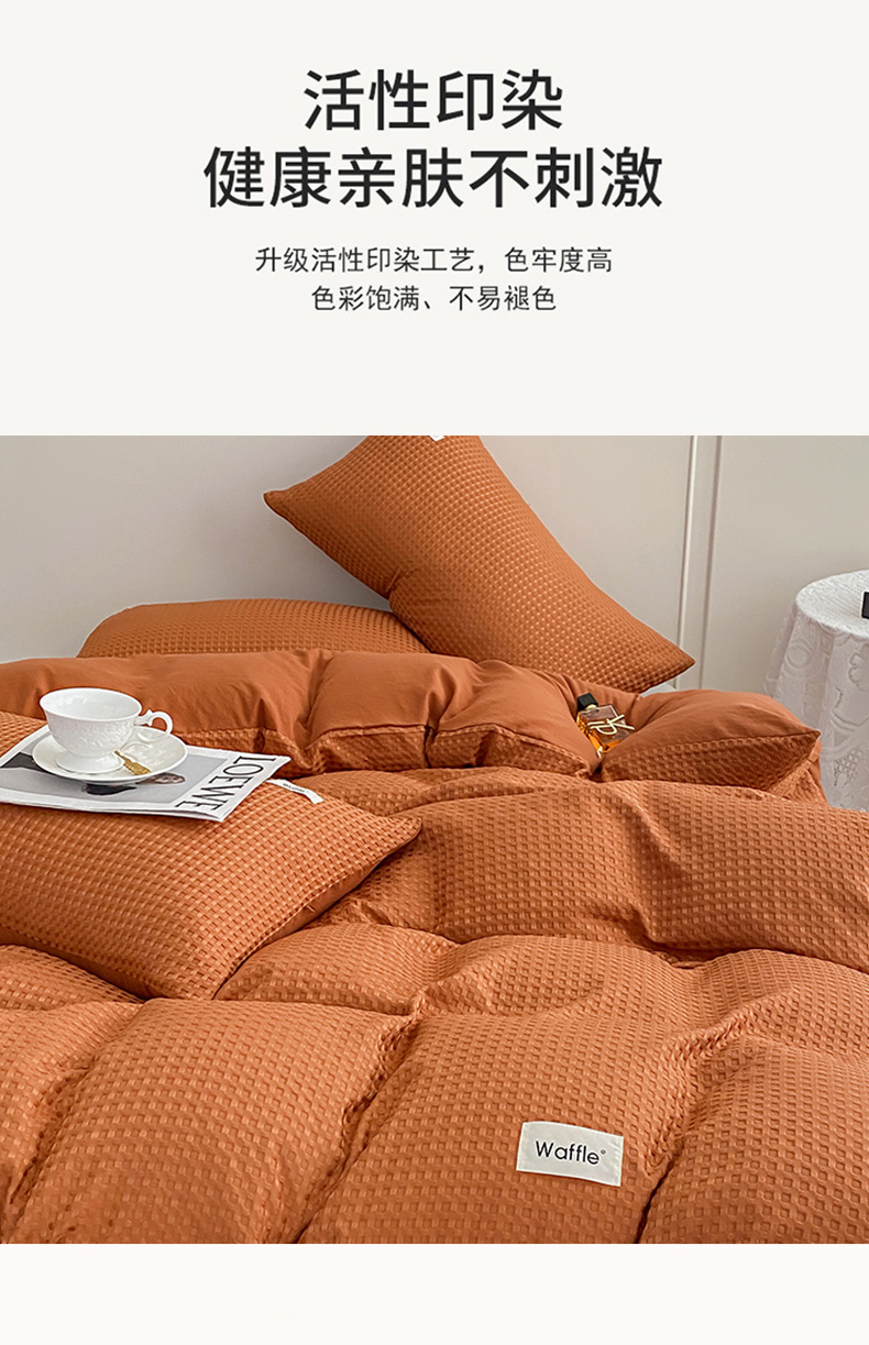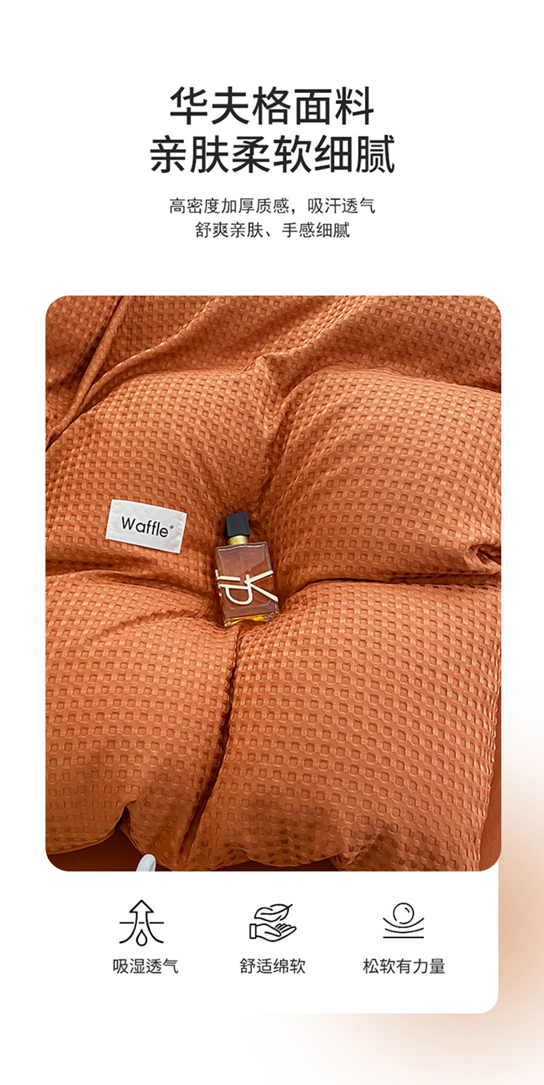 商品名称:仟网汇 2025新款华夫格森语夏被四件套北欧简约风 夏被-焦糖