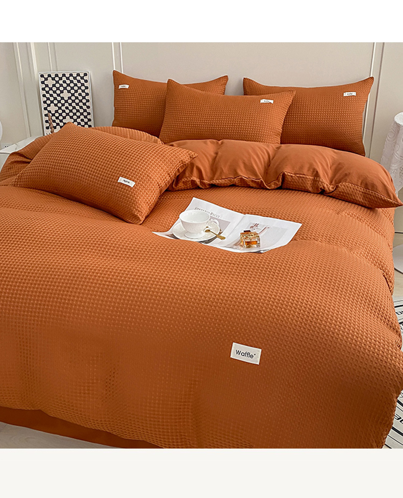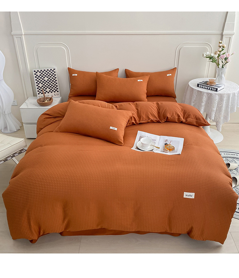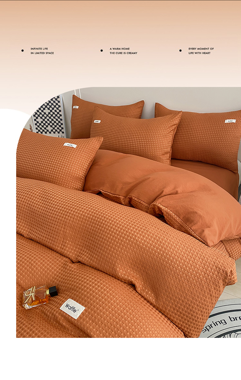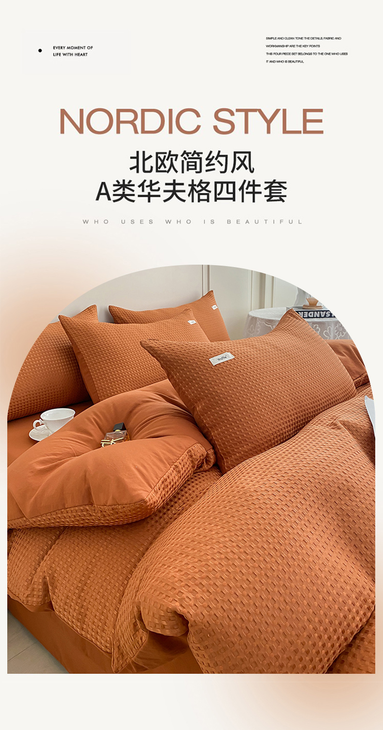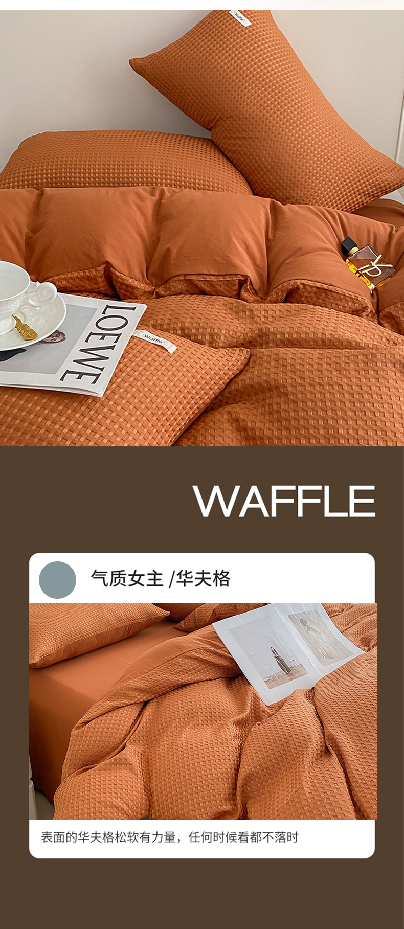 仟网汇 2025新款华夫格森语夏被四件套北欧简约风 夏被-焦糖