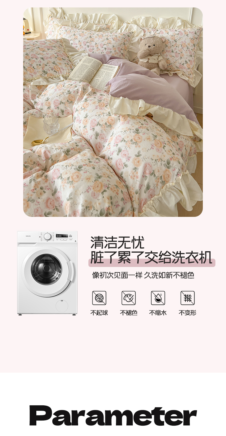 当前位置: 91家纺网 > 商品网购 > 床品套件 > 四件套 > 双层纱四件套 > 涵宸家纺 2025新款A类全棉双层纱荷叶花边四件套 花边-婉然