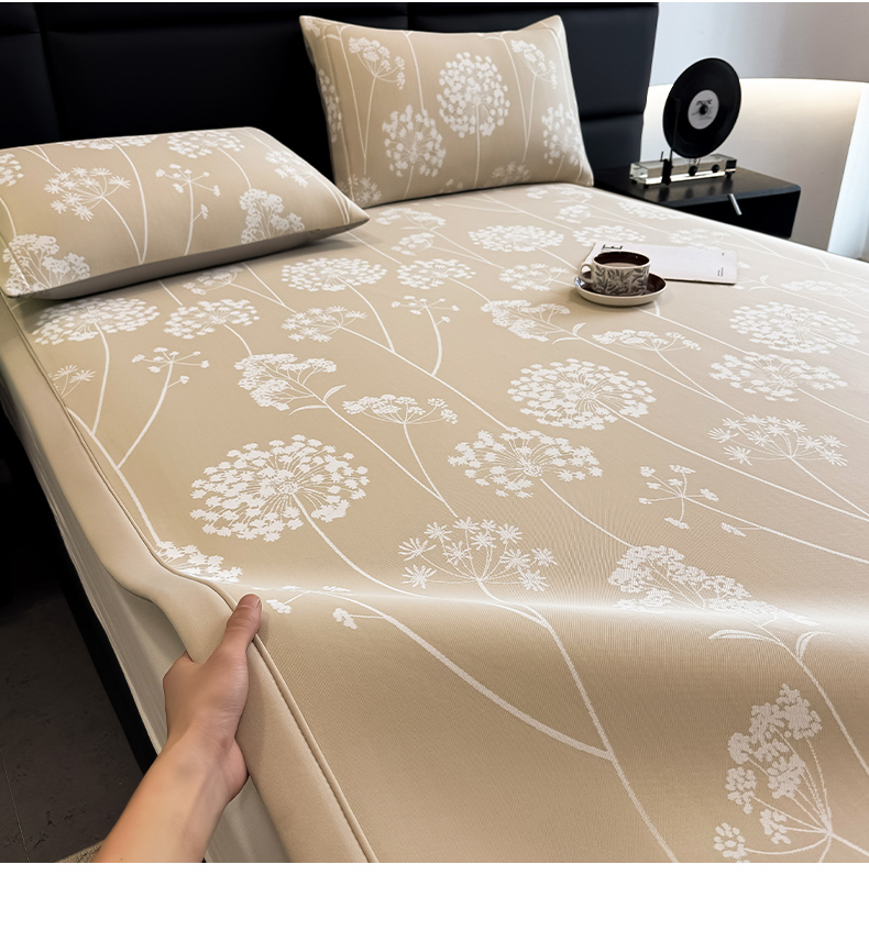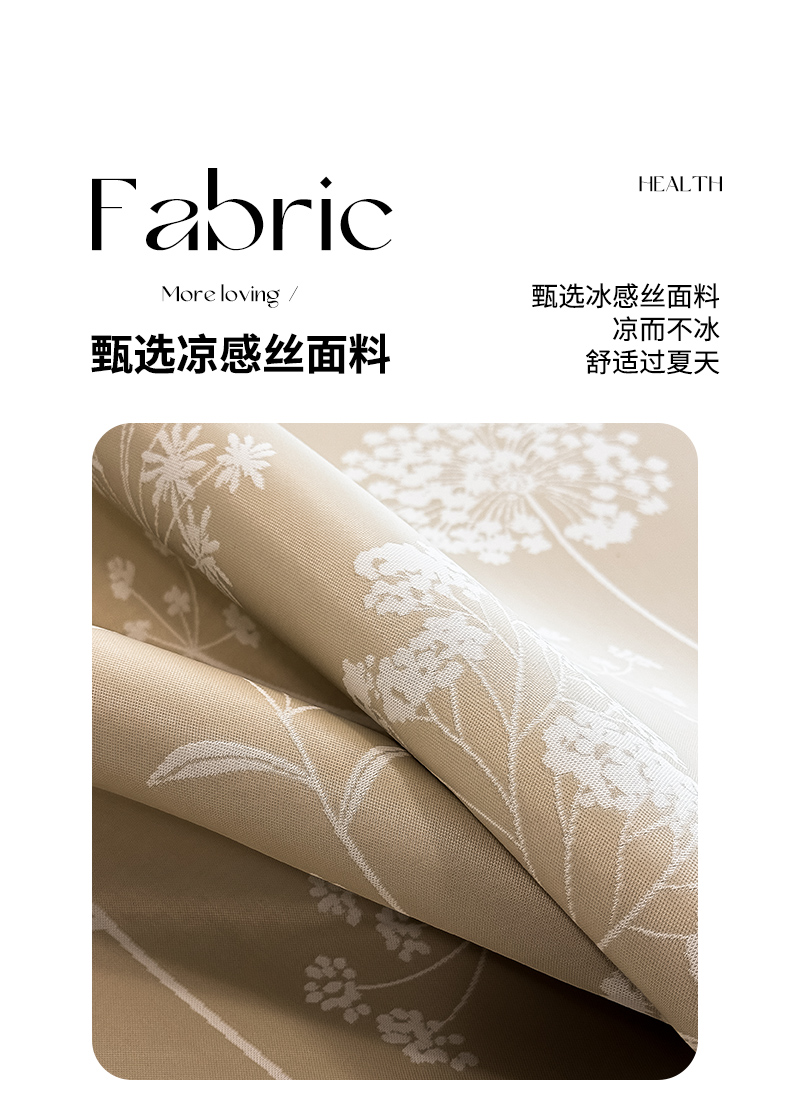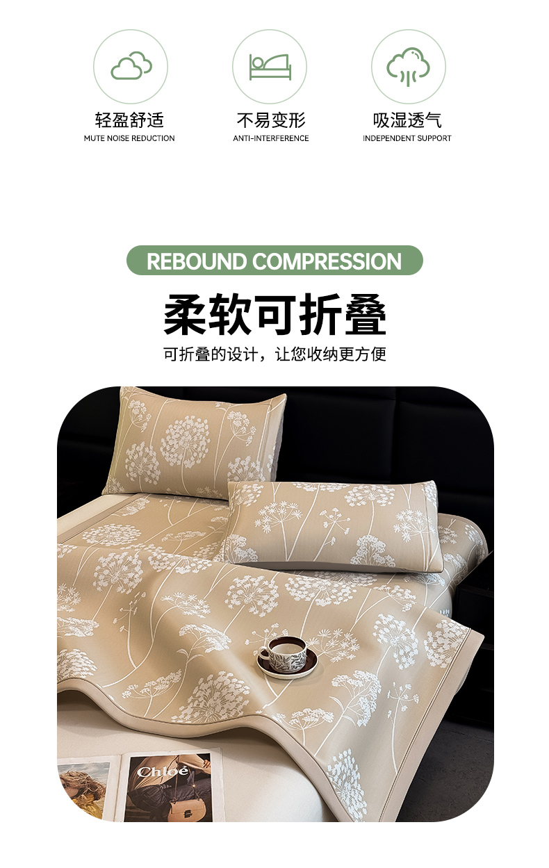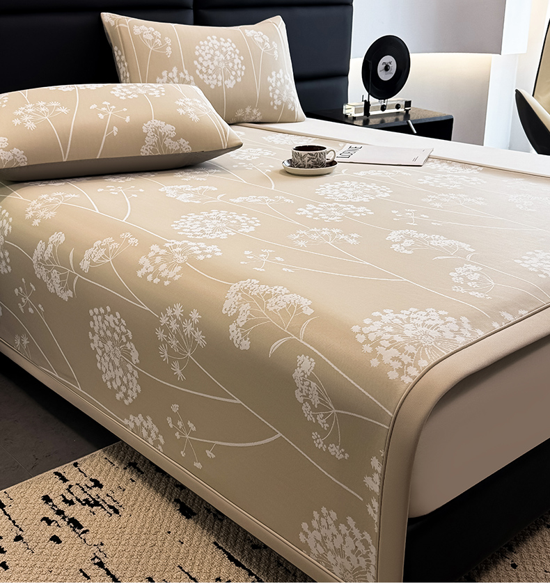 商品名称:全季家居 2025新款5A乙纶全PE花卉轻奢提花凉感软凉席席子 落盏-浅咖 床席