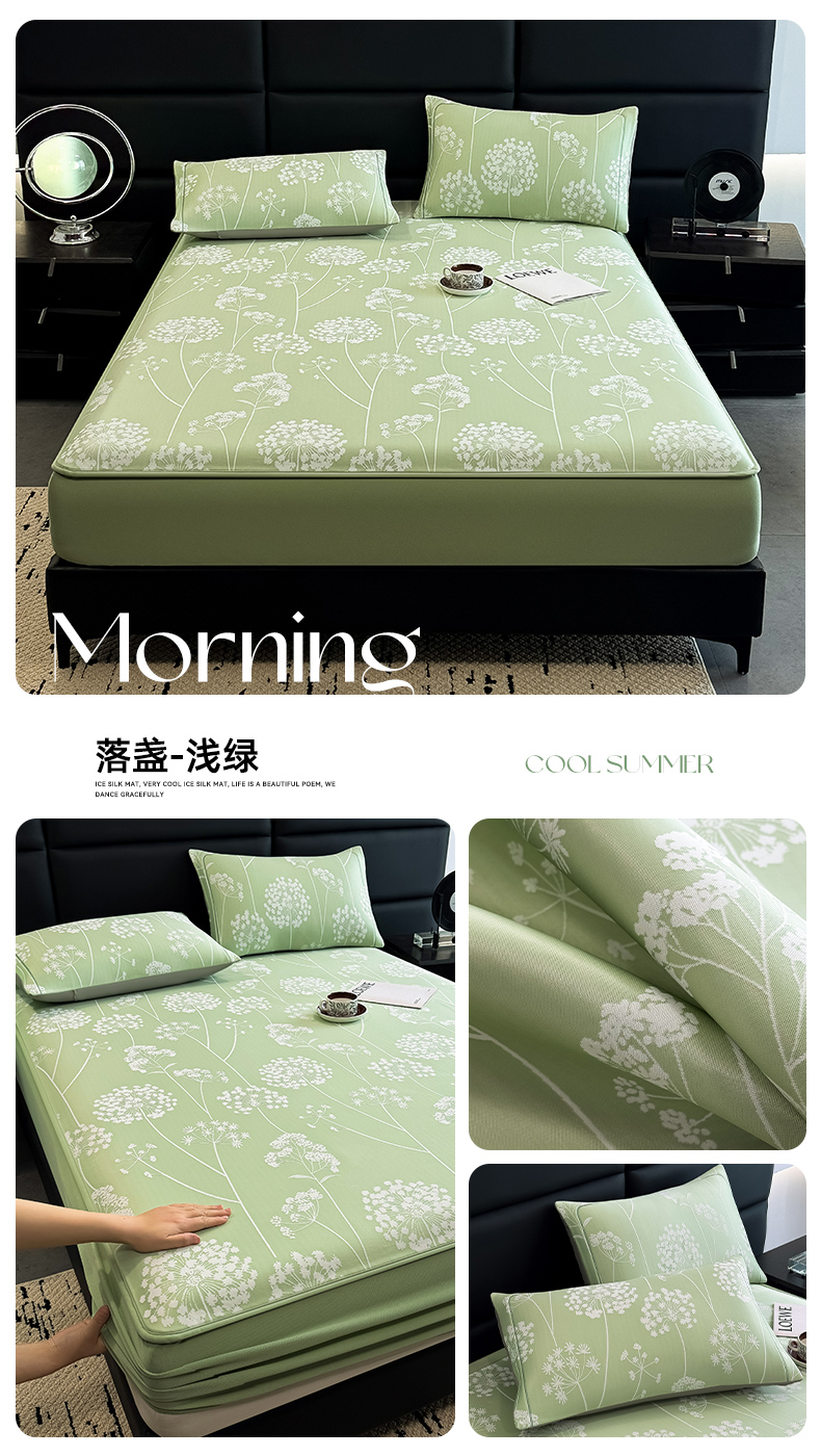 (总)全季家居 2023新款纯色凉感丝刺绣凉席,天蓝,灰色,粉色,绿色,草绿