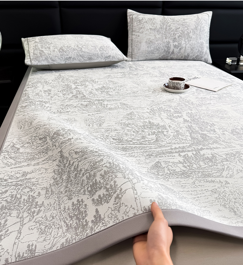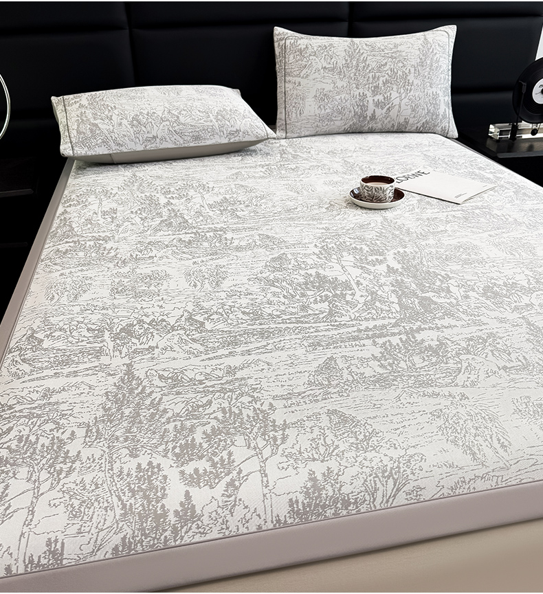 商品名称:全季家居 2025新款5A乙纶全PE花卉轻奢提花凉感软凉席席子 莫奈-浅灰 床席