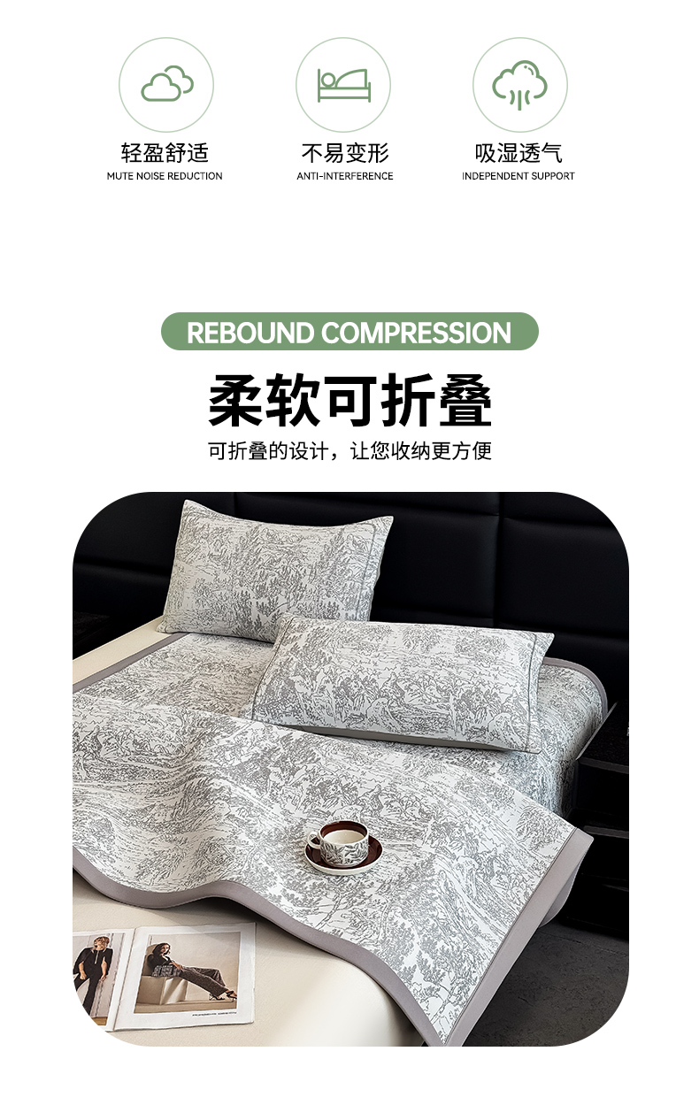 (总)全季家居 2023新款A类轻奢抗菌冰藤席,和意款-孔雀蓝,和意款-星际灰,和意款-薄荷绿,字母款-孔雀蓝,字母款-薄荷绿,字母款-星际灰