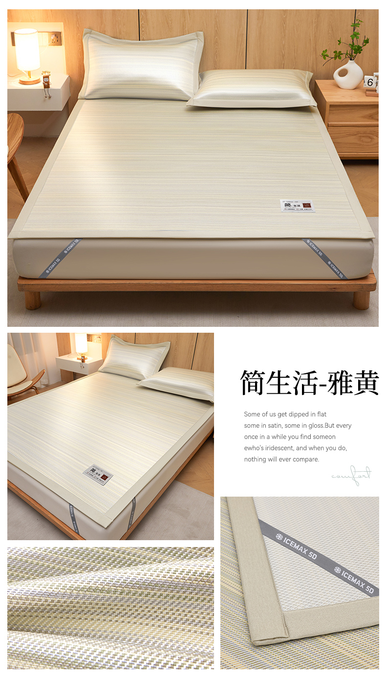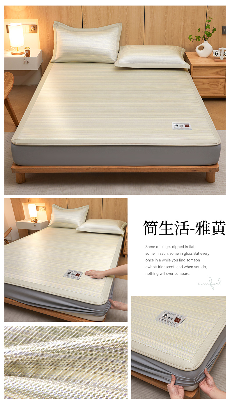 商品名称:全季家居 2025新款5A抗菌防螨仿草席冰藤席凉席席子 良品-雅黄 床席