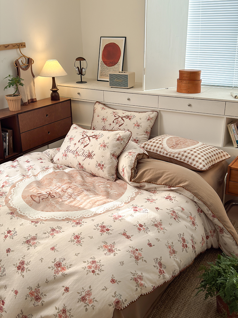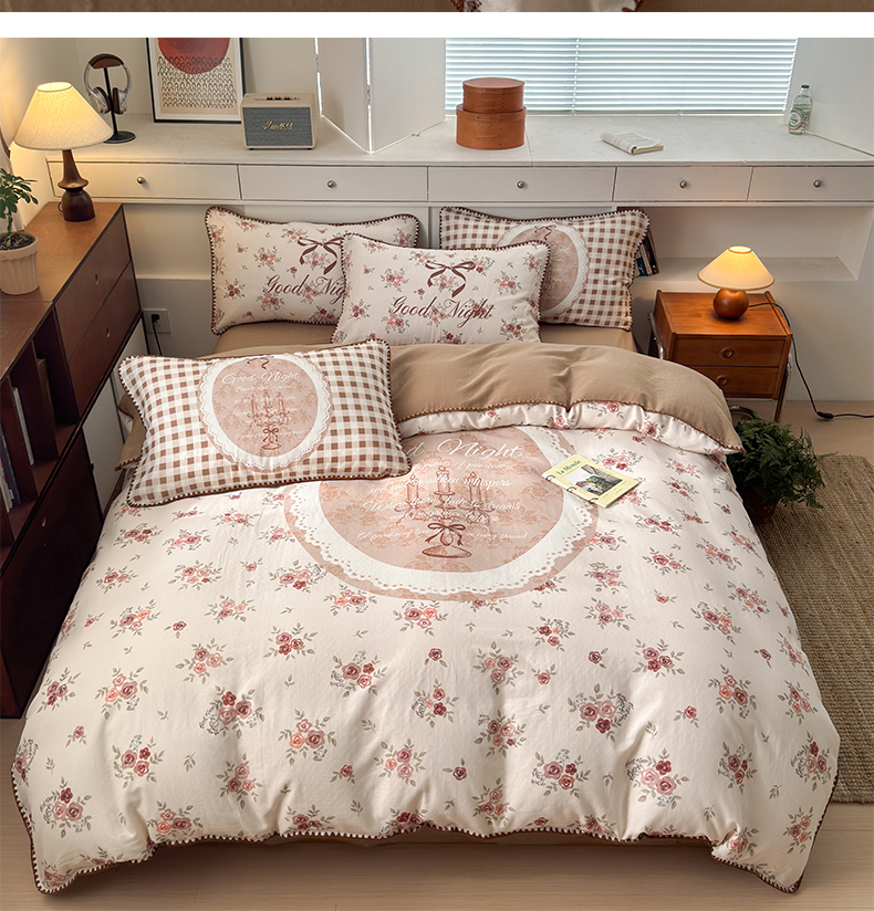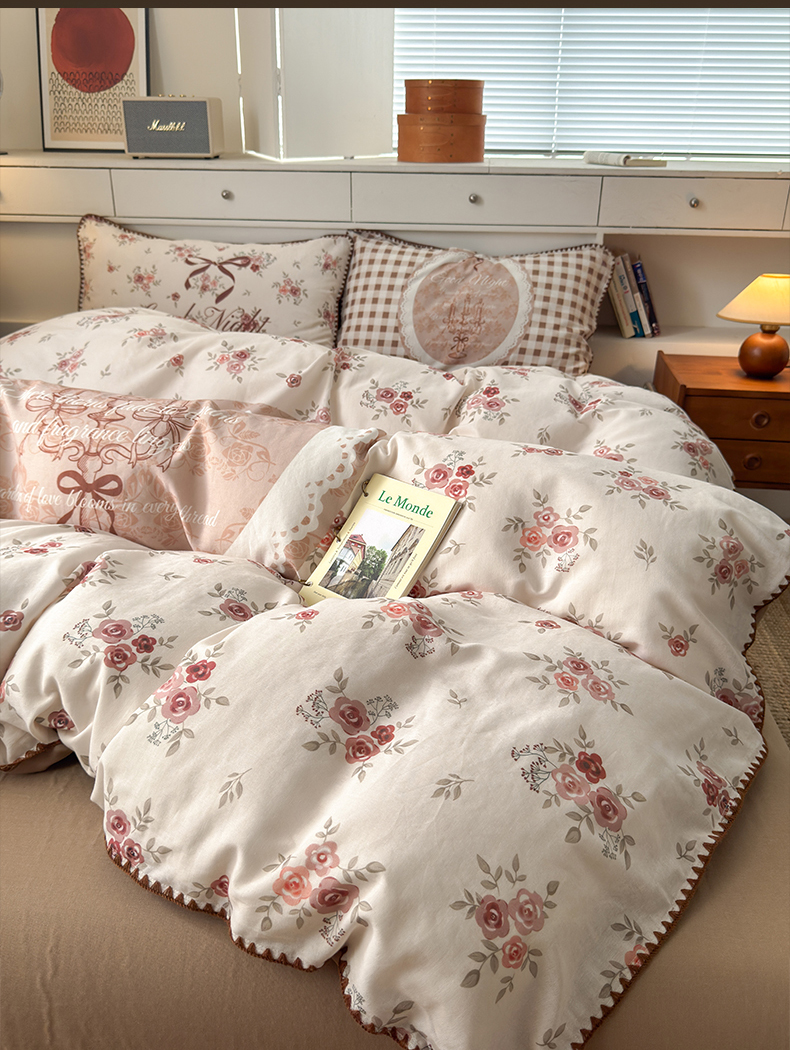 RYB红黄兰 2025新款全棉大版双层纱贝壳边四件套 复古玫瑰