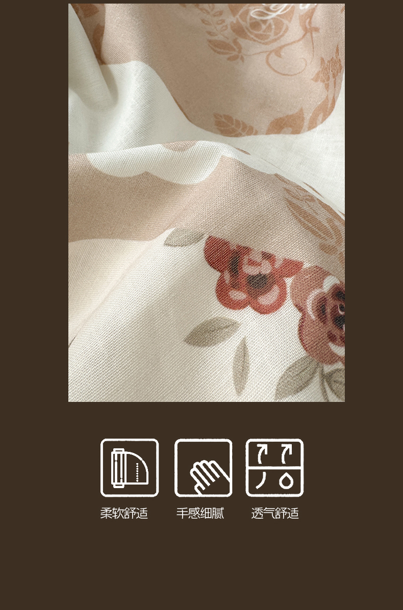 商品名称:RYB红黄兰 2025新款全棉大版双层纱贝壳边四件套 复古玫瑰
