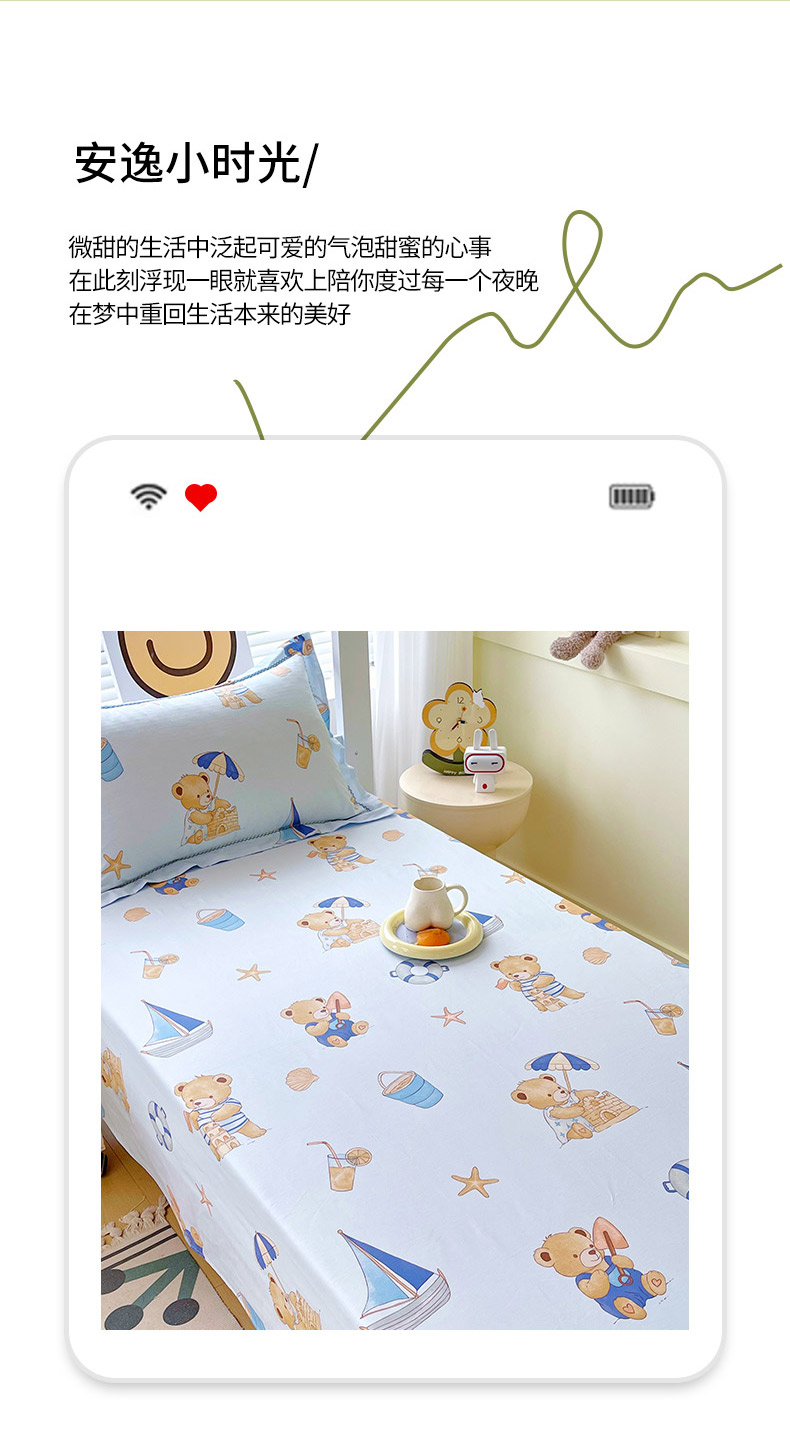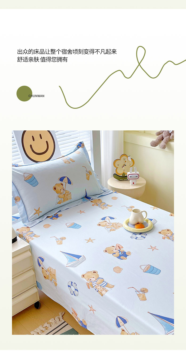 商品名称:春皖家纺 2025新款学生季全棉纯棉13070印花单床单 床单单件 休闲假日