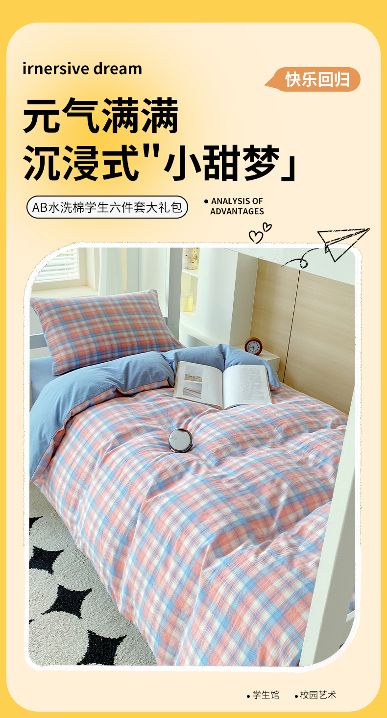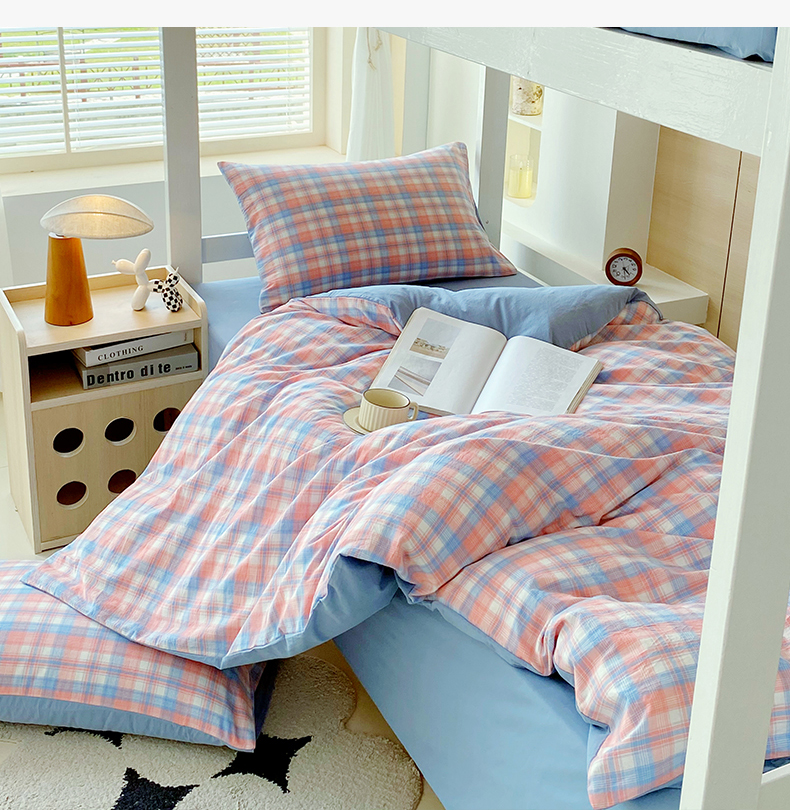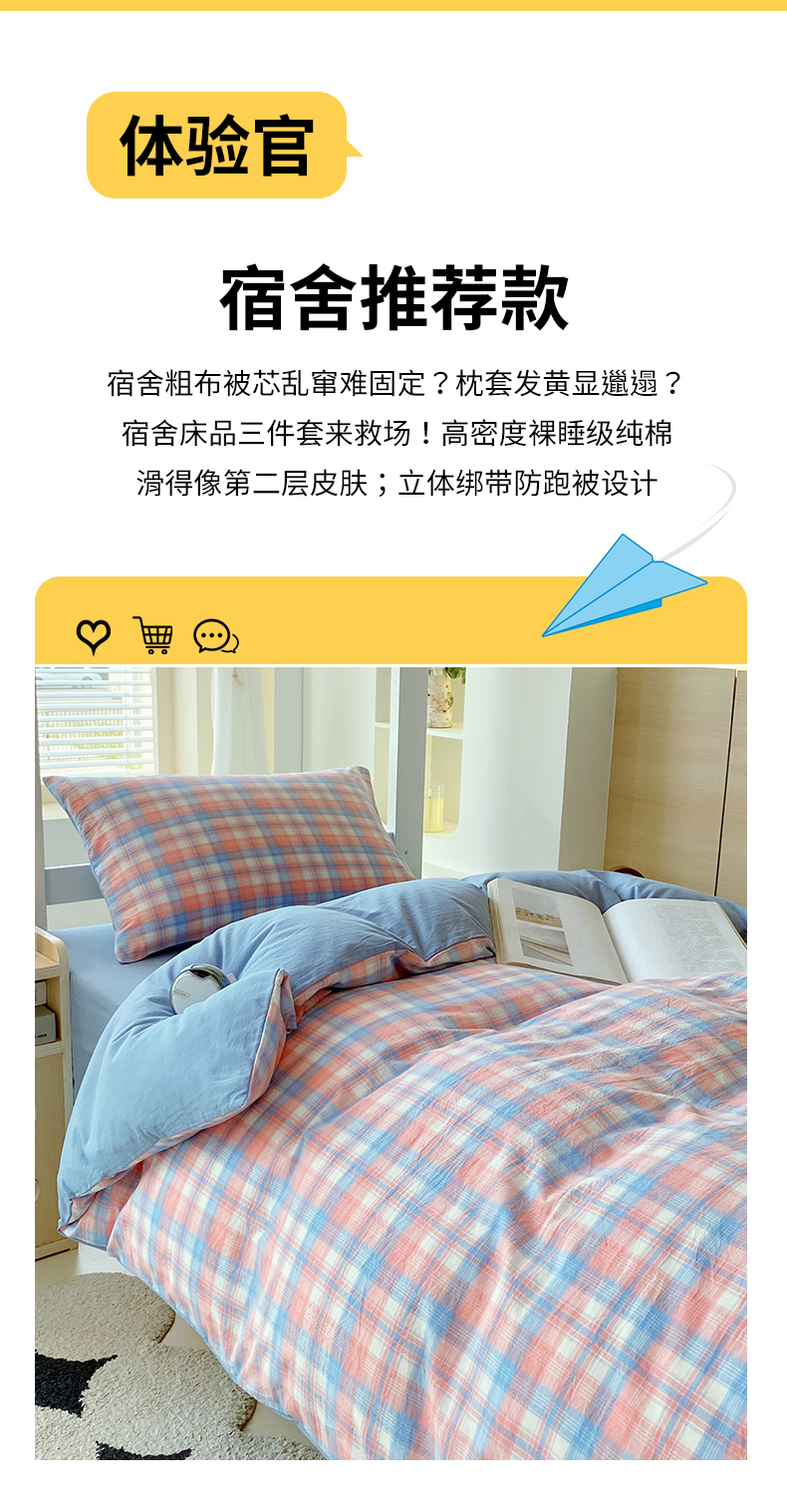 当前位置: 91家纺网 > 商品网购 > 床品套件 > 四件套 > 春皖家纺 2025新款AB棉全棉亲肤水洗棉学生三件套四件套 翠竹-桔格