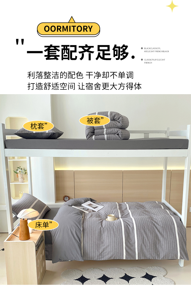 当前位置: 91家纺网 > 商品网购 > 床品套件 > 四件套 > 春皖家纺 2025新款AB棉全棉亲肤水洗棉学生三件套四件套 素雅-灰条