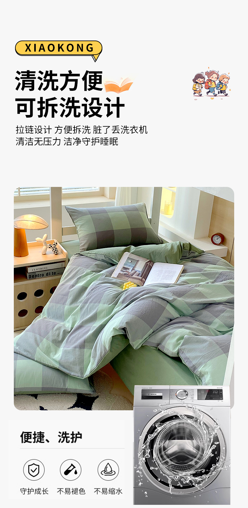 当前位置: 91家纺网 > 商品网购 > 床品套件 > 四件套 > 春皖家纺 2025新款AB棉全棉亲肤水洗棉学生三件套四件套 素雅-清格
