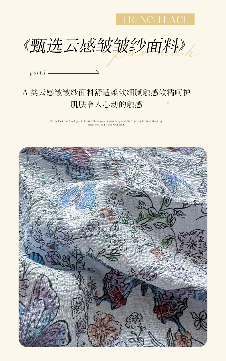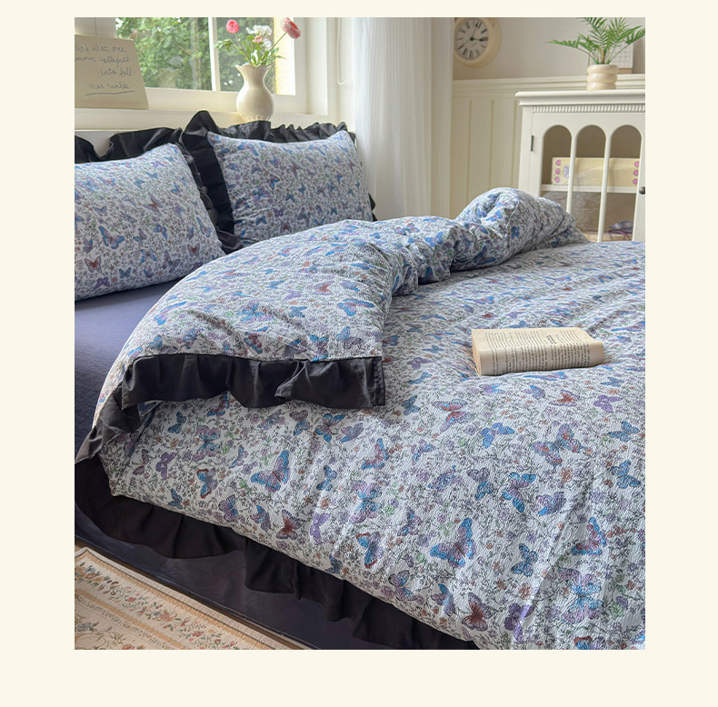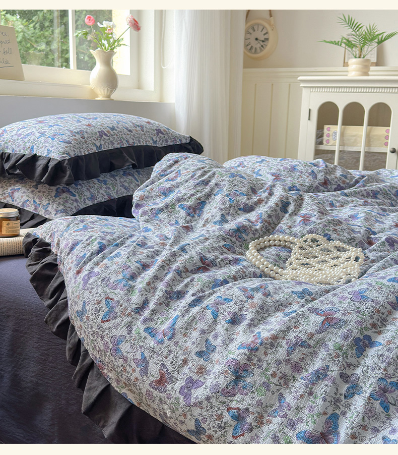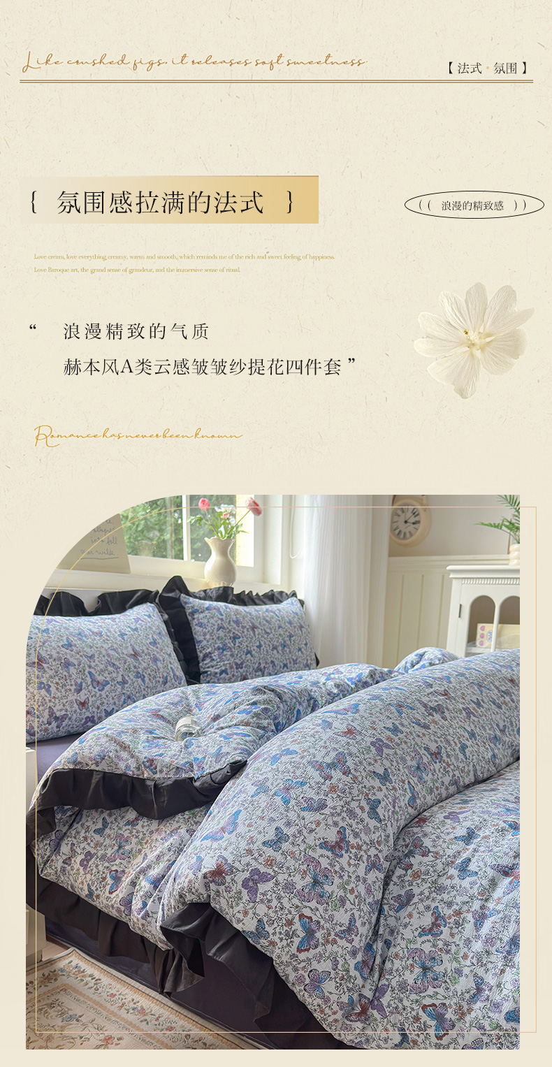 当前位置: 91家纺网 > 商品网购 > 床品套件 > 四件套 > 其它四件套 > 喜颜 2025新款云感提花皱皱棉爆款花边四件套-赫本风 炫彩蝴蝶
