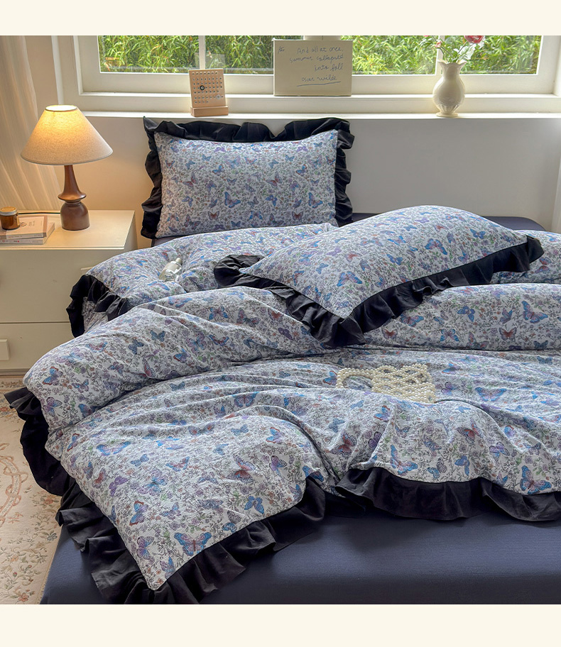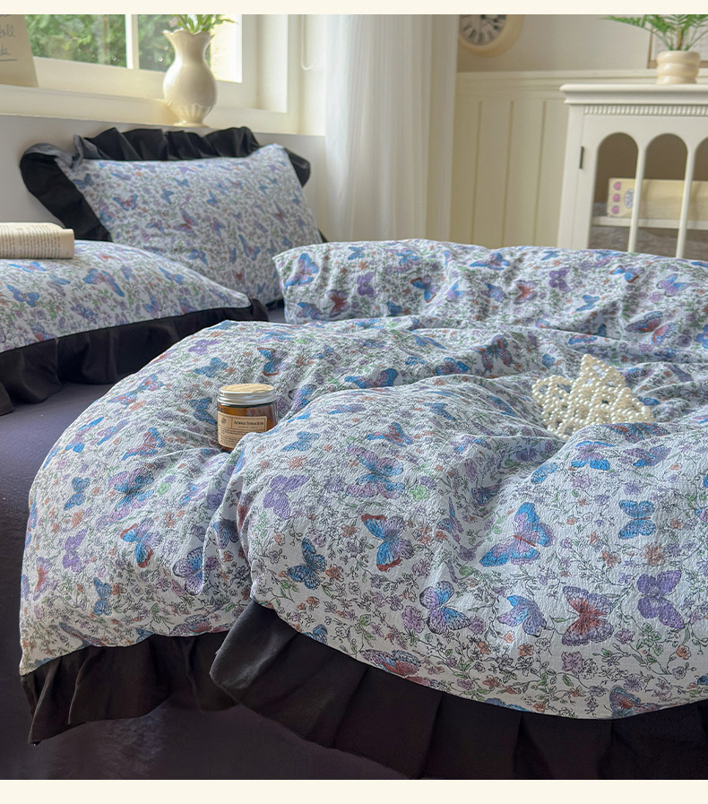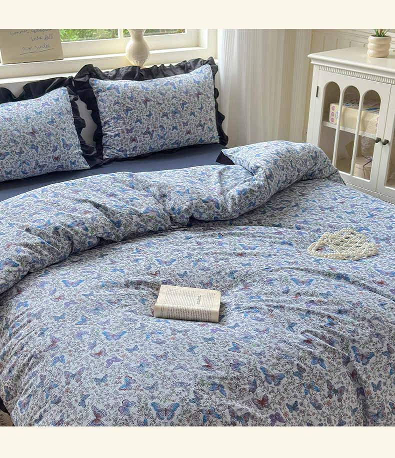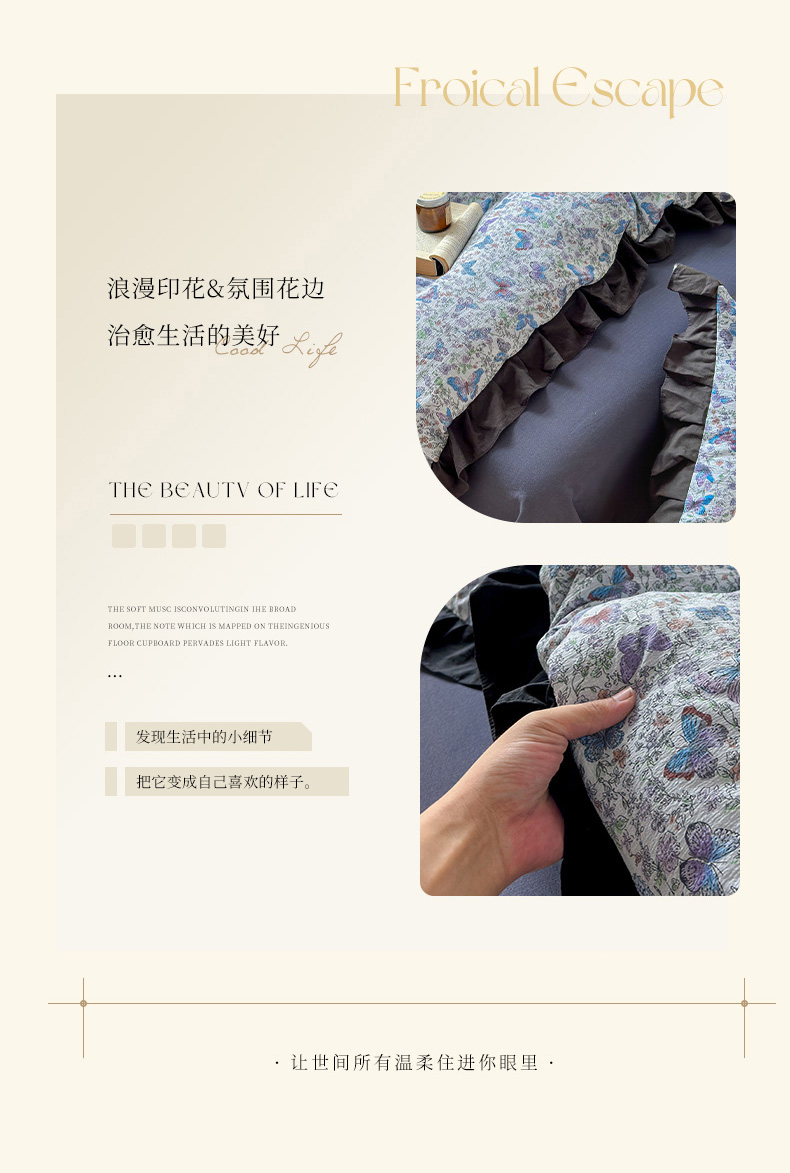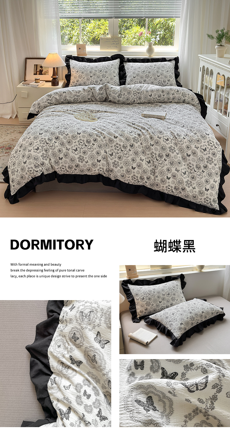 当前位置: 91家纺网 > 商品网购 > 床品套件 > 四件套 > 其它四件套 > 喜颜 2025新款云感提花皱皱棉爆款花边四件套-赫本风 炫彩蝴蝶