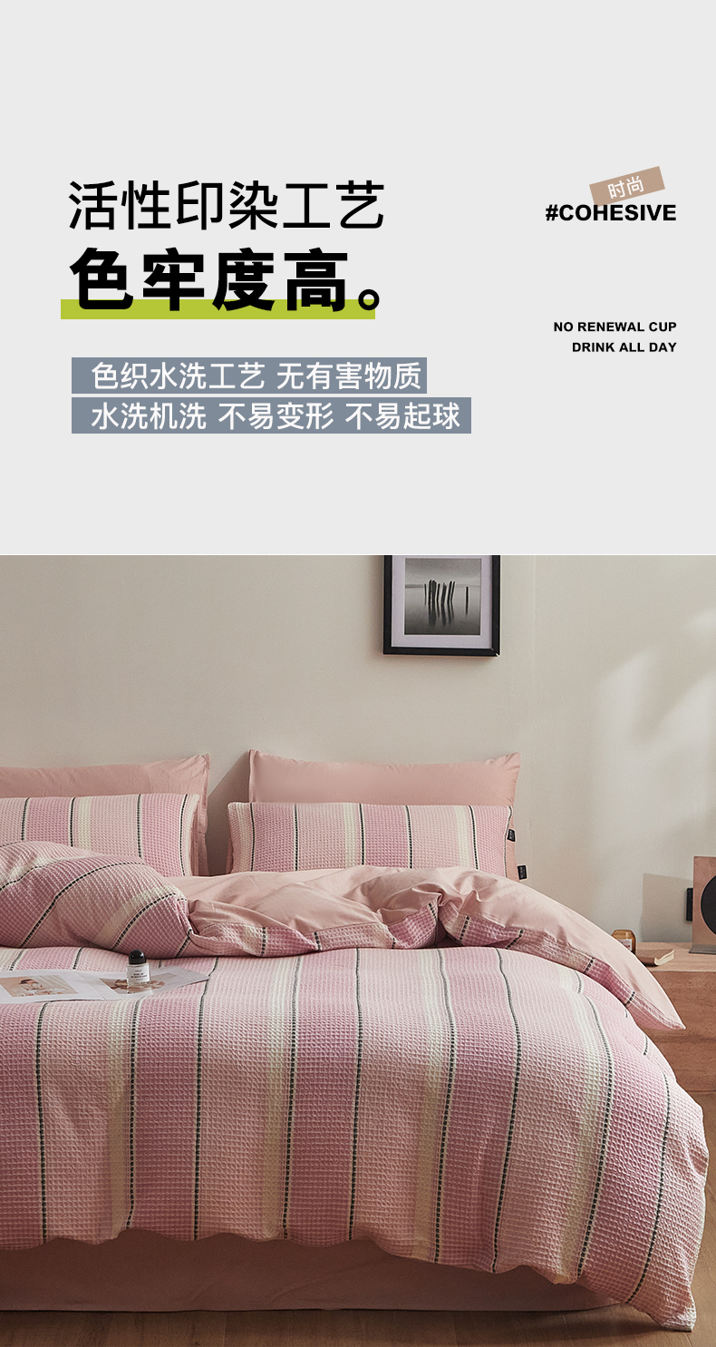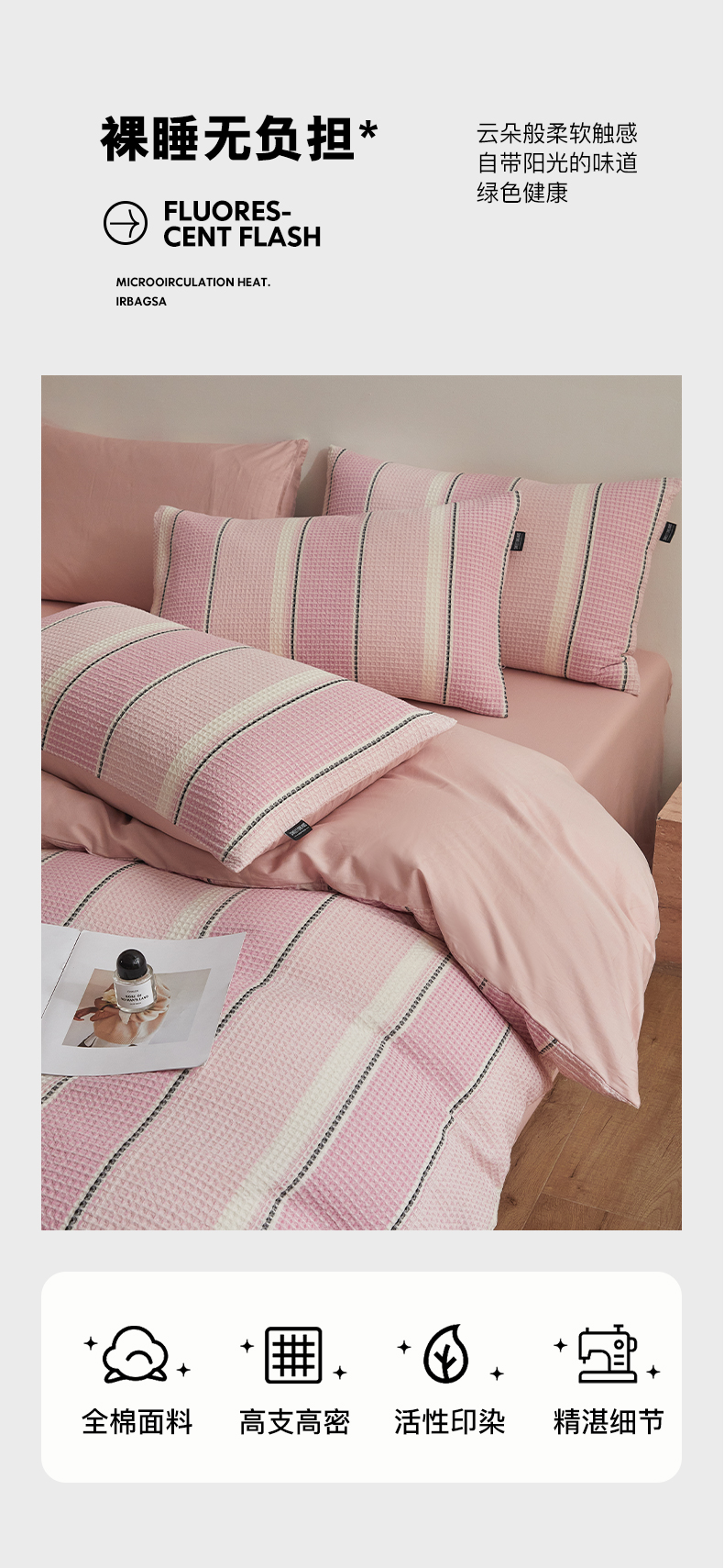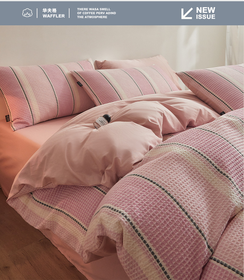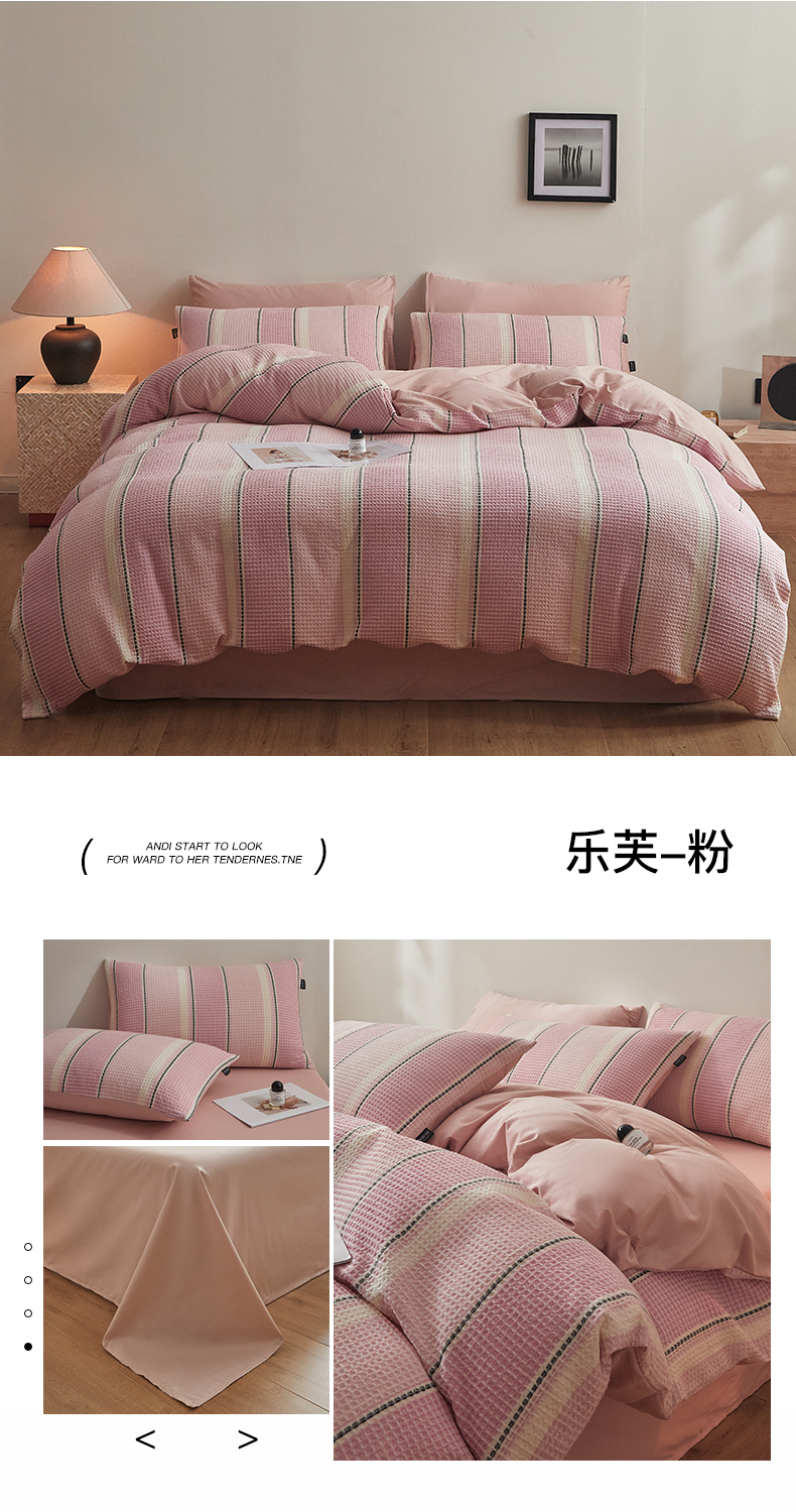 商品名称:格里芬家纺 2025新款全棉色织水洗泡泡纱华夫格四件套-乐芙 乐芙-粉