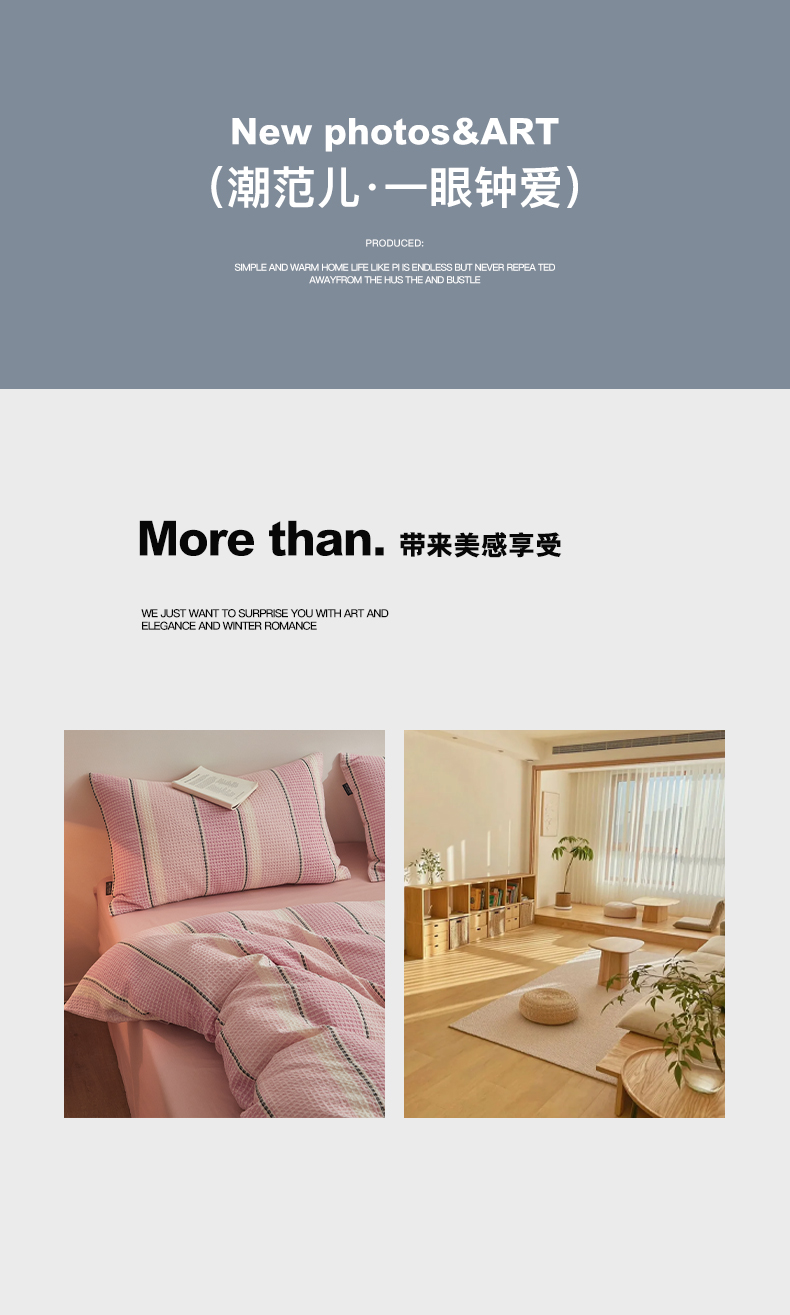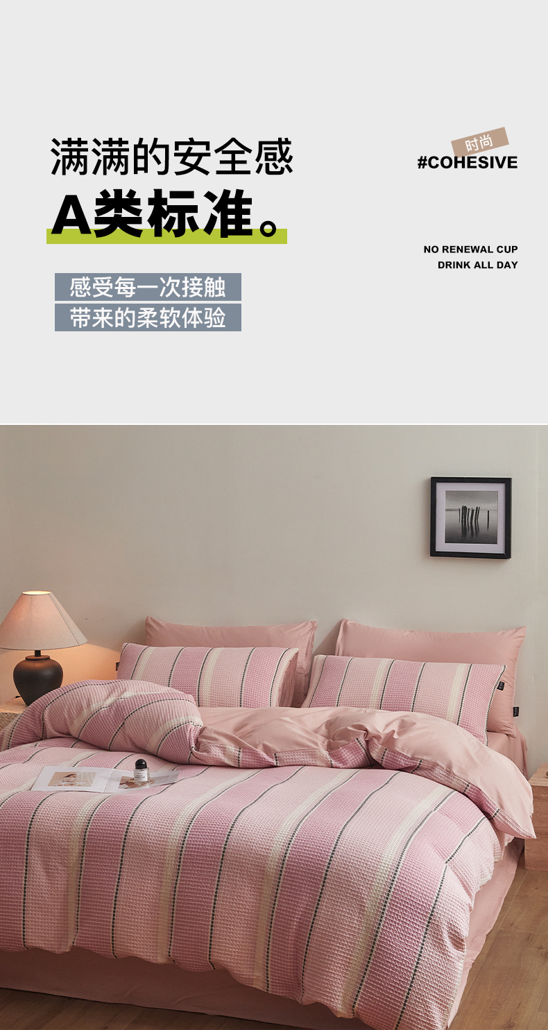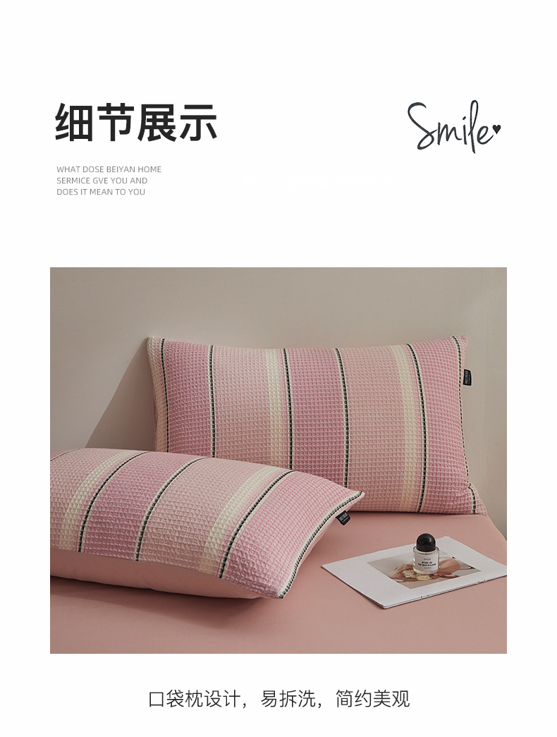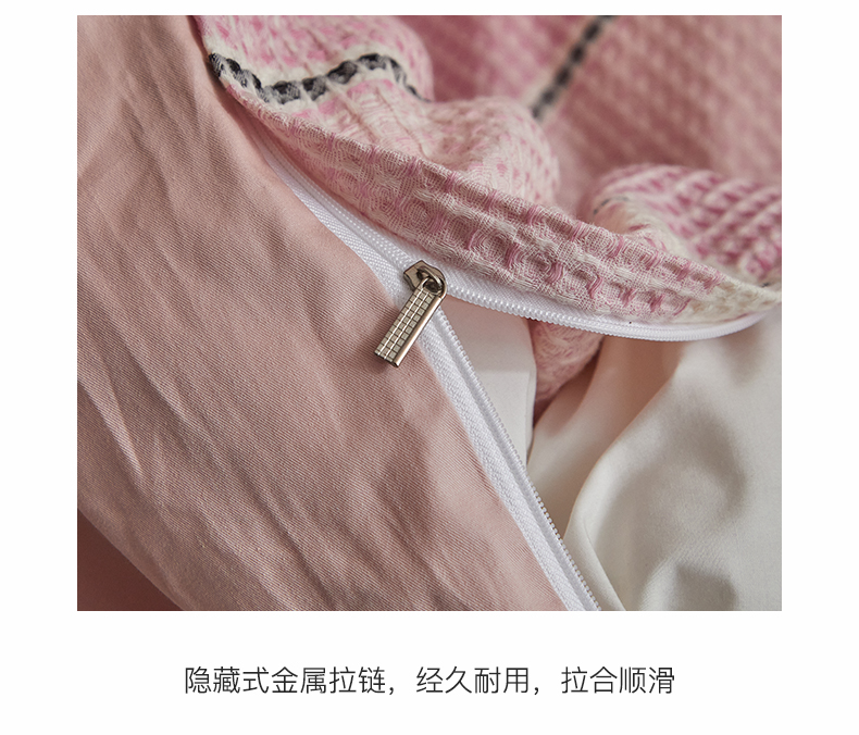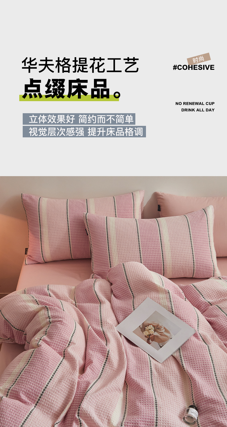 商品名称:格里芬家纺 2025新款全棉色织水洗泡泡纱华夫格四件套-乐芙 乐芙-粉