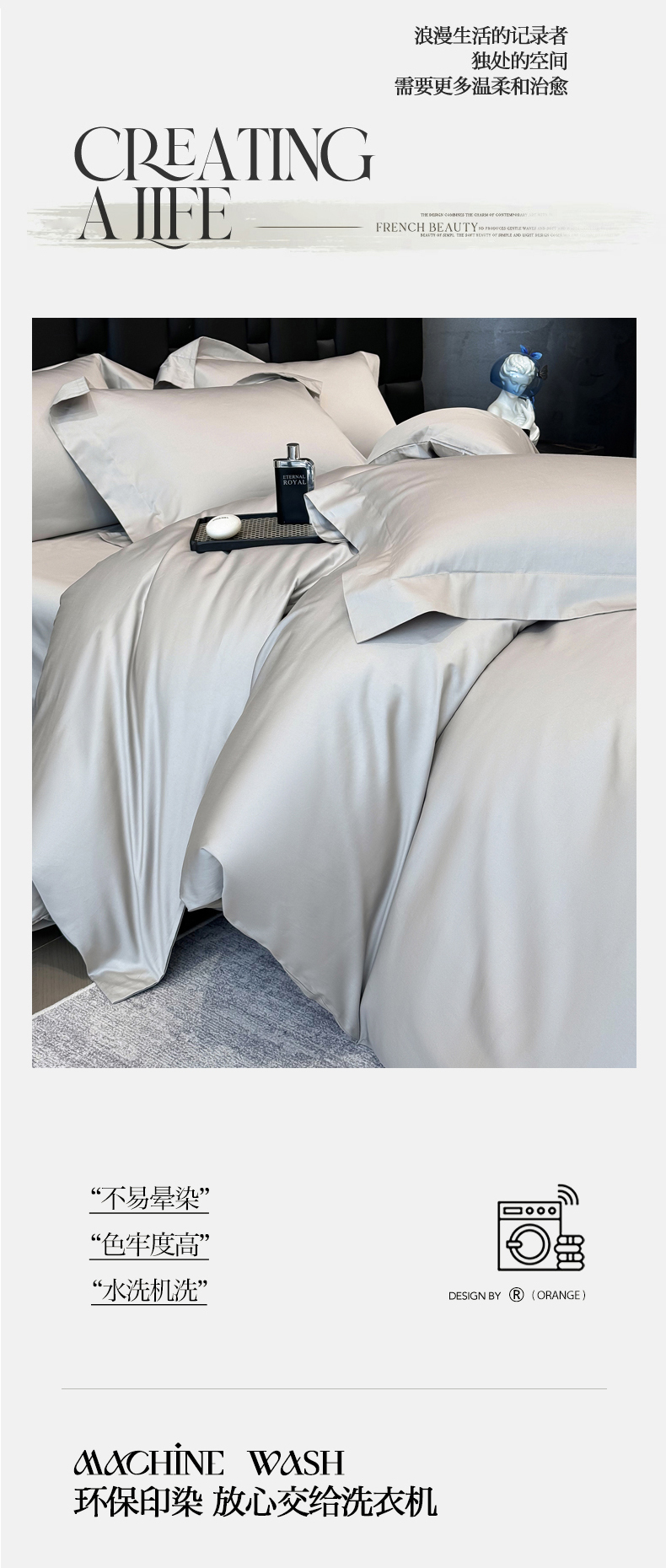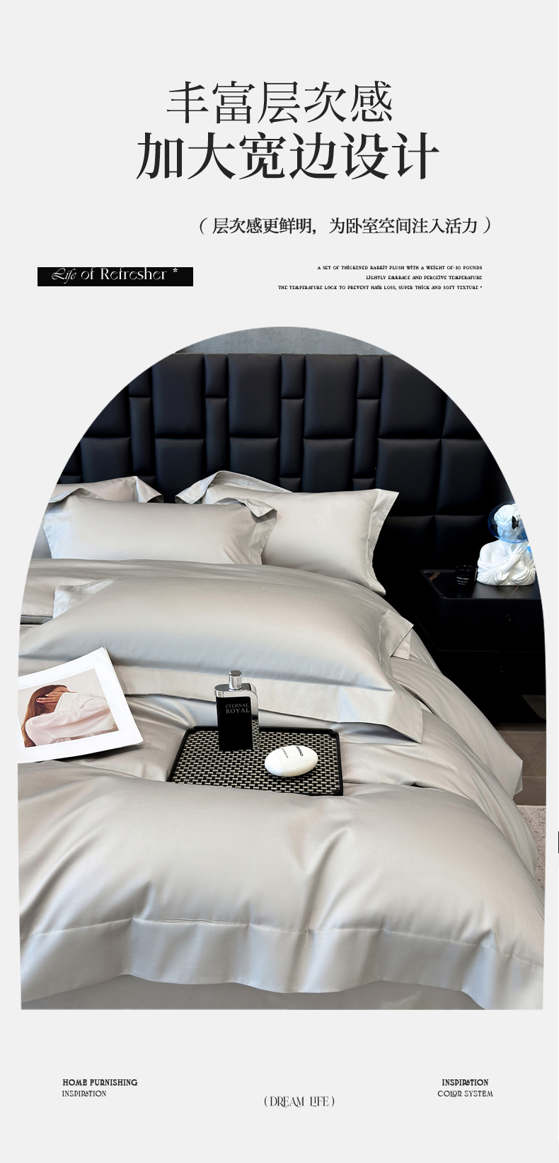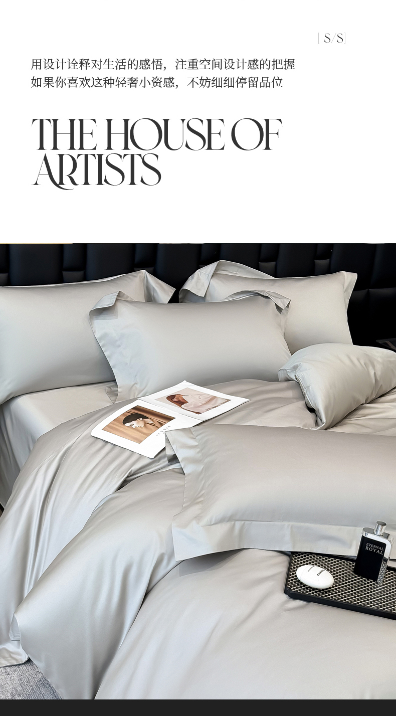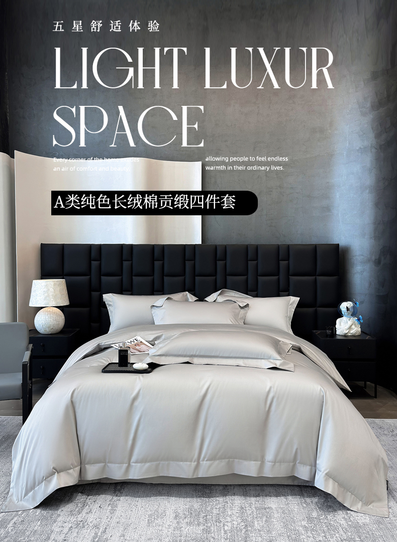 商品名称:星蕴家纺 2025新款A类贡缎纯色长绒棉纯棉全棉四件套-多伦多 多伦多-山灰色
