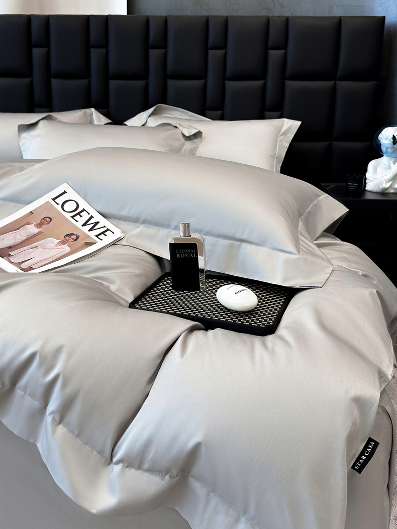 星蕴家纺 2025新款A类贡缎纯色长绒棉纯棉全棉四件套-多伦多 多伦多-山灰色