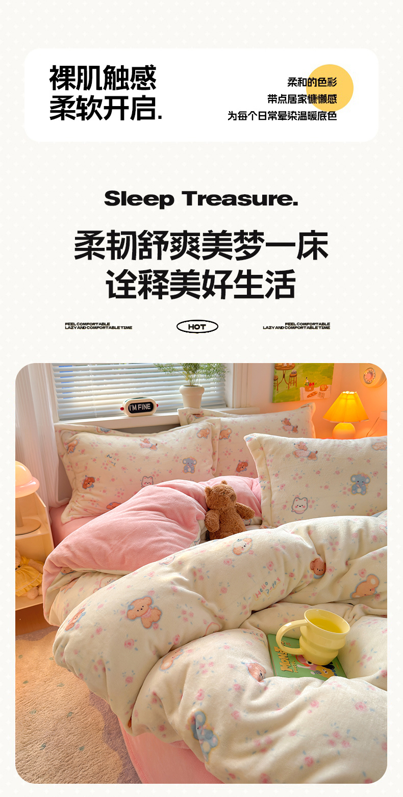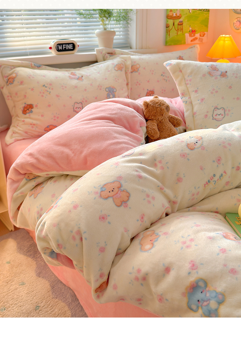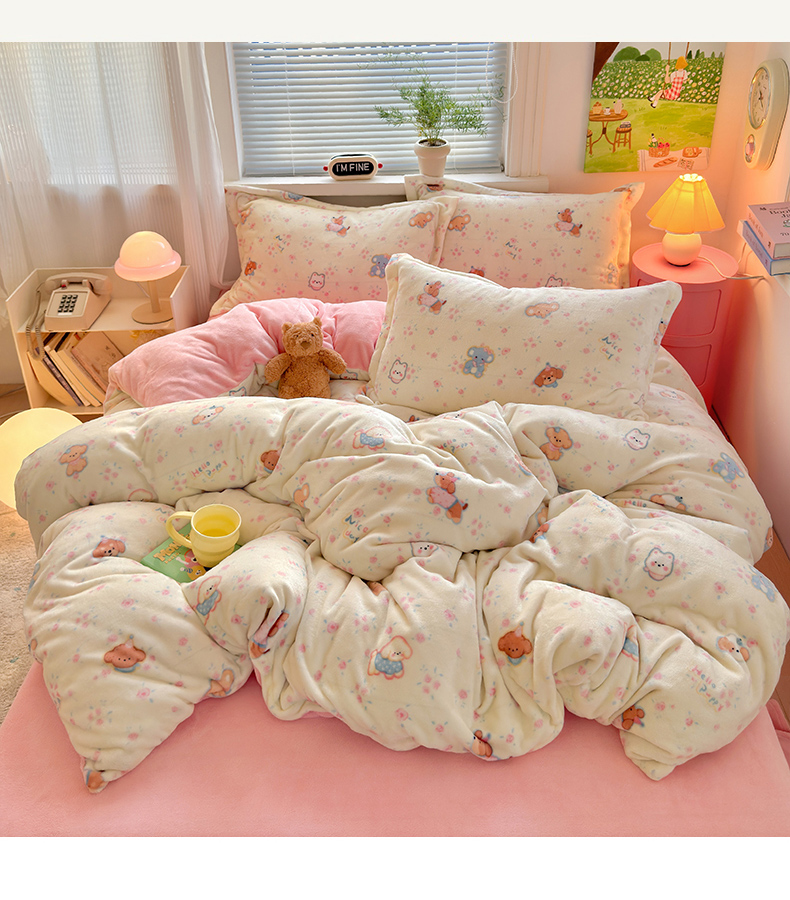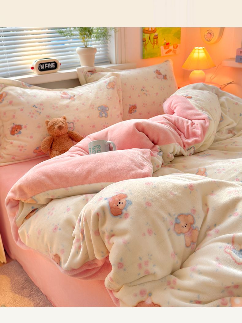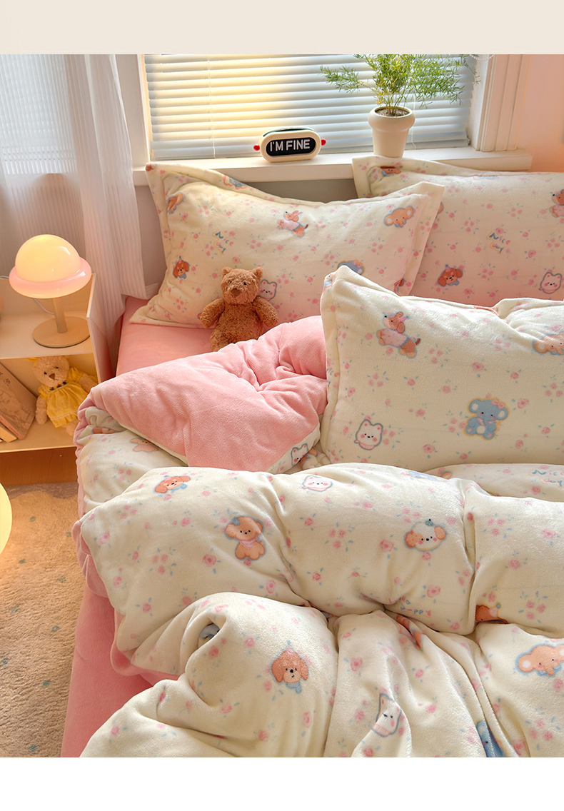 当前位置: 91家纺网 > 商品网购 > 床品套件 > 四件套 > 牛奶绒四件套 > 铭宣 2025新款高克重牛奶绒印花保暖四件套床单床笠单被套款 甜樱萌宠