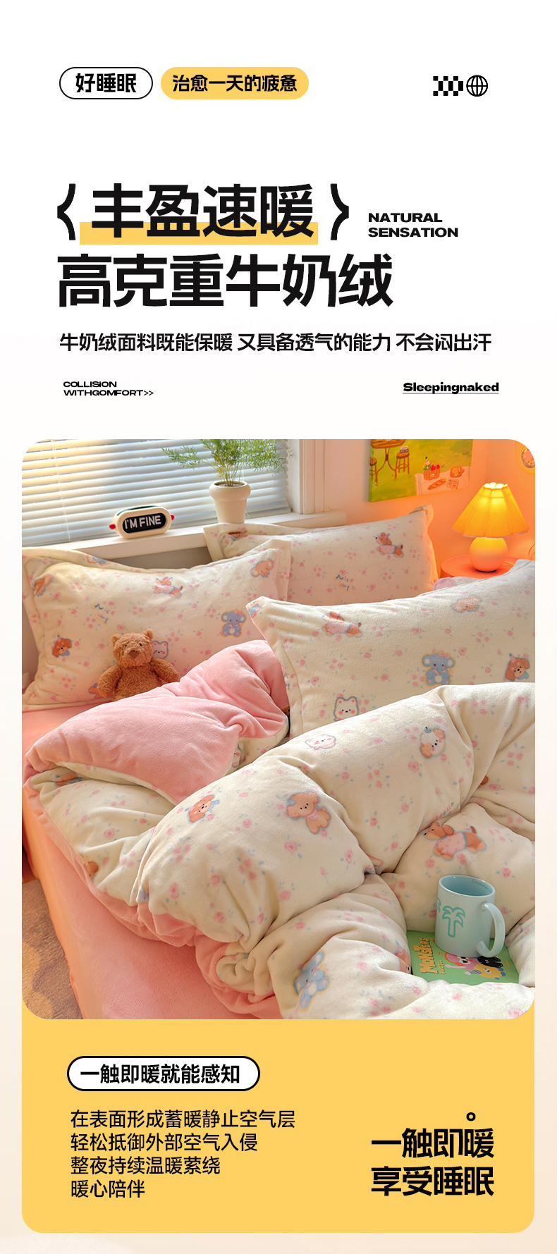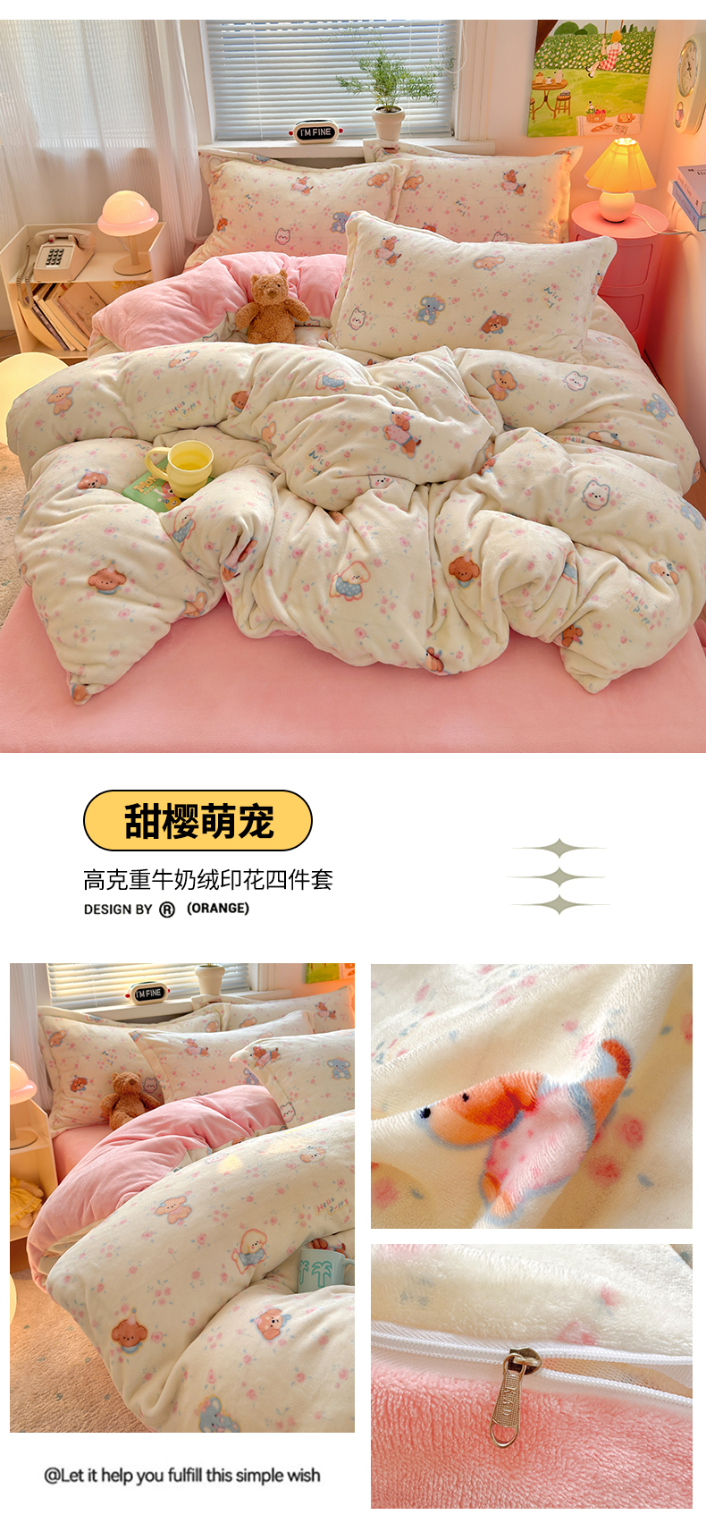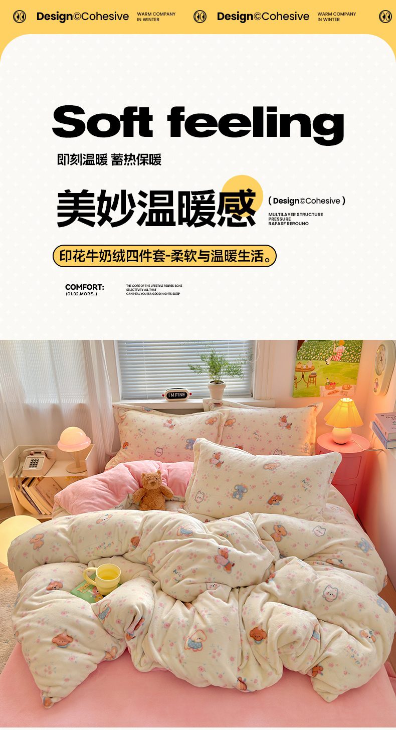 当前位置: 91家纺网 > 商品网购 > 床品套件 > 四件套 > 牛奶绒四件套 > 铭宣 2025新款高克重牛奶绒印花保暖四件套床单床笠单被套款 甜樱萌宠