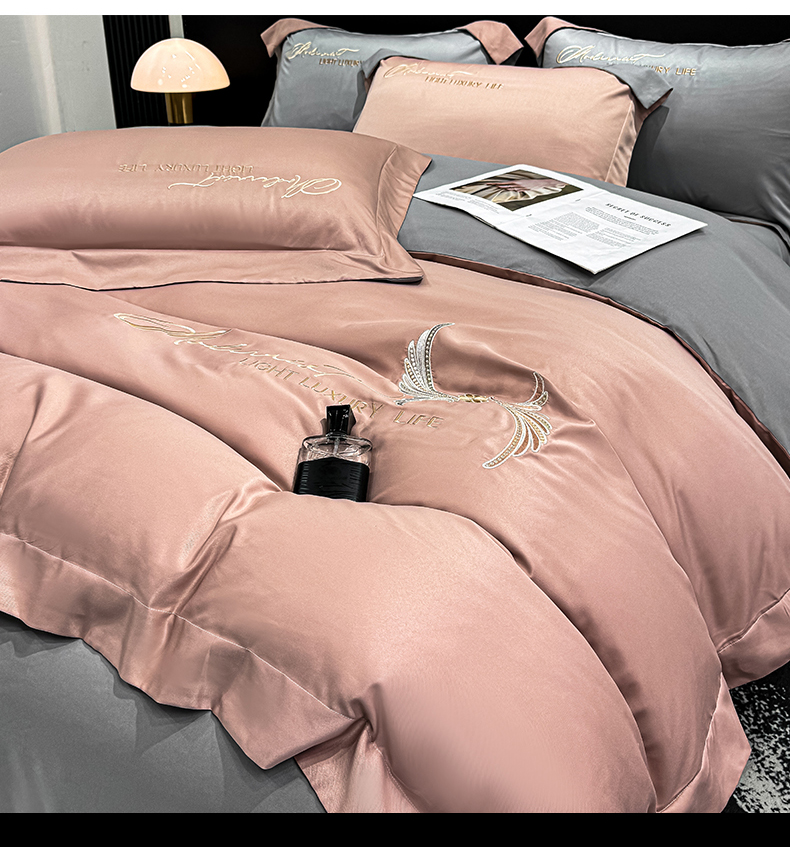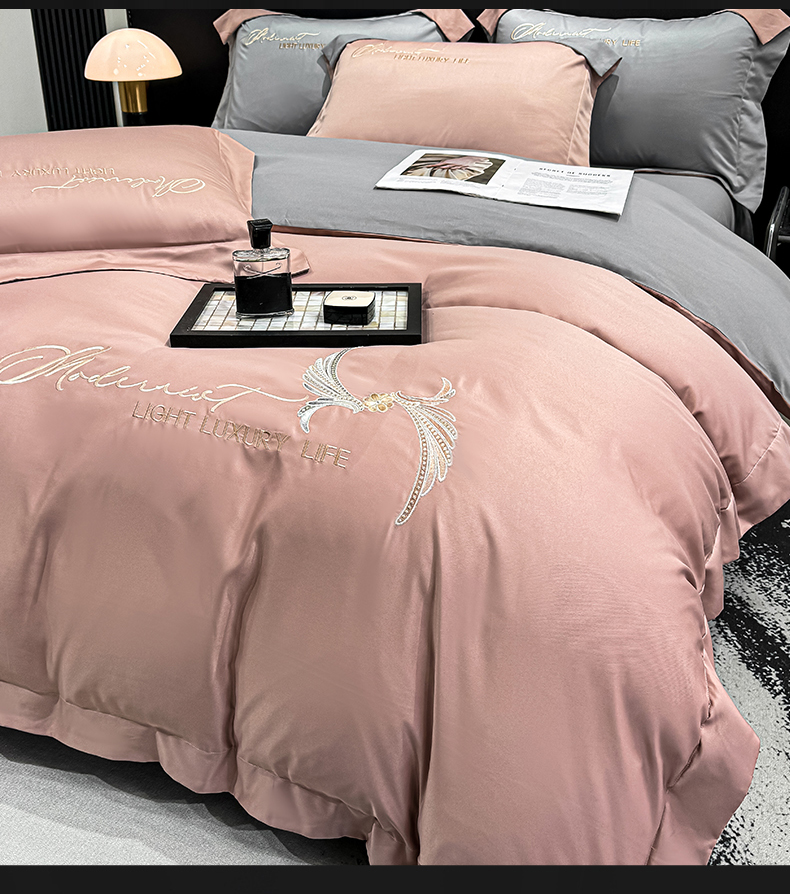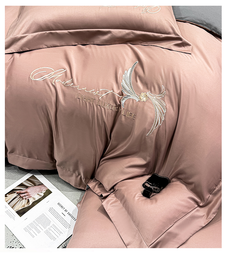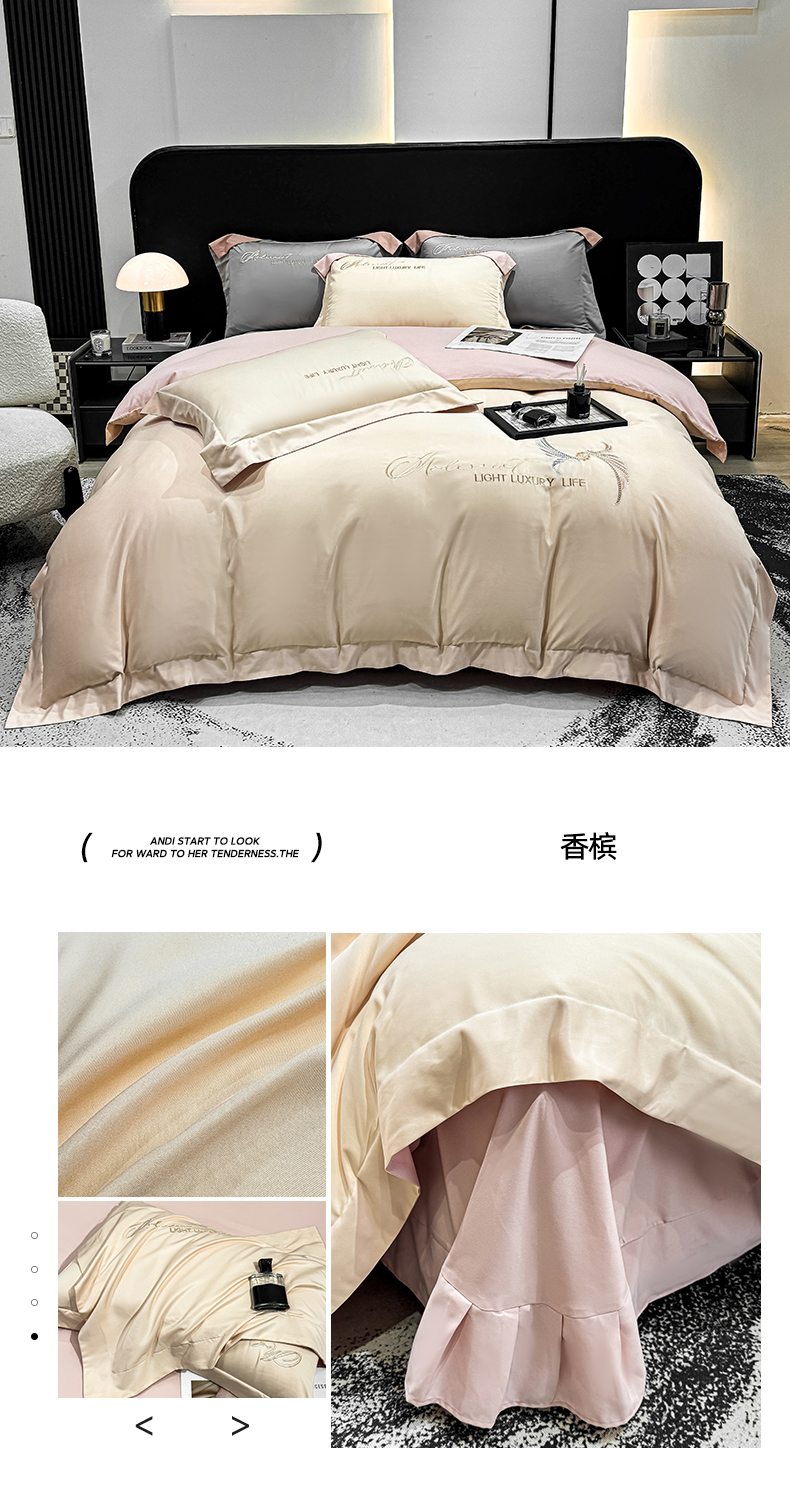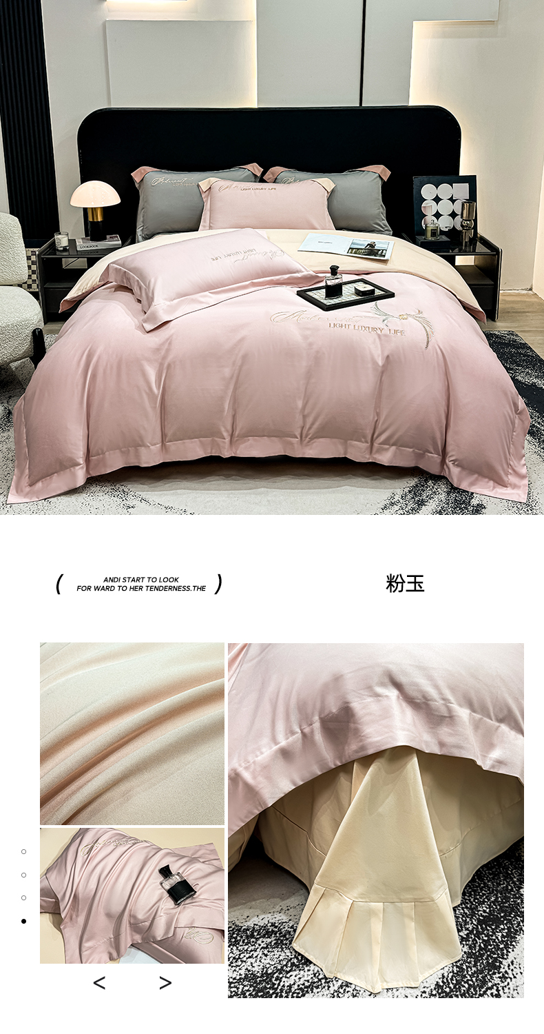 商品名称:悦织湾家纺 亲肤120克水洗棉磨毛刺绣纯色四件套2025新款轻奢韩版公主风精致床上用品绣花4件套 宽境豆沙