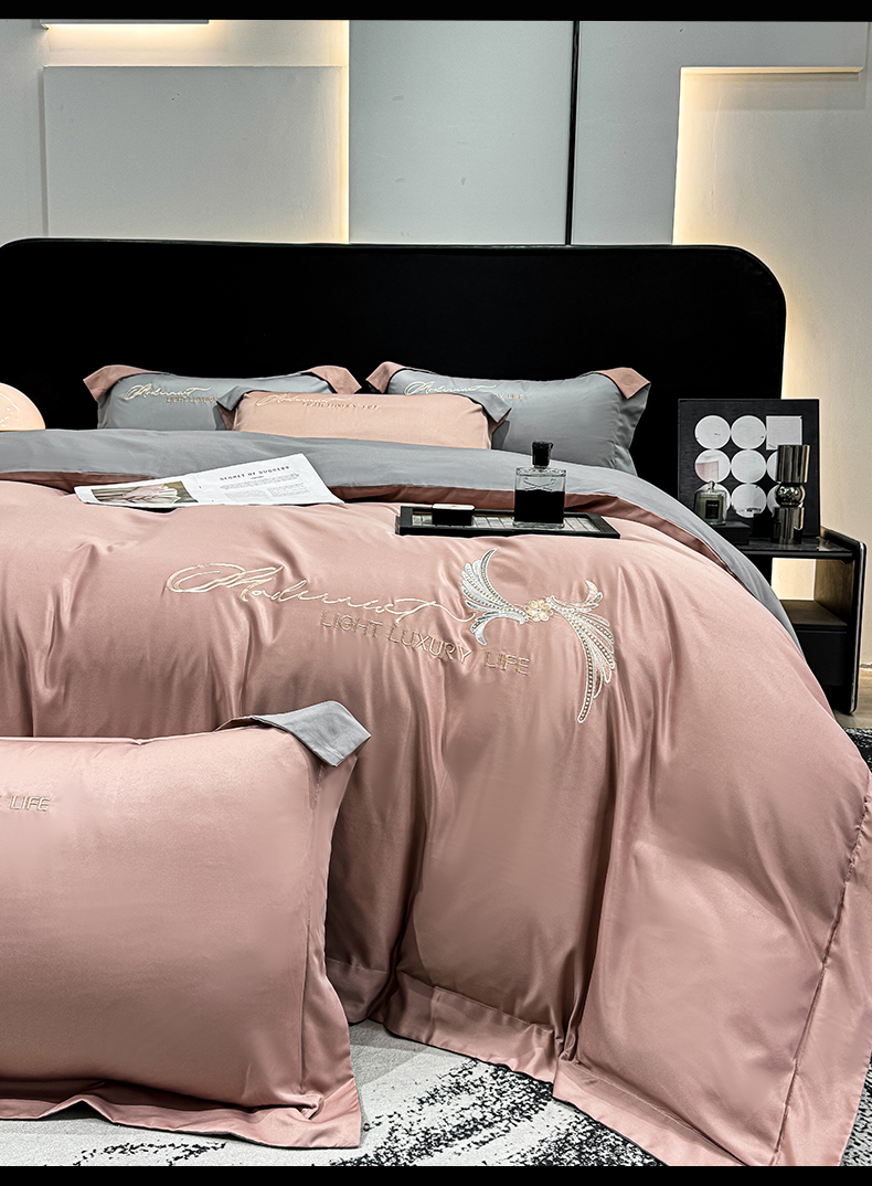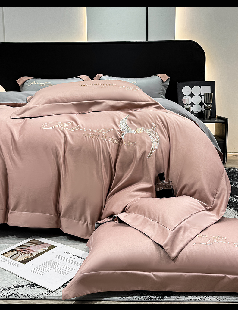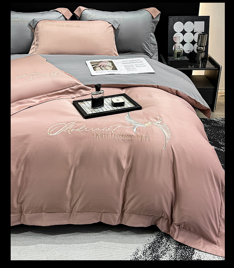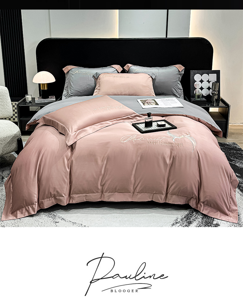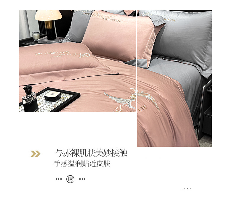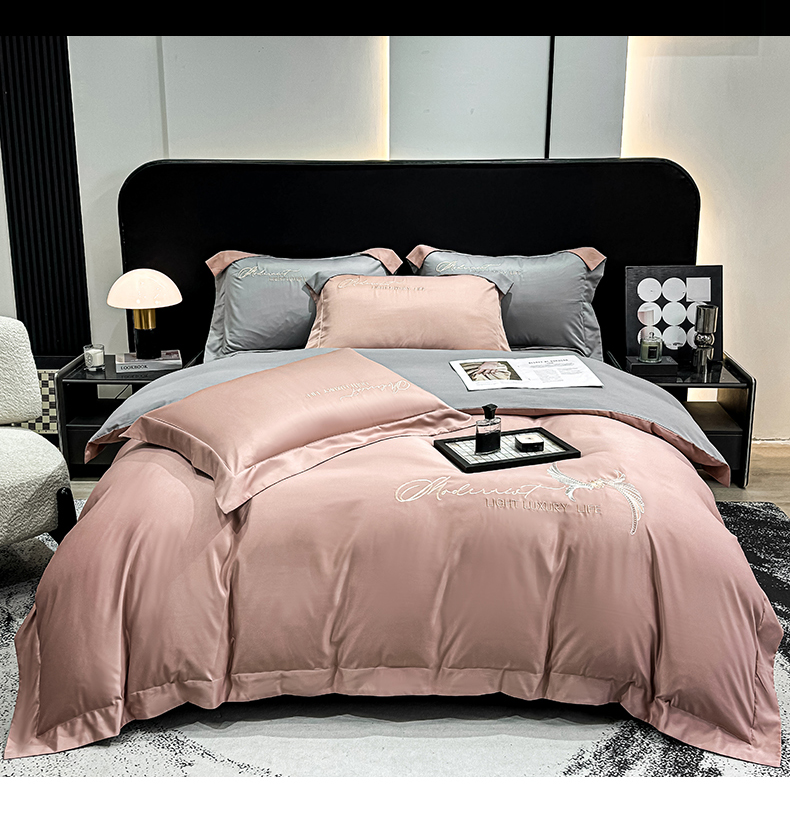 商品名称:悦织湾家纺 亲肤120克水洗棉磨毛刺绣纯色四件套2025新款轻奢韩版公主风精致床上用品绣花4件套 宽境豆沙