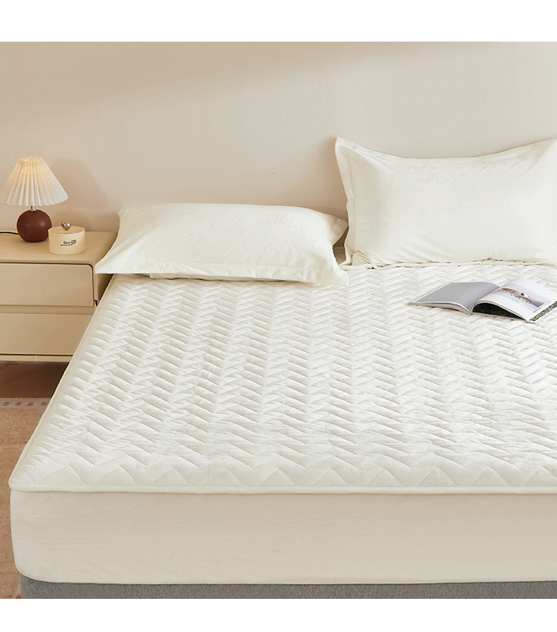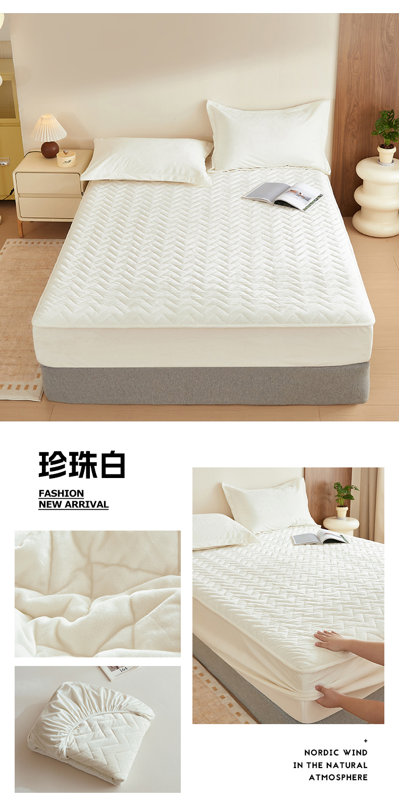 (总)寝柔家纺 2025新款冬季纯色消光加厚牛奶绒夹棉床笠,白色,藏青,粉色,灰色,绿色,驼色