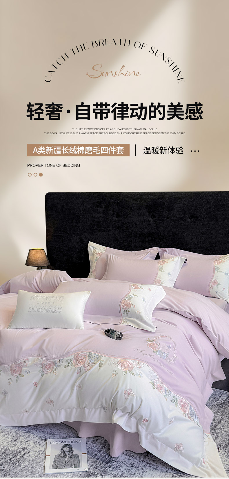 当前位置: 91家纺网 > 商品网购 > 床品套件 > 四件套 > 其它四件套 > 爱妮菲家纺 2025新款直播爆款A类加厚保暖全棉纯棉磨毛四件套纯棉重工刺绣被套冬季床上用品 绮影-香芋紫