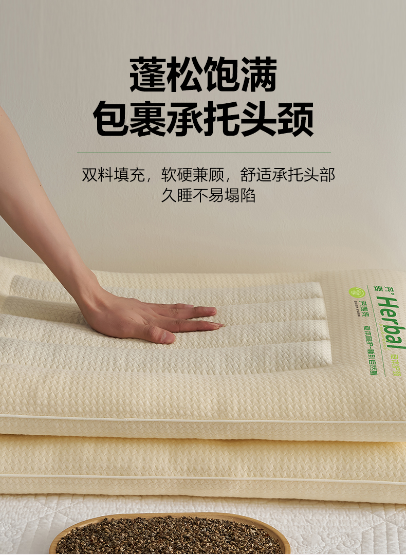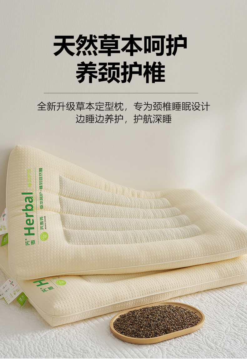 商品名称:乐可 2025新款草本定型枕荞麦学生枕成人枕枕头枕芯 草本定型枕单边-米
