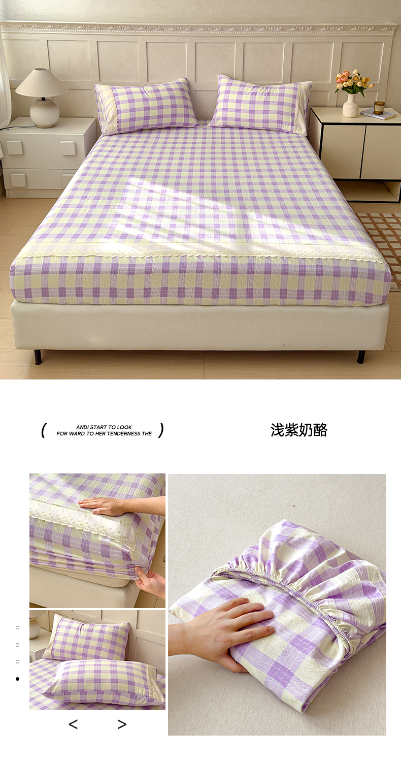 当前位置: 91家纺网 > 商品网购 > 床品套件 > 三件套 > 富阿娜家纺 2026年新款小布袋简约复古花边床笠三件套 雾蓝格序