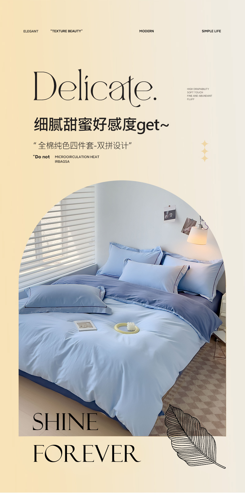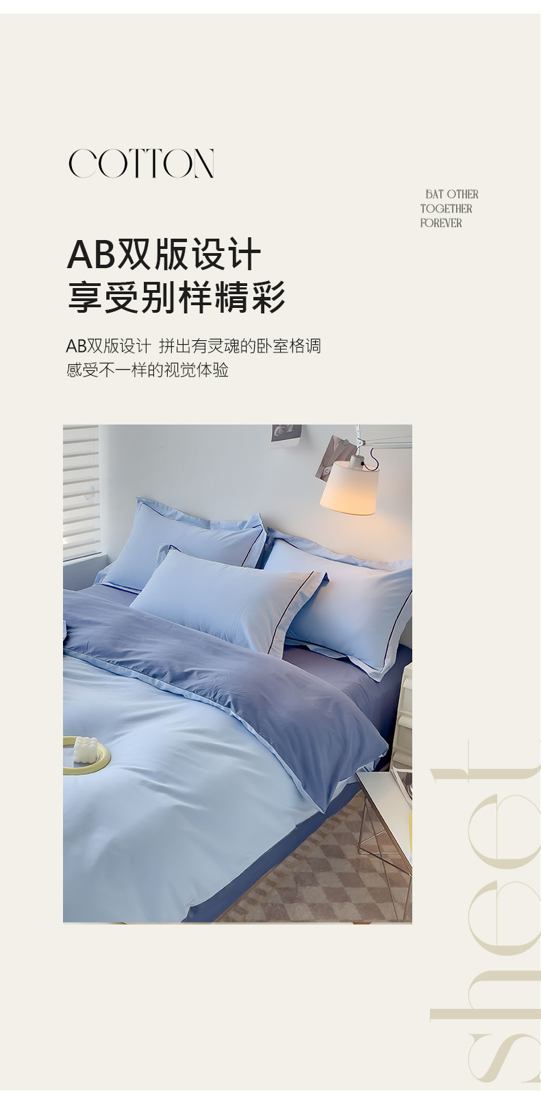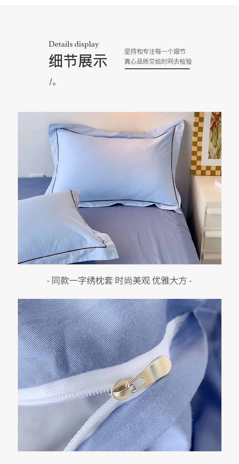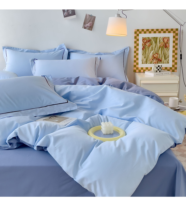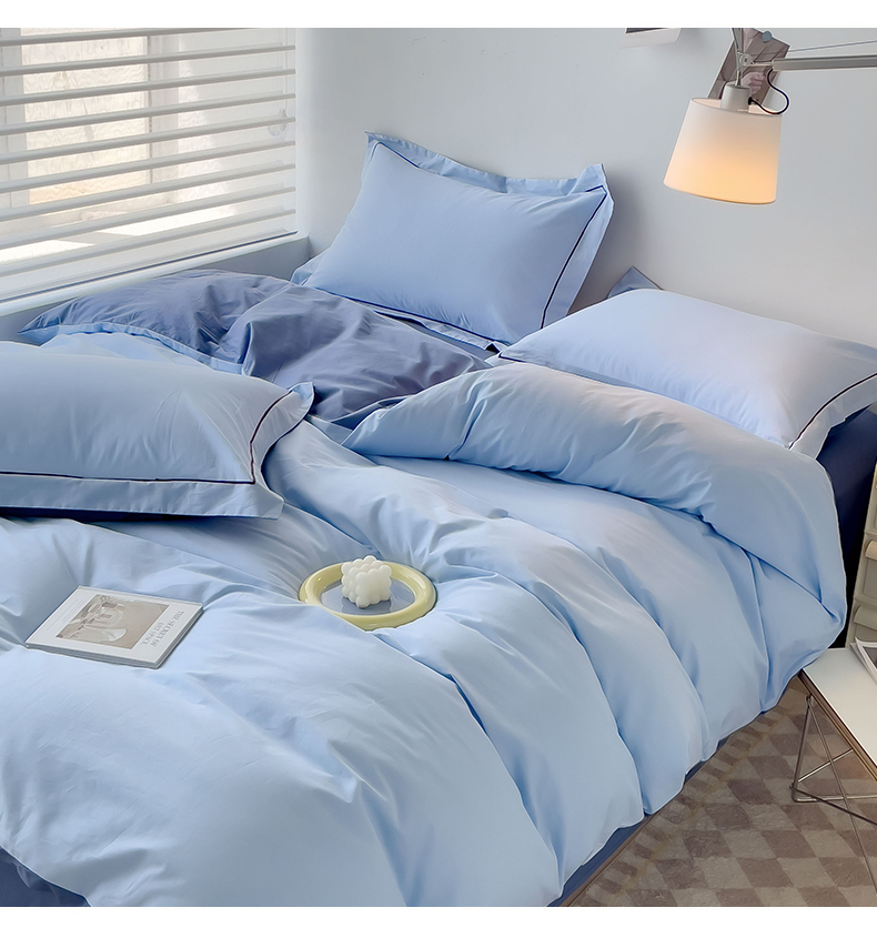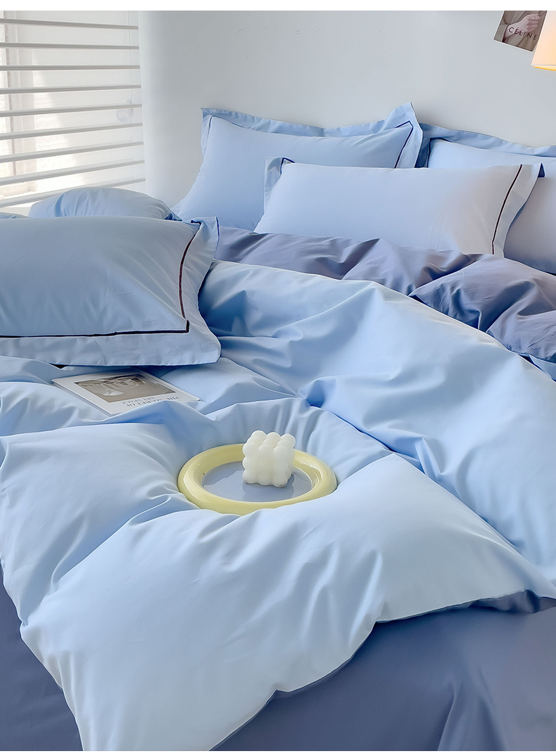 当前位置: 91家纺网 > 商品网购 > 床品套件 > 四件套 > 全棉普通四件套 > 锦彩家居 2026新款40支正宗13372双拼纯色全棉四件套酒店宾馆民宿学生三件套(可定制)标准号的床单是圆角吊边;小号和加大的床单都是直角 天蓝-宾利蓝