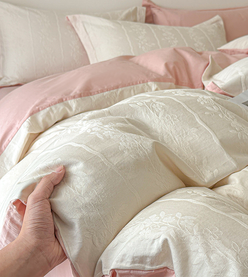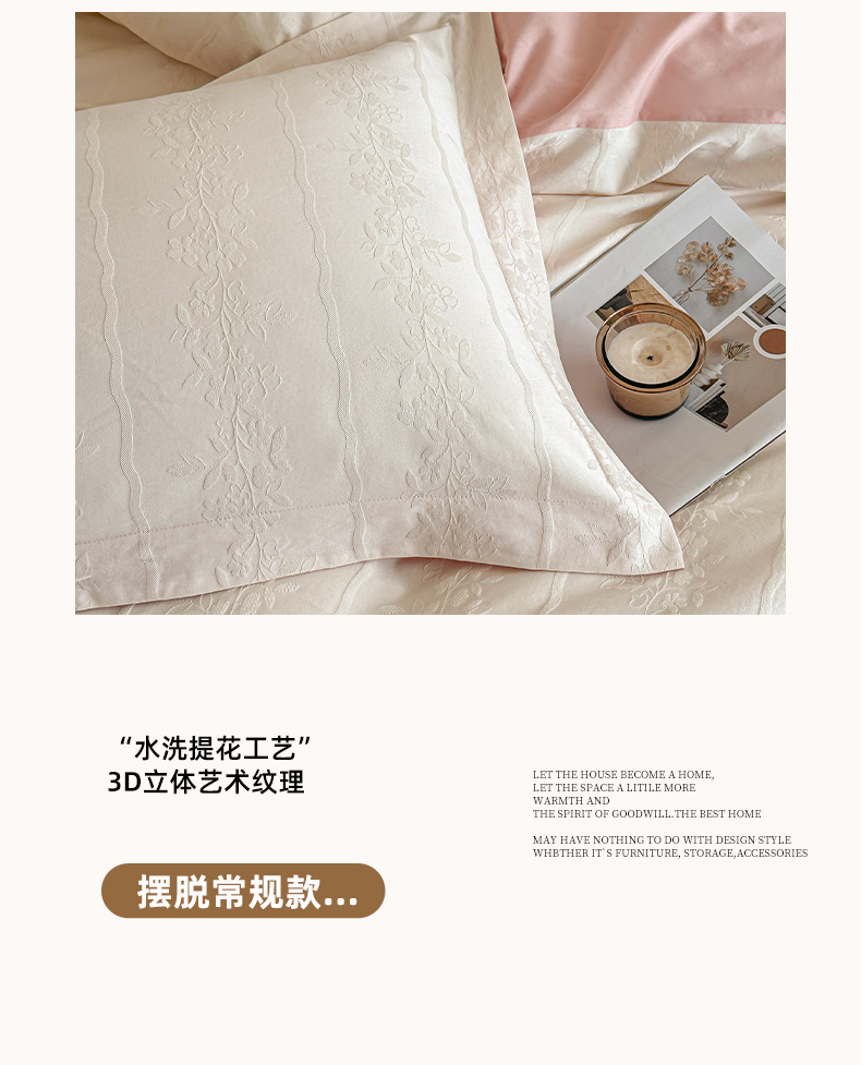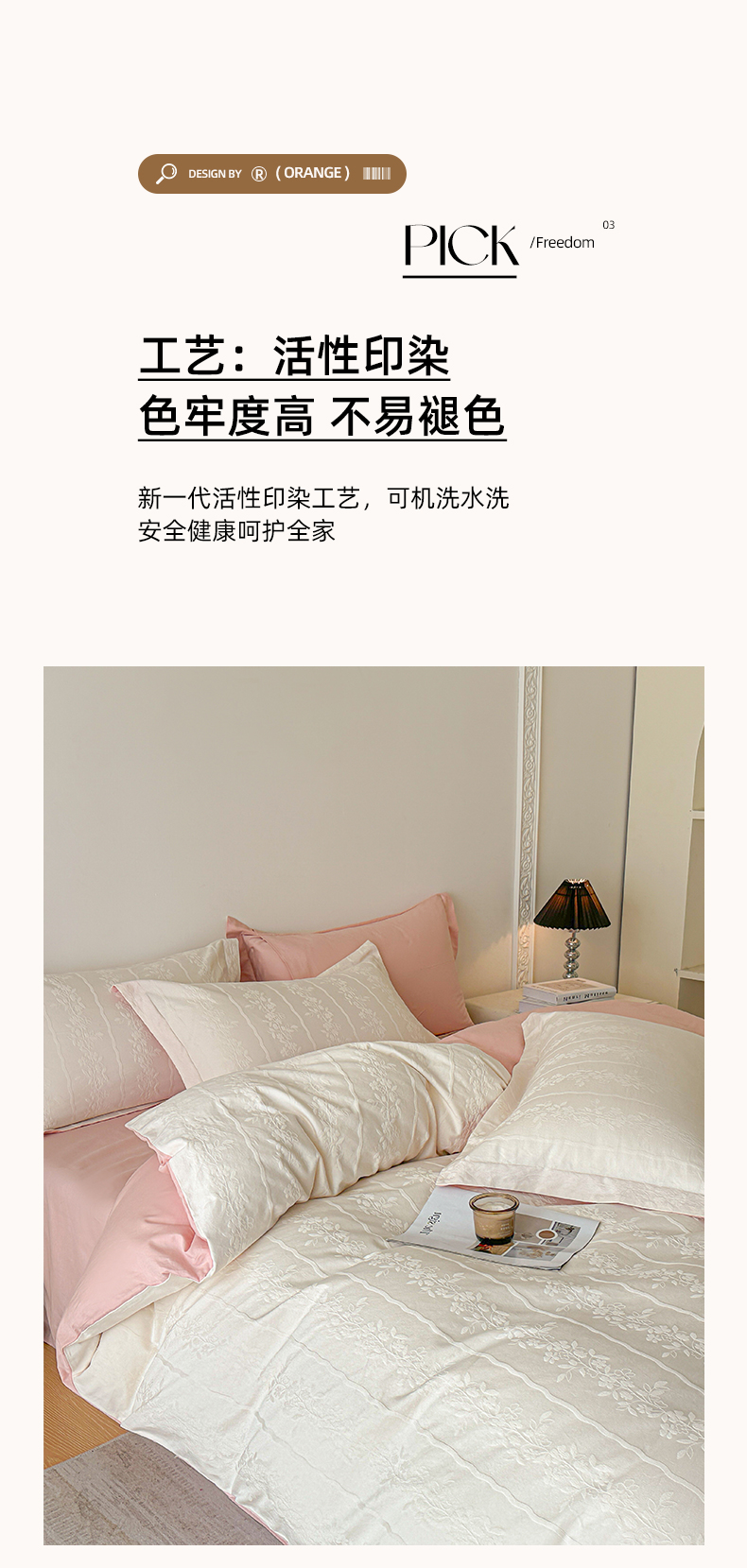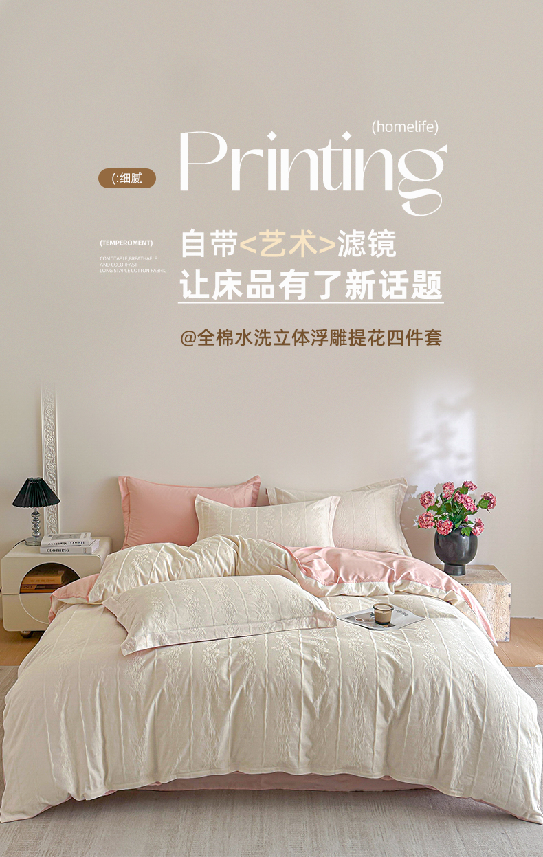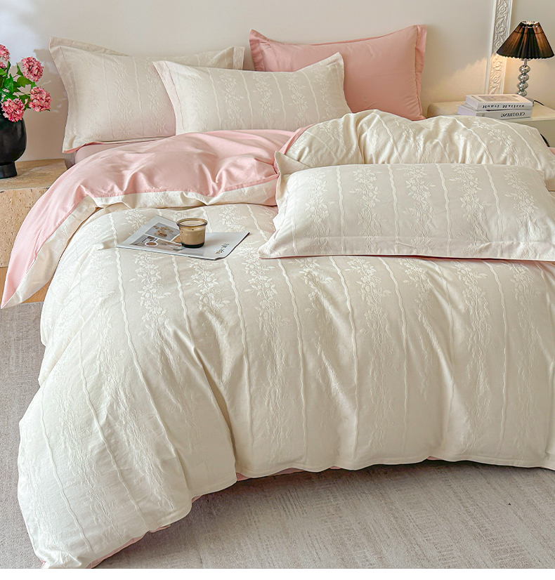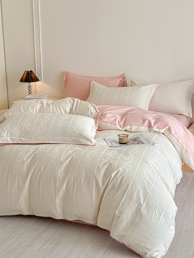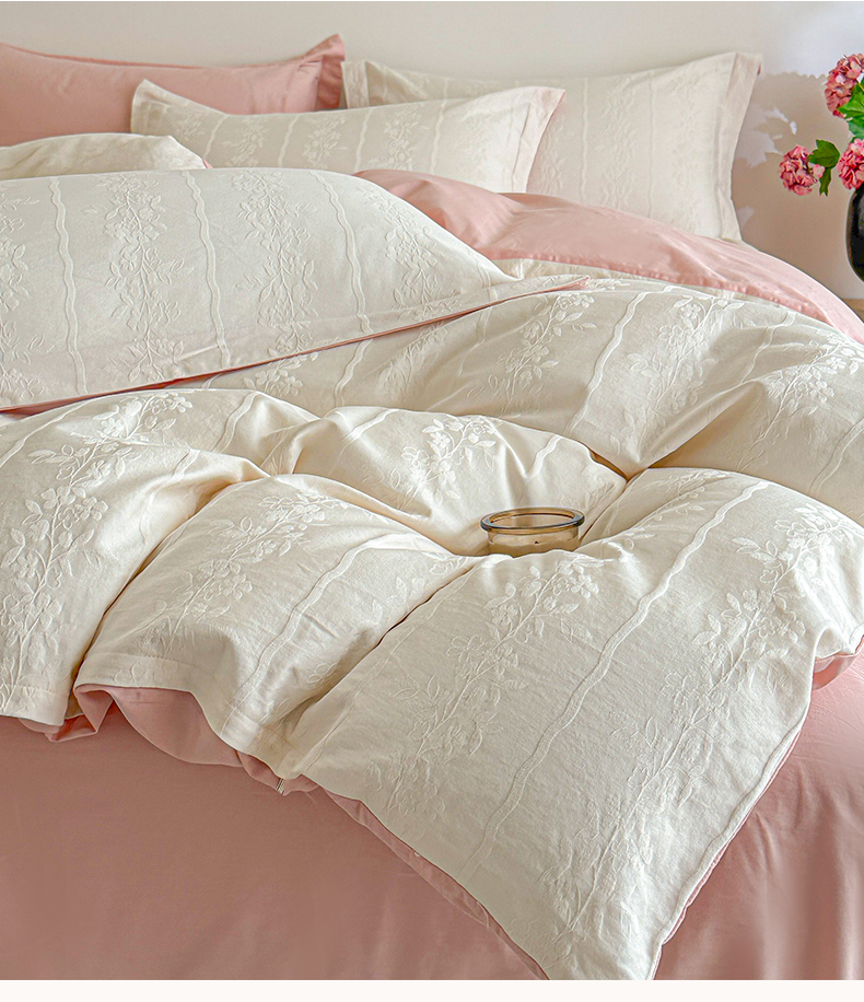 格里芬家纺 2026新款全棉水洗立体浮雕提花纯棉四件套 浪漫情缘-奶昔白