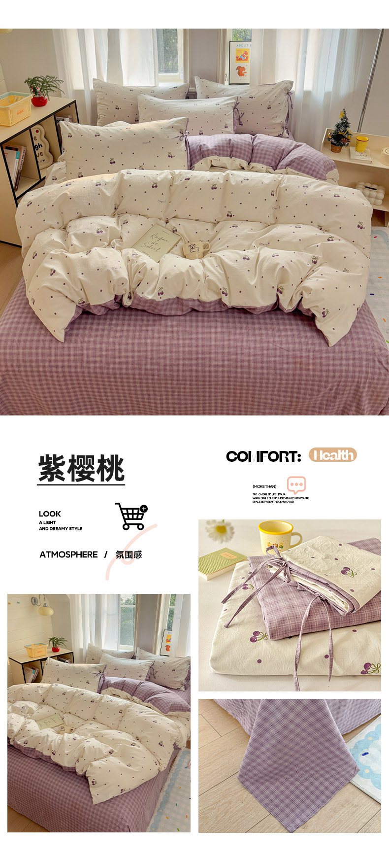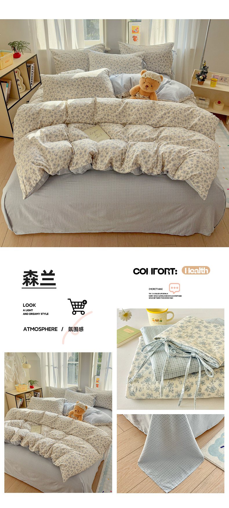 当前位置: 91家纺网 > 商品网购 > 床品套件 > 四件套 > 化纤普通四件套 > 金梦拉家纺 2026新款小清新绑带格纹碎花系列四件套-花园里系列 花园里-翠微花开
