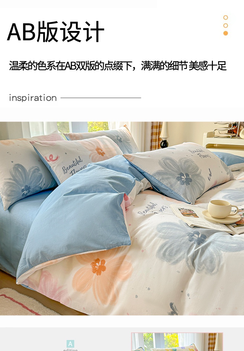 当前位置: 91家纺网 > 商品网购 > 床品套件 > 四件套 > 全棉普通四件套 > 宇彬家纺 2026直播新款13070A类全棉纯棉印花床单床笠款四件套和单被套喷气清新简约(缩水足可定做) 清婉花语