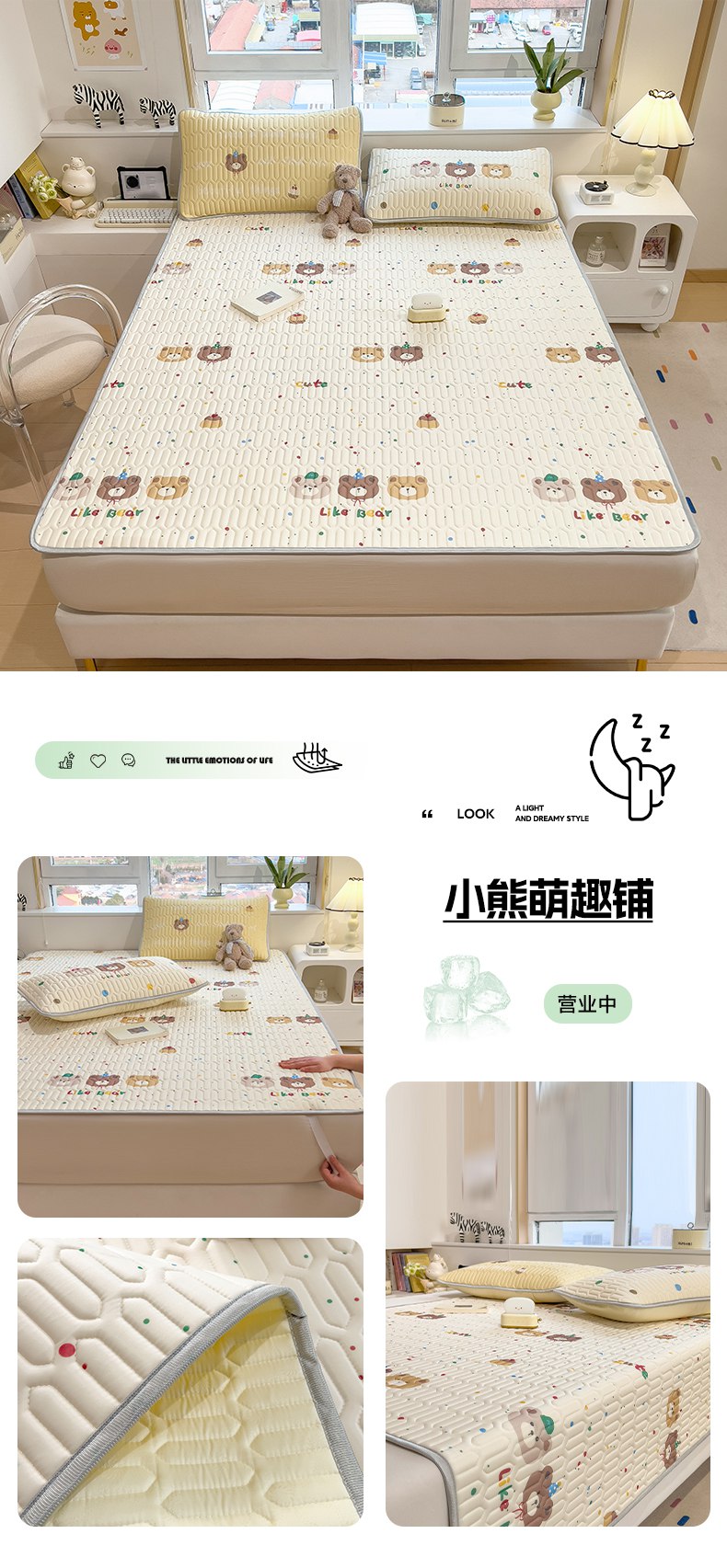 商品名称:摩妮卡 2026新款数码大版小清新乳胶凉席床席款三件套-场景二 盲盒小屋
