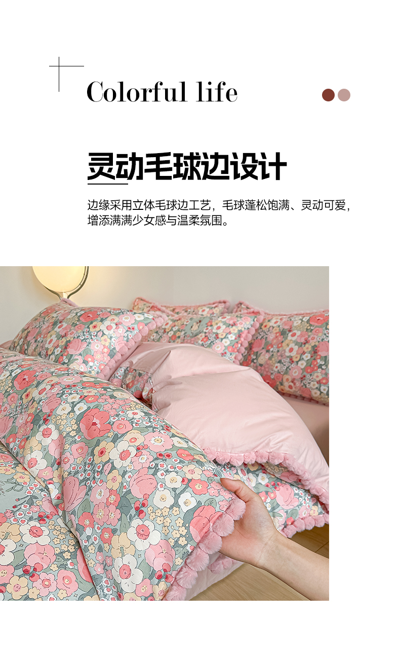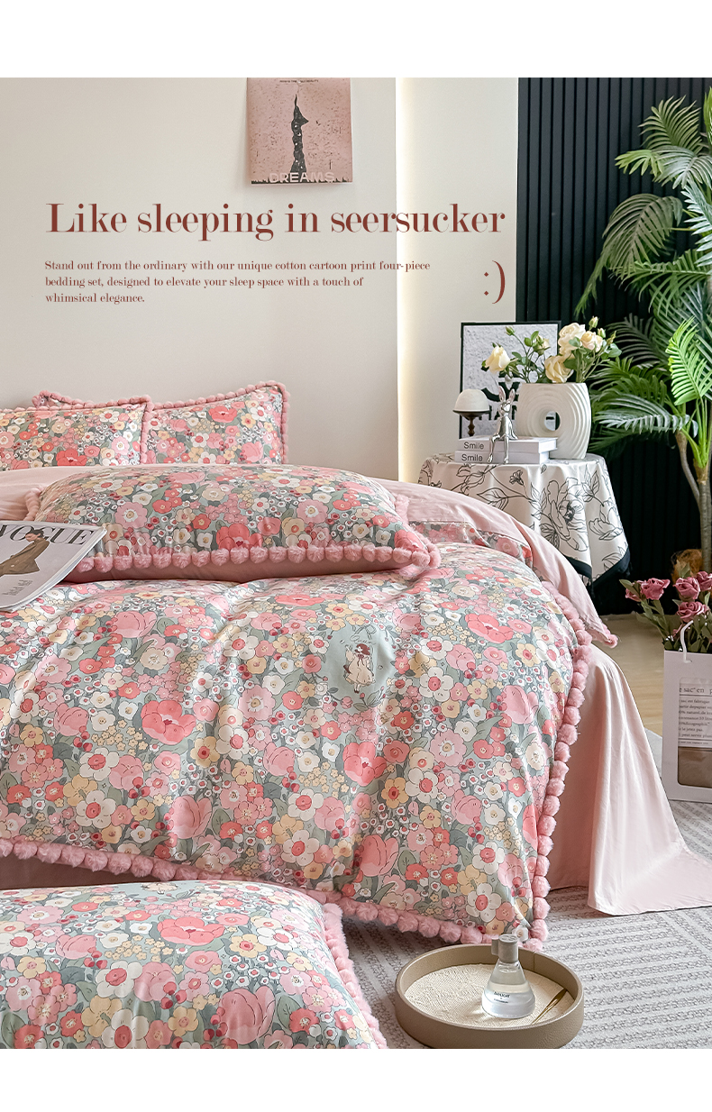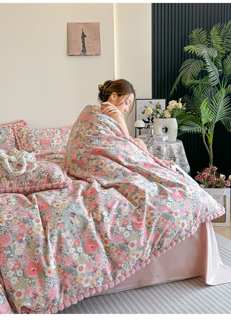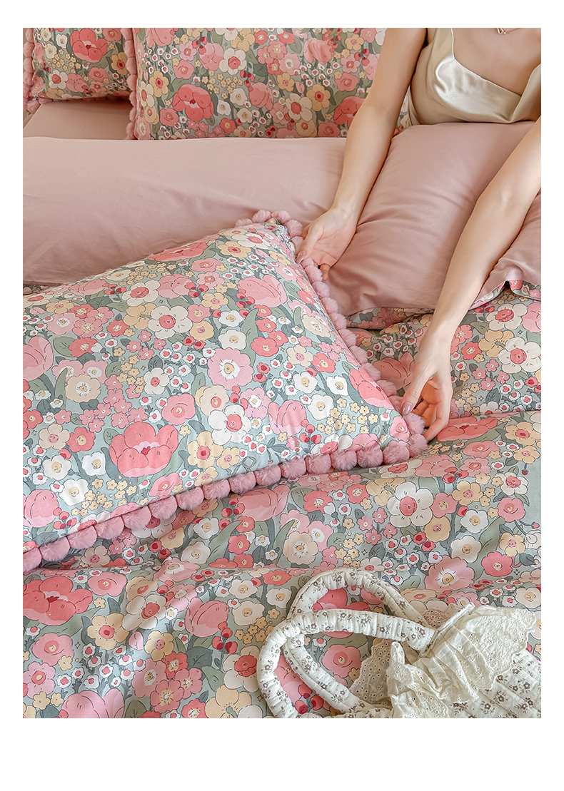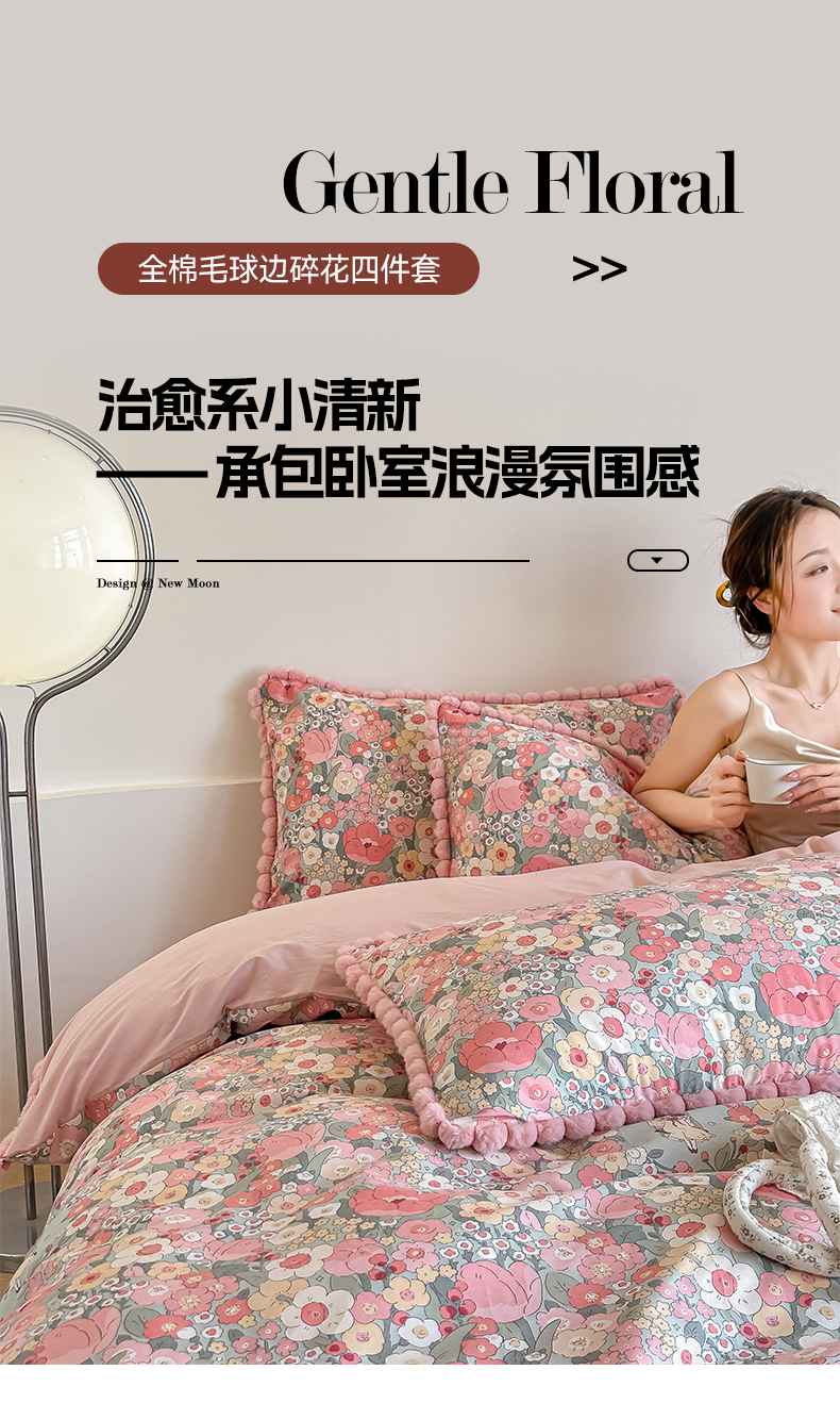 当前位置: 91家纺网 > 商品网购 > 床品套件 > 四件套 > 全棉普通四件套 > 宅家居 2026新款轻奢极简风全棉毛球款40支纯棉13372小清新喷气印花四件套 艾莲娜
