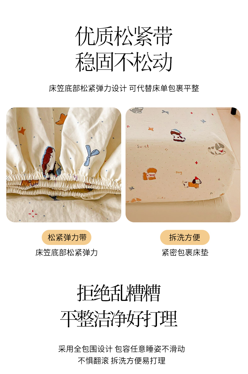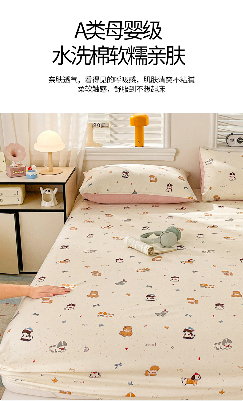 纽缦家纺 2026新款A类105g四件套古法水洗棉单床笠单品床笠床笠单件 幸运狗
