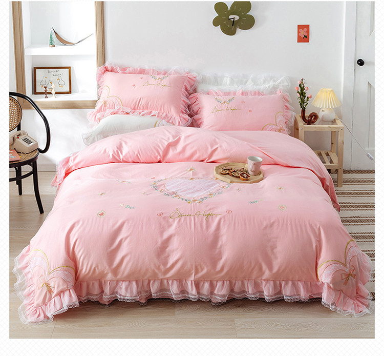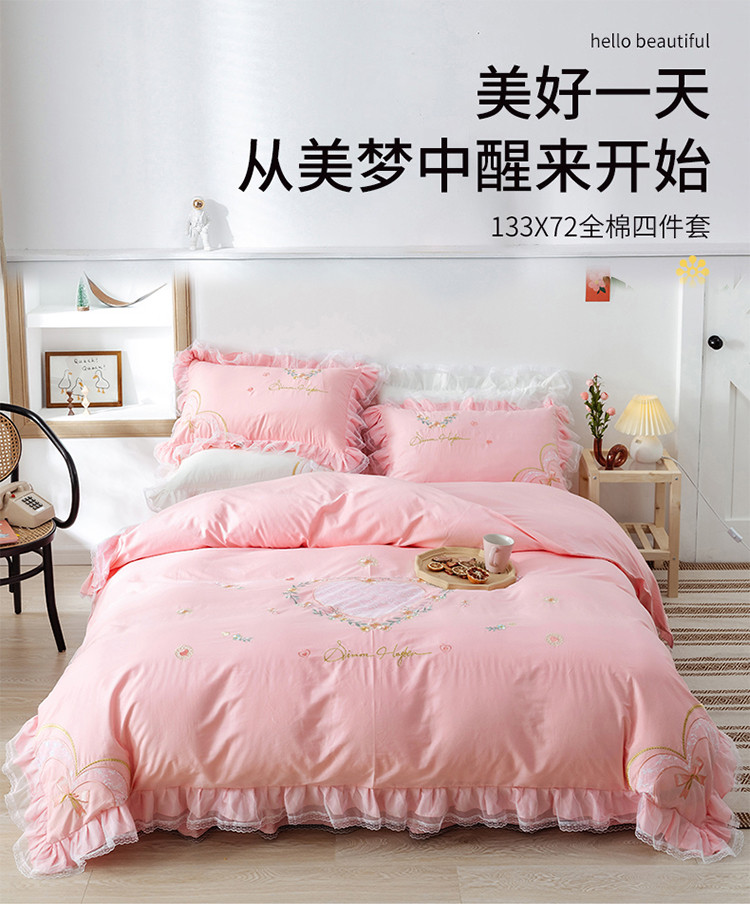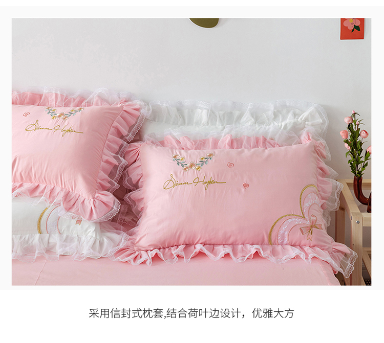 迪欧芙 2024春季纯棉13372公主风四件套爱的结语系列 爱的结语-粉,爱的结语-粉