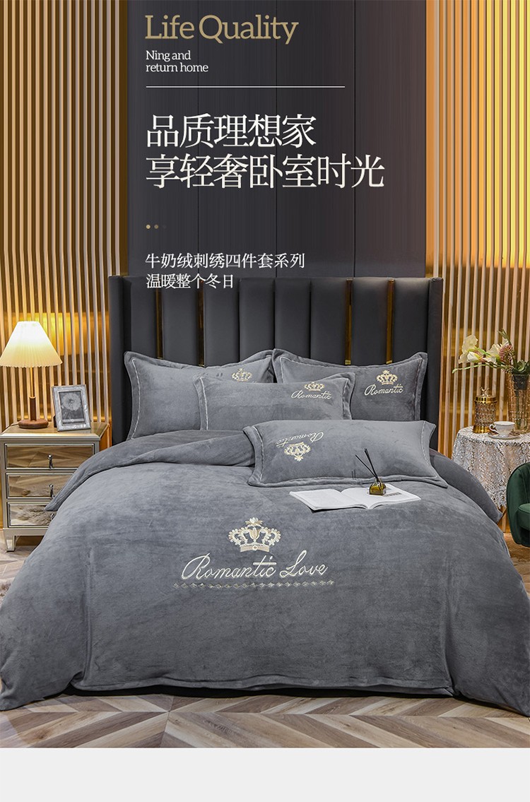 (总)逸林家纺《原希尔顿逸林》 2025新款牛奶绒绣花四件套-可可系列,可可-宾利蓝,可可-豆沙,可可-繁星蓝,可可-粉玉,可可-香芋紫,可可-雅士灰